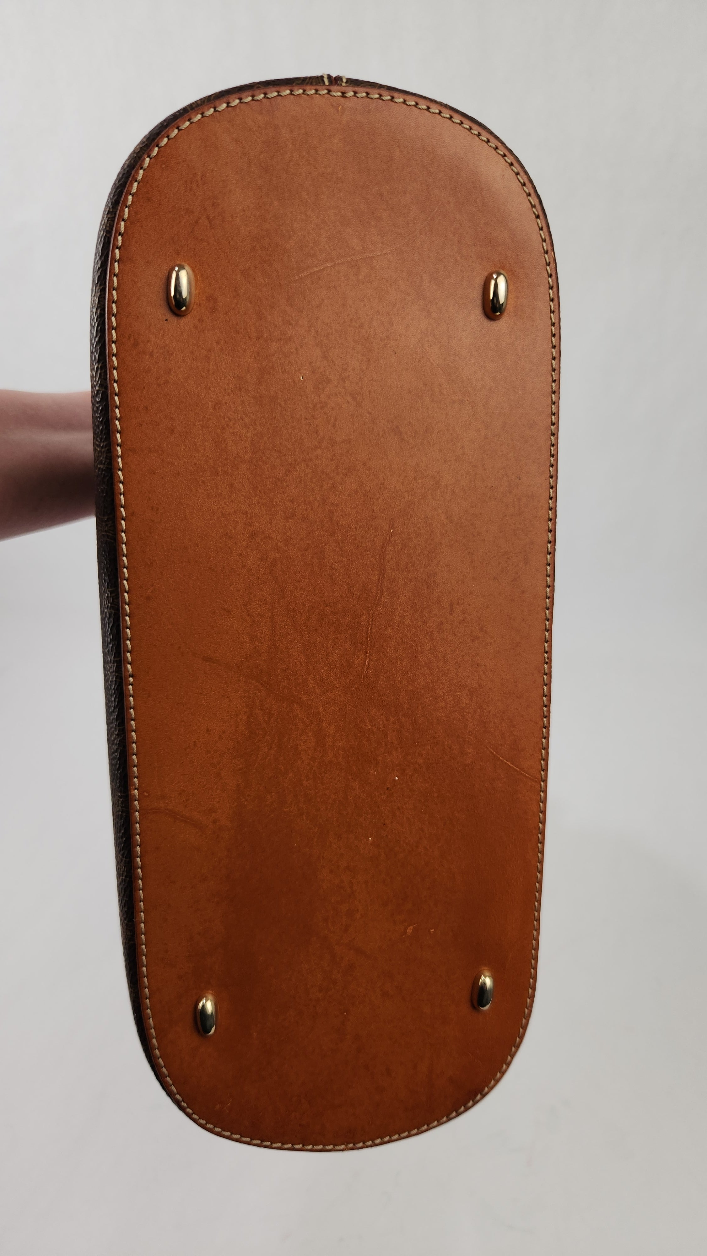 Condition details: In great condition; outside brown macadam canvas is in great condition with some signs of wear throughout. Leather double handles are in great condition with some signs of wear. Corners and edges are in great condition with some signs of wear. Gold toned hardware is in great condition with some signs of wear, zippers work well. Inside is clean with some signs of wear, no foul smell.