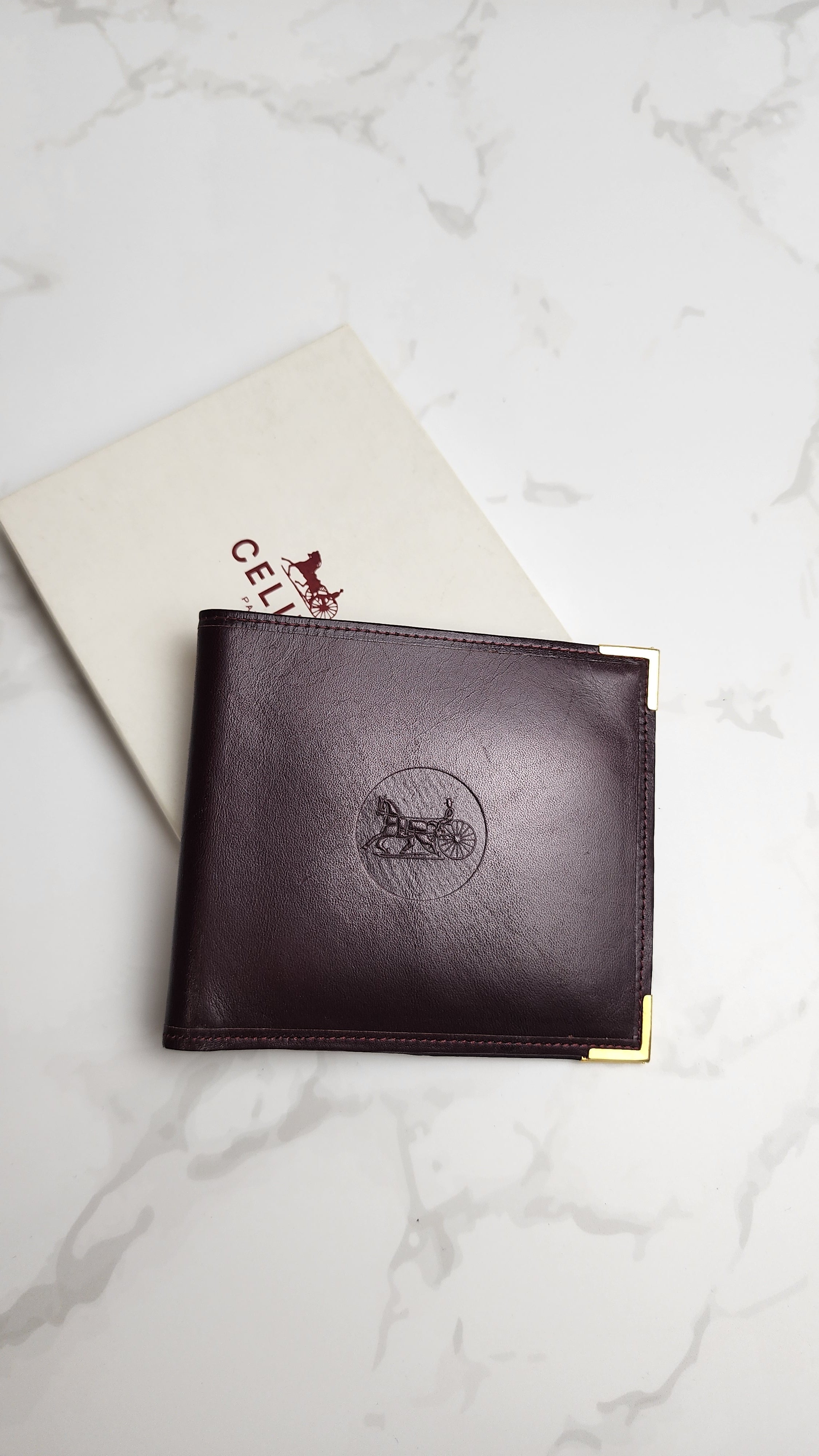 Celine Burgandy Leather Bifold Wallet w/ Gold toned corners