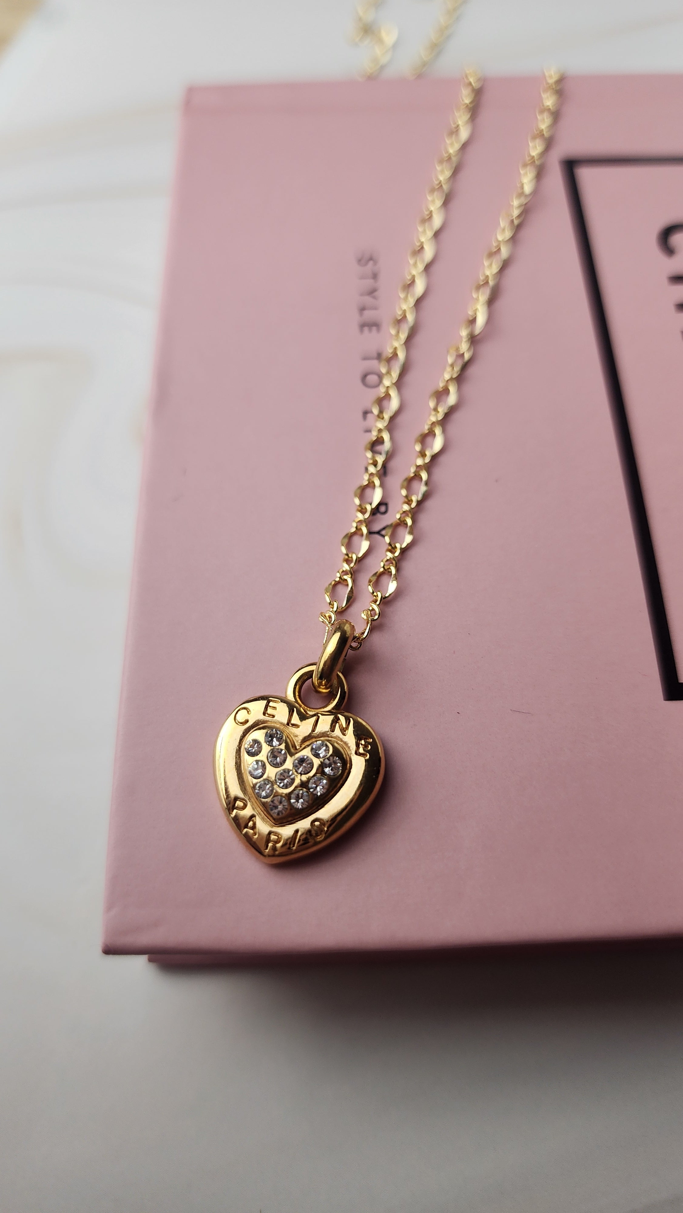 Celine Gold Tone Rhinestone Heart Pendant Necklace