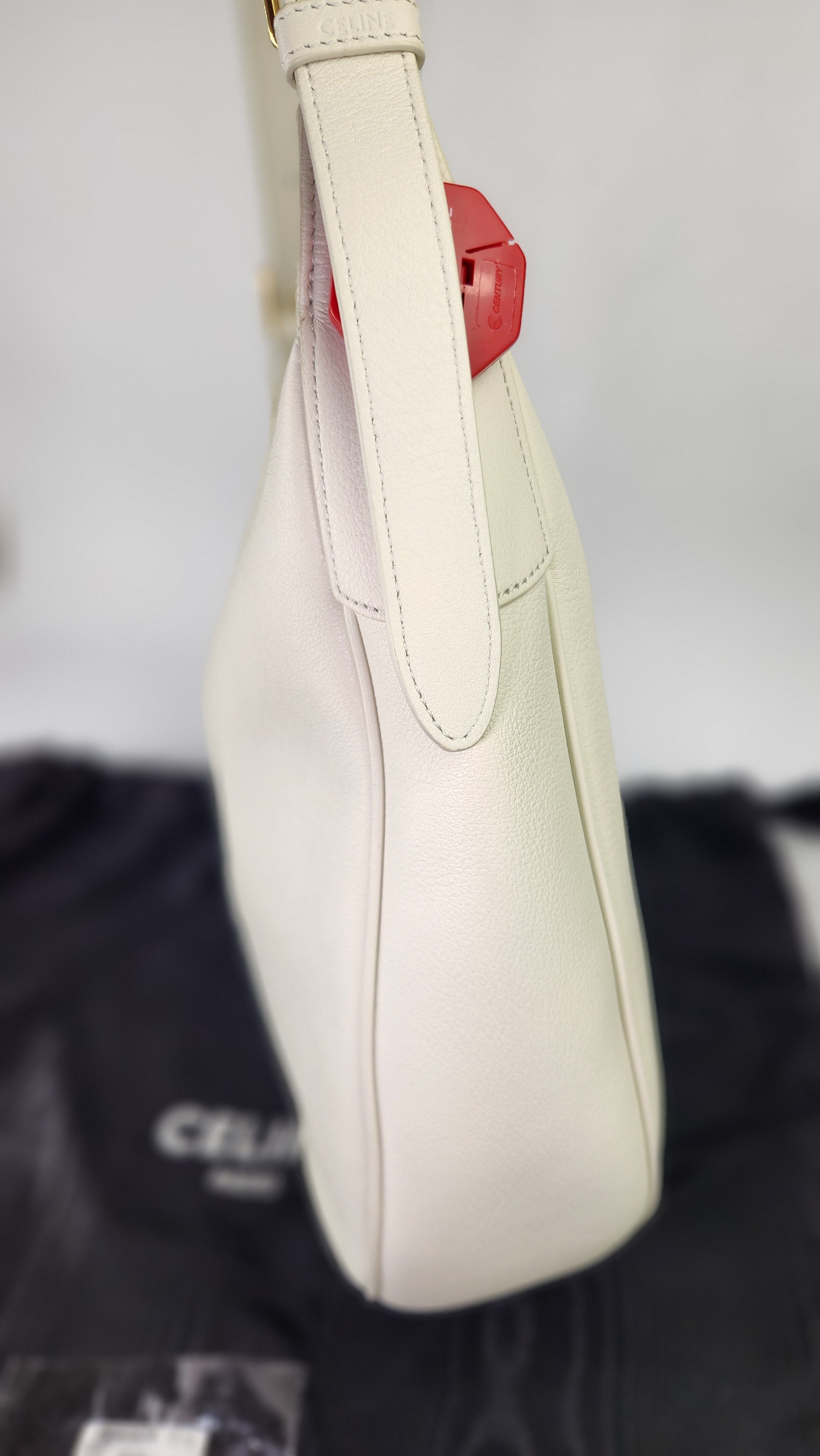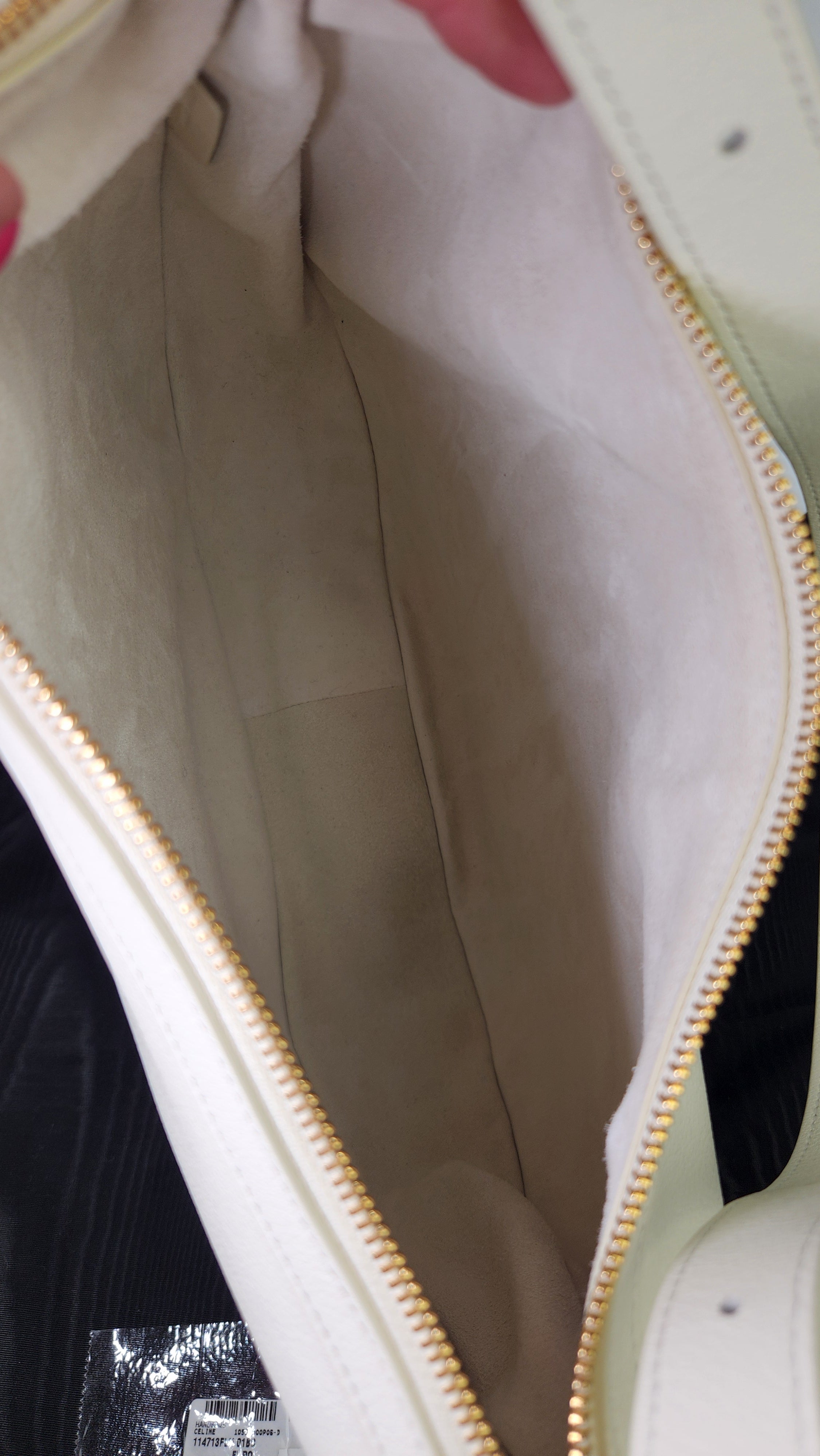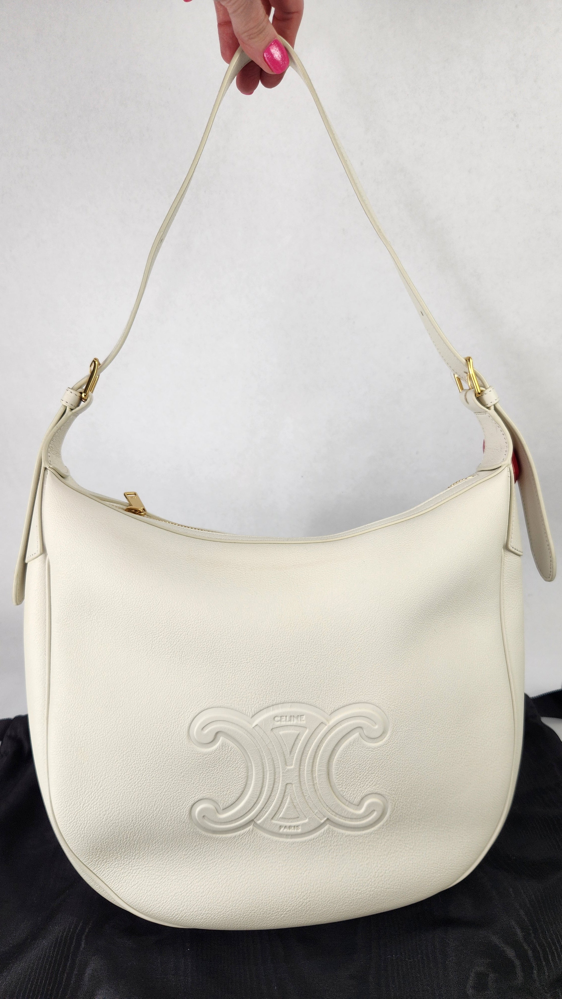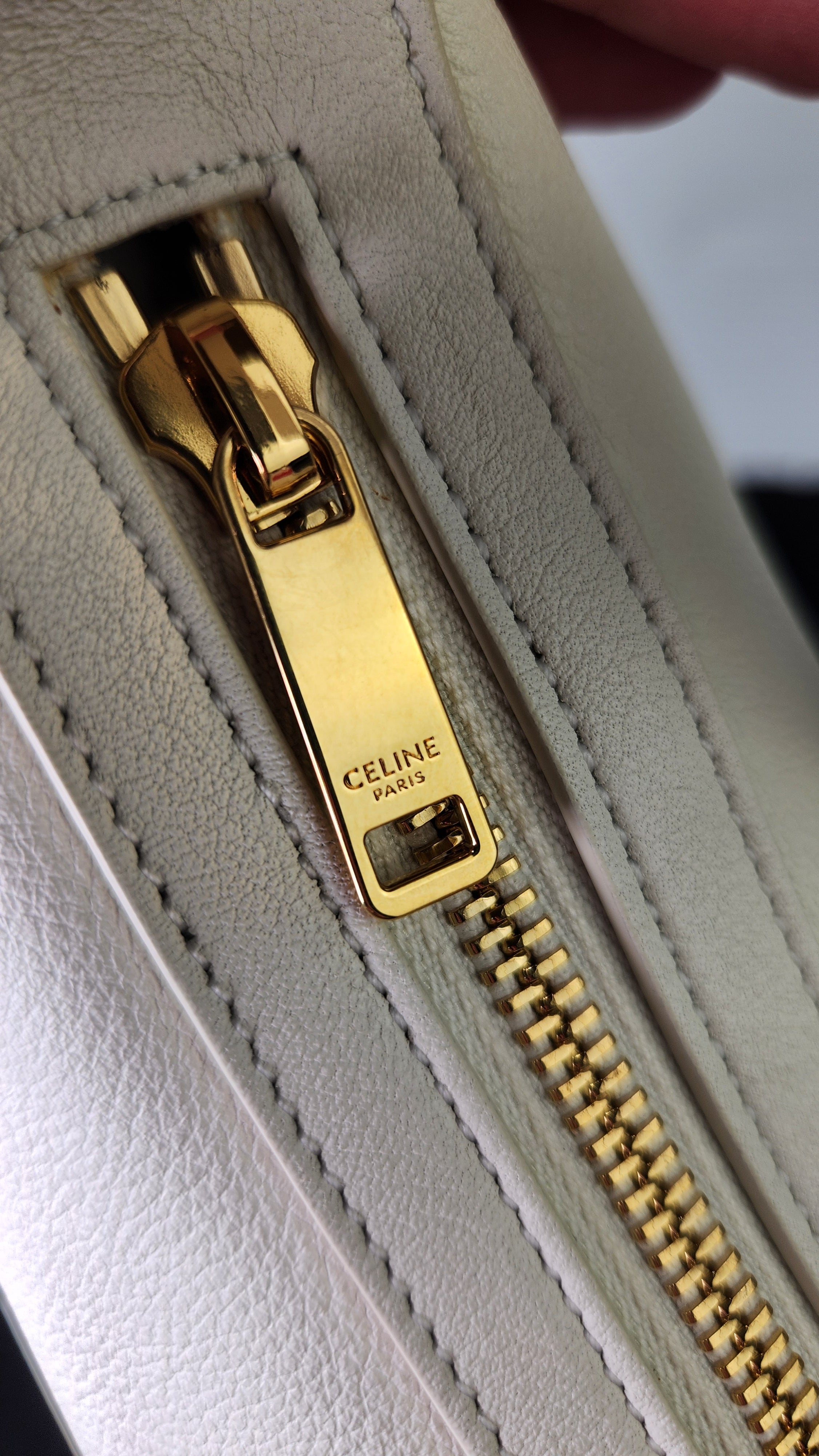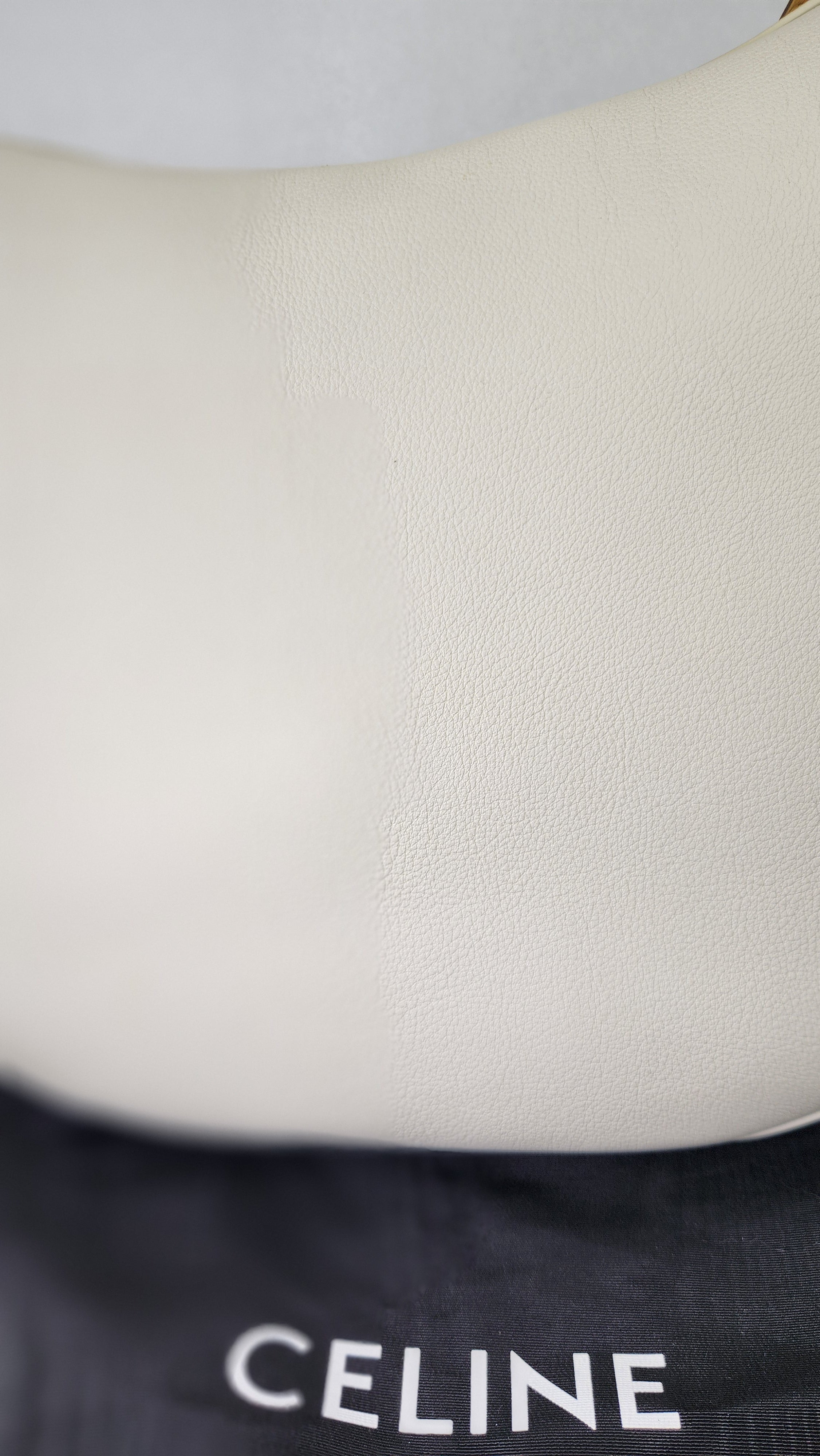 Condition details: In brand new condition; outside leather is in excellent, new condition. Corners and edges are in excellent, new condition. Adjustable leather strap is in excellent, new condition. Gold toned hardware is in excellent condition, zipper works well. Inside is clean, no foul smell. Comes with a Celine dustbag.