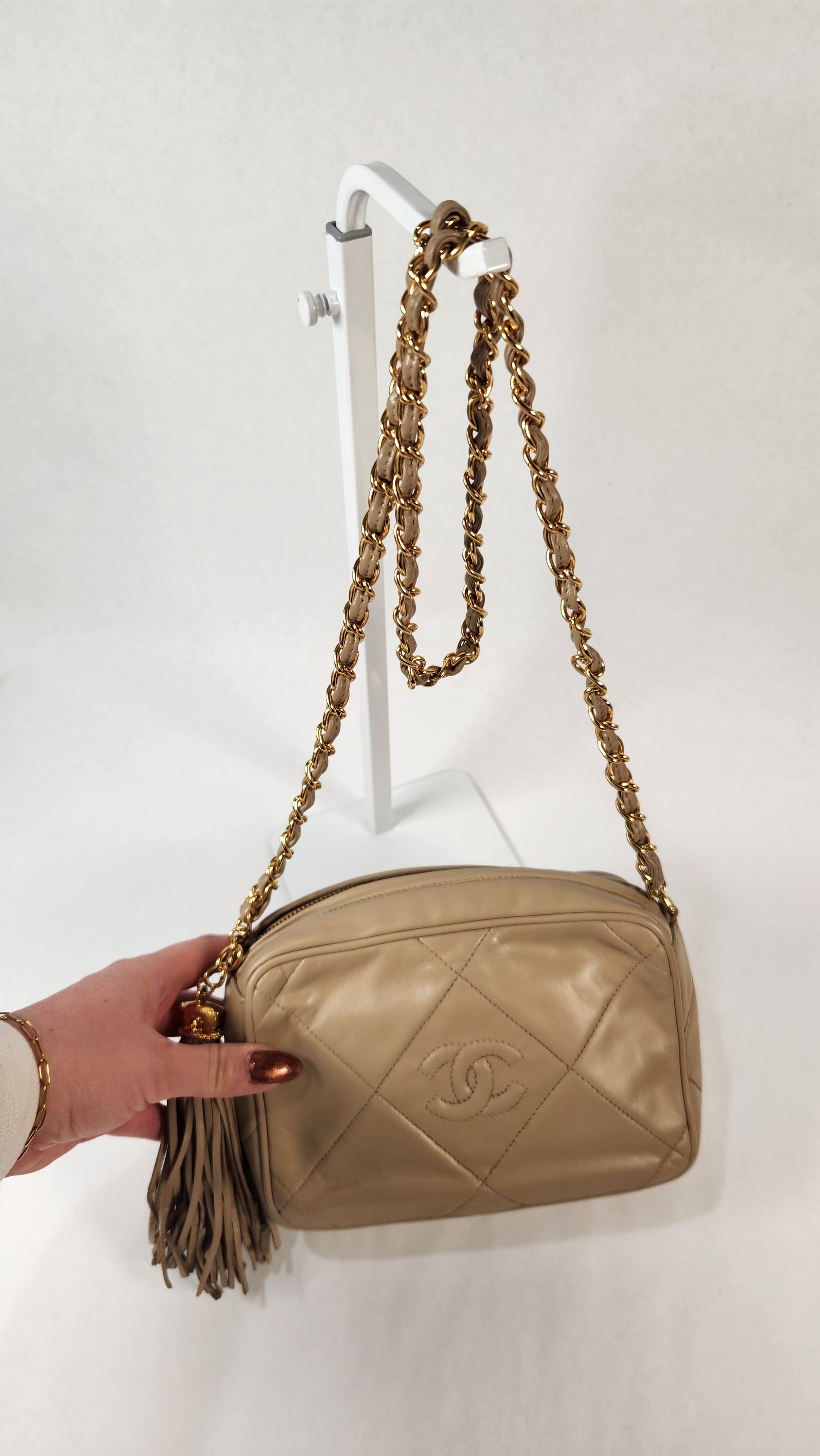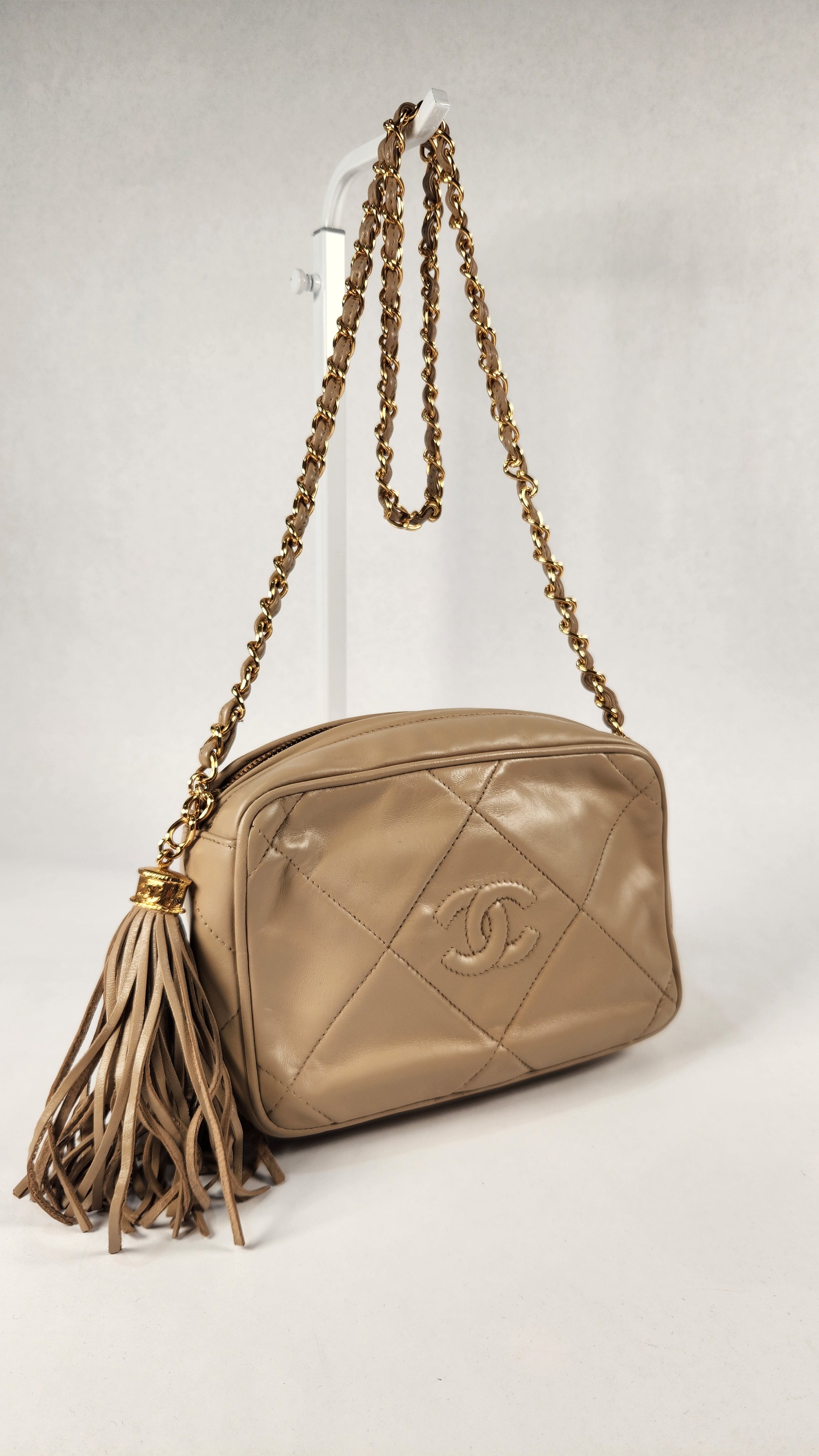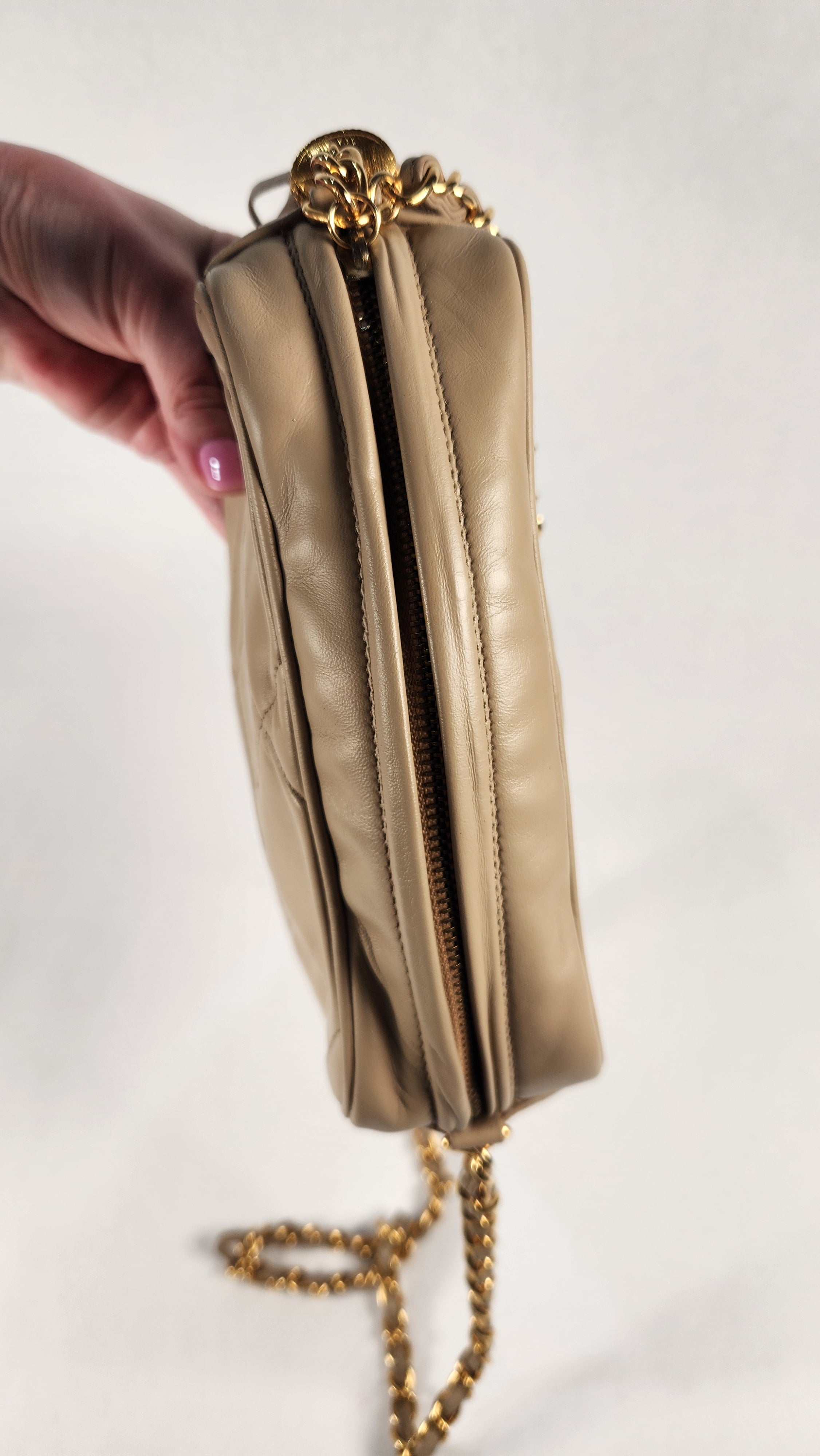 Chanel Beige Lambskin Mini Camera Bag