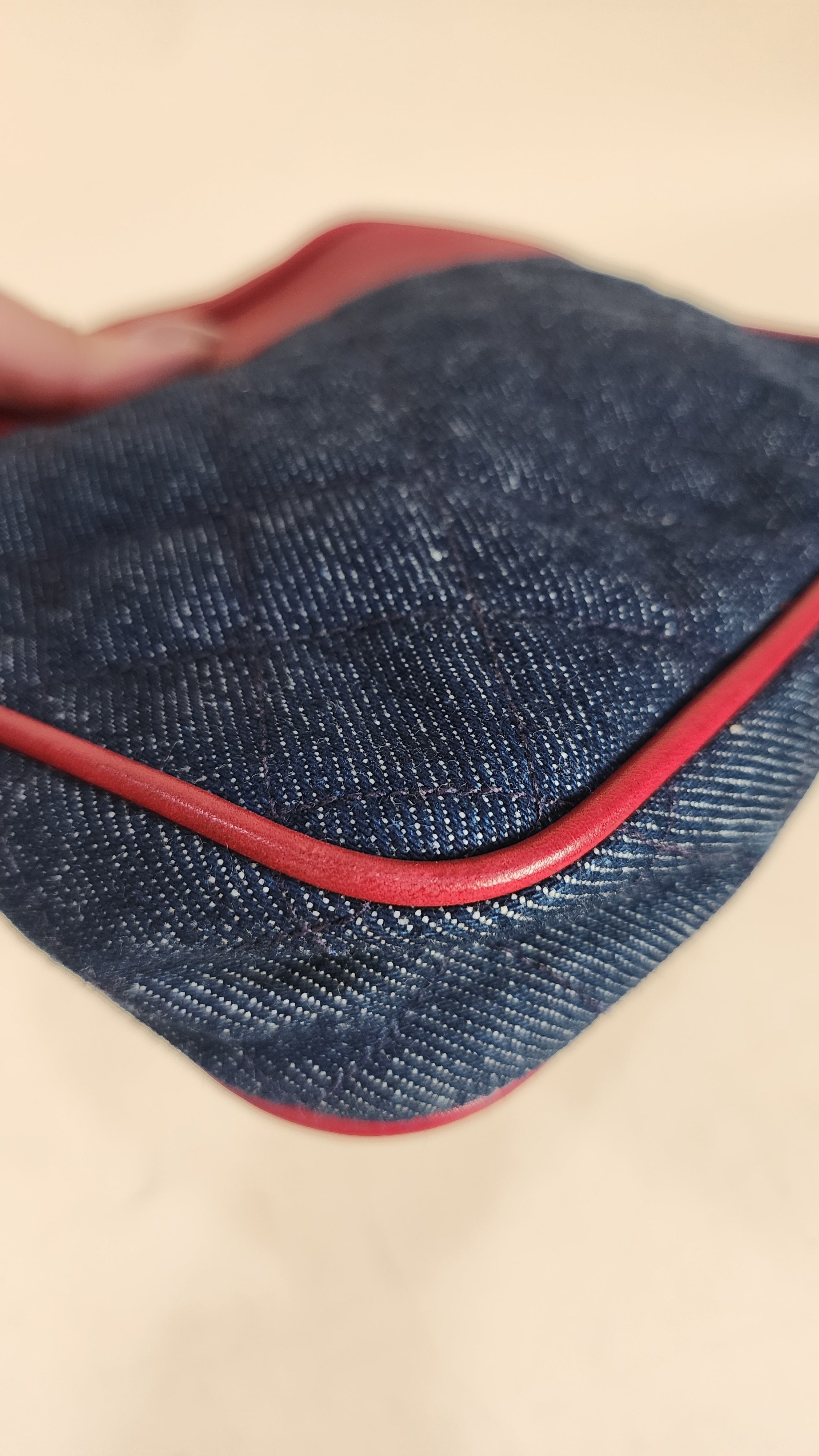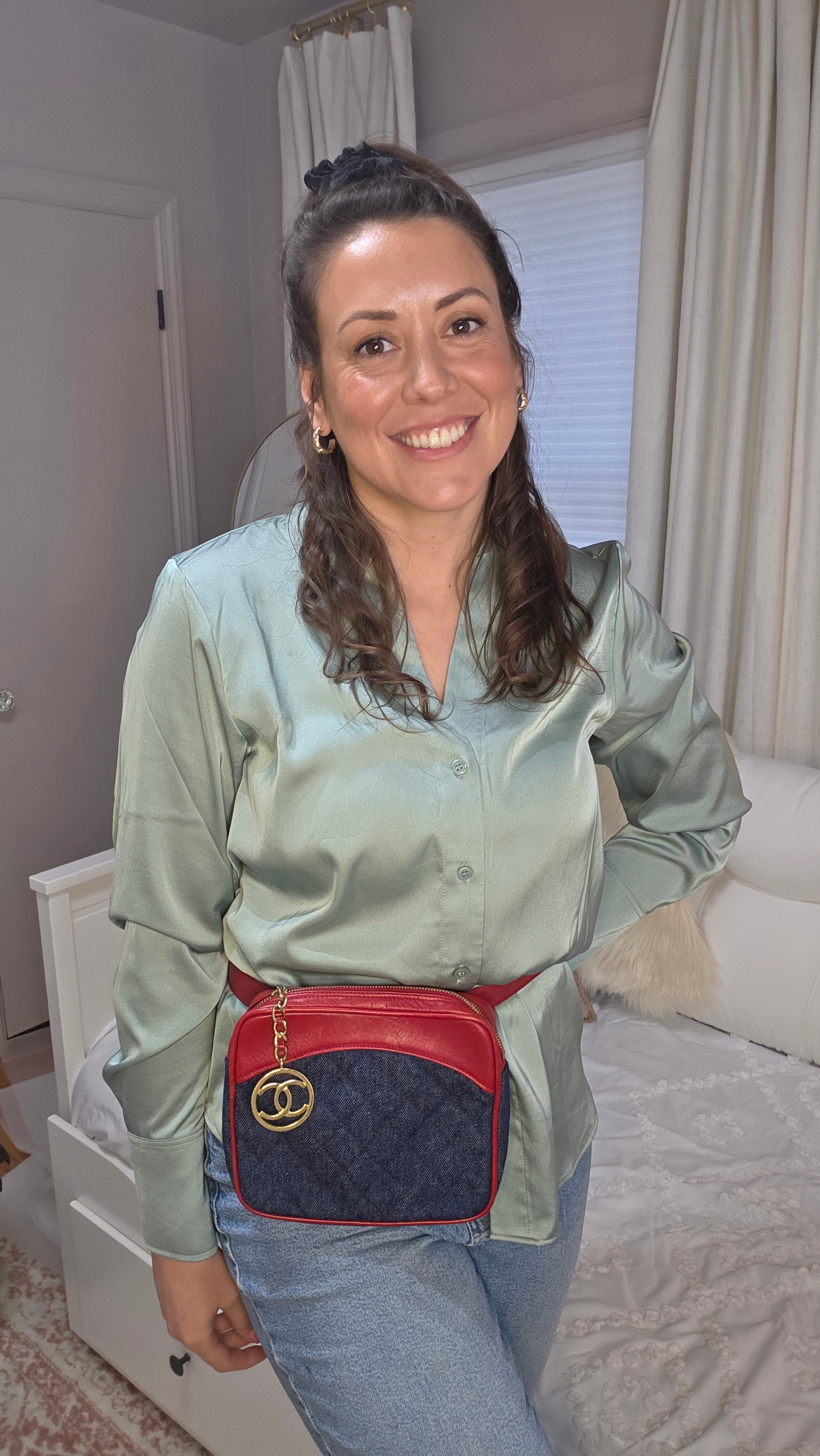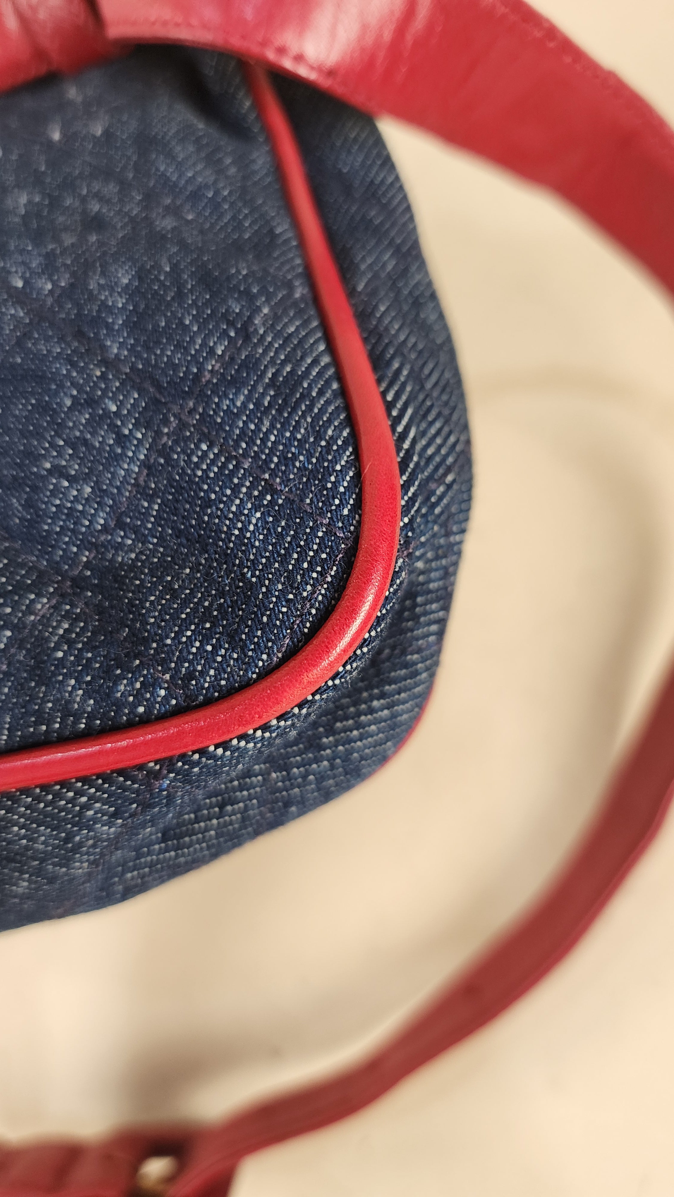 Chanel Denim & Red Leather Belt Bag. RARE FIND!