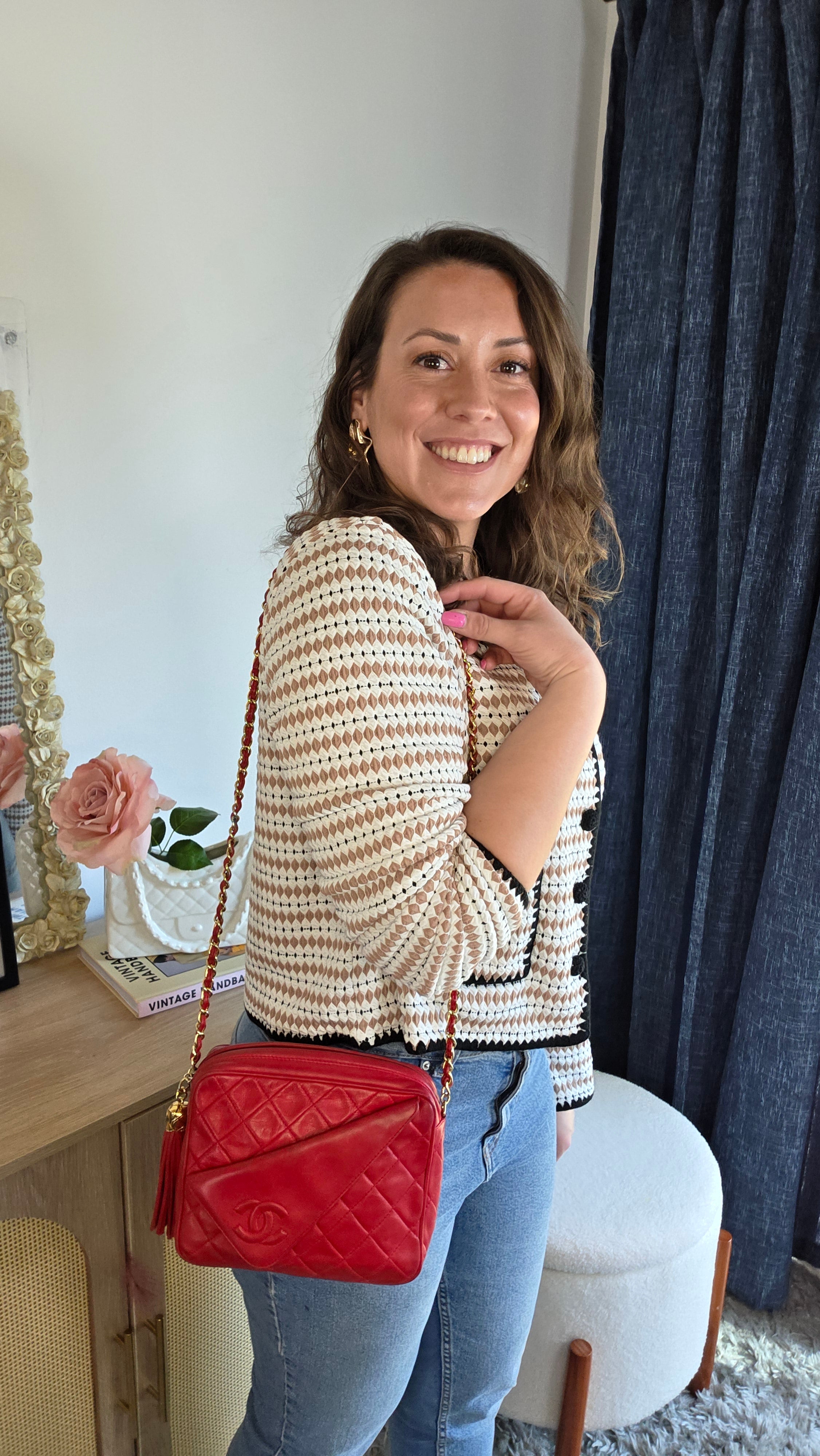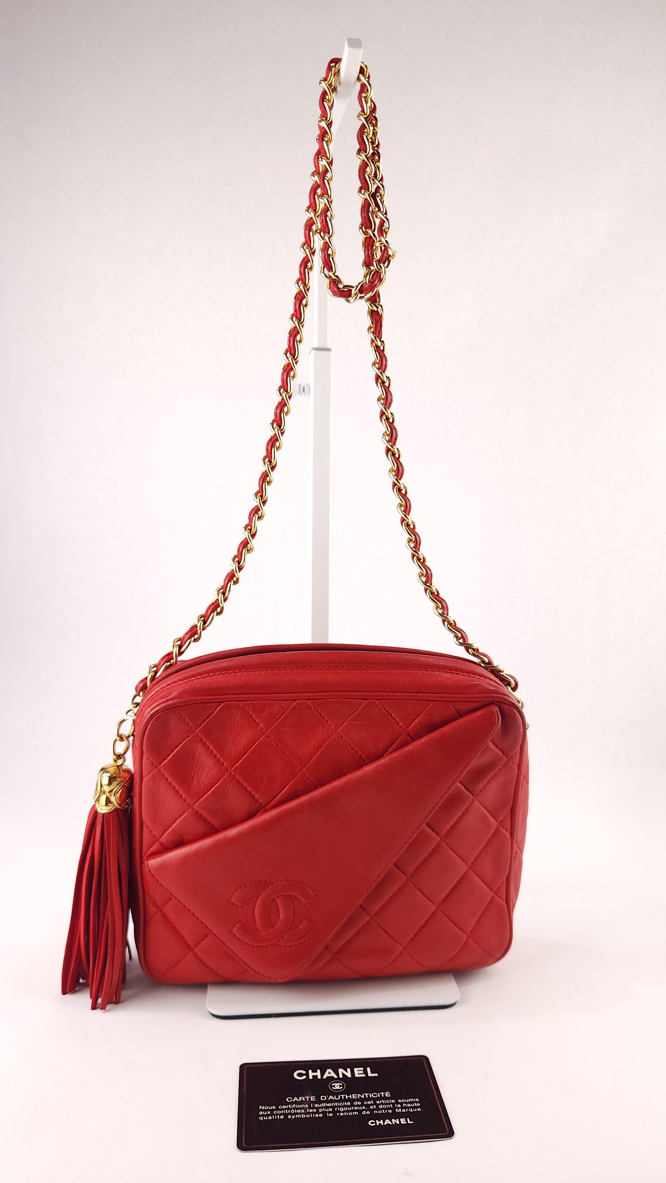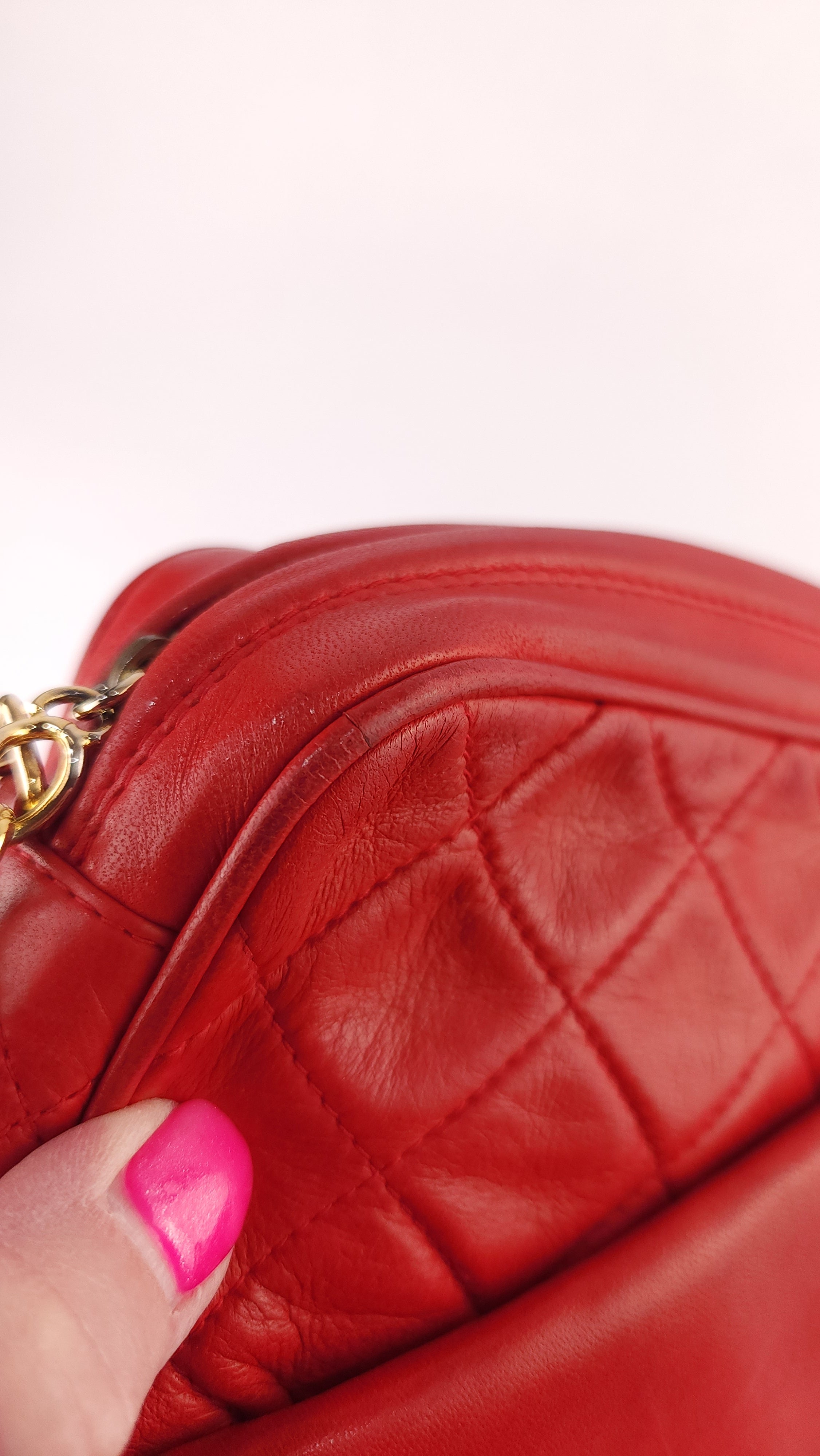 Chanel Matelasse Chain Red Lamb Skin Shoulder Bag