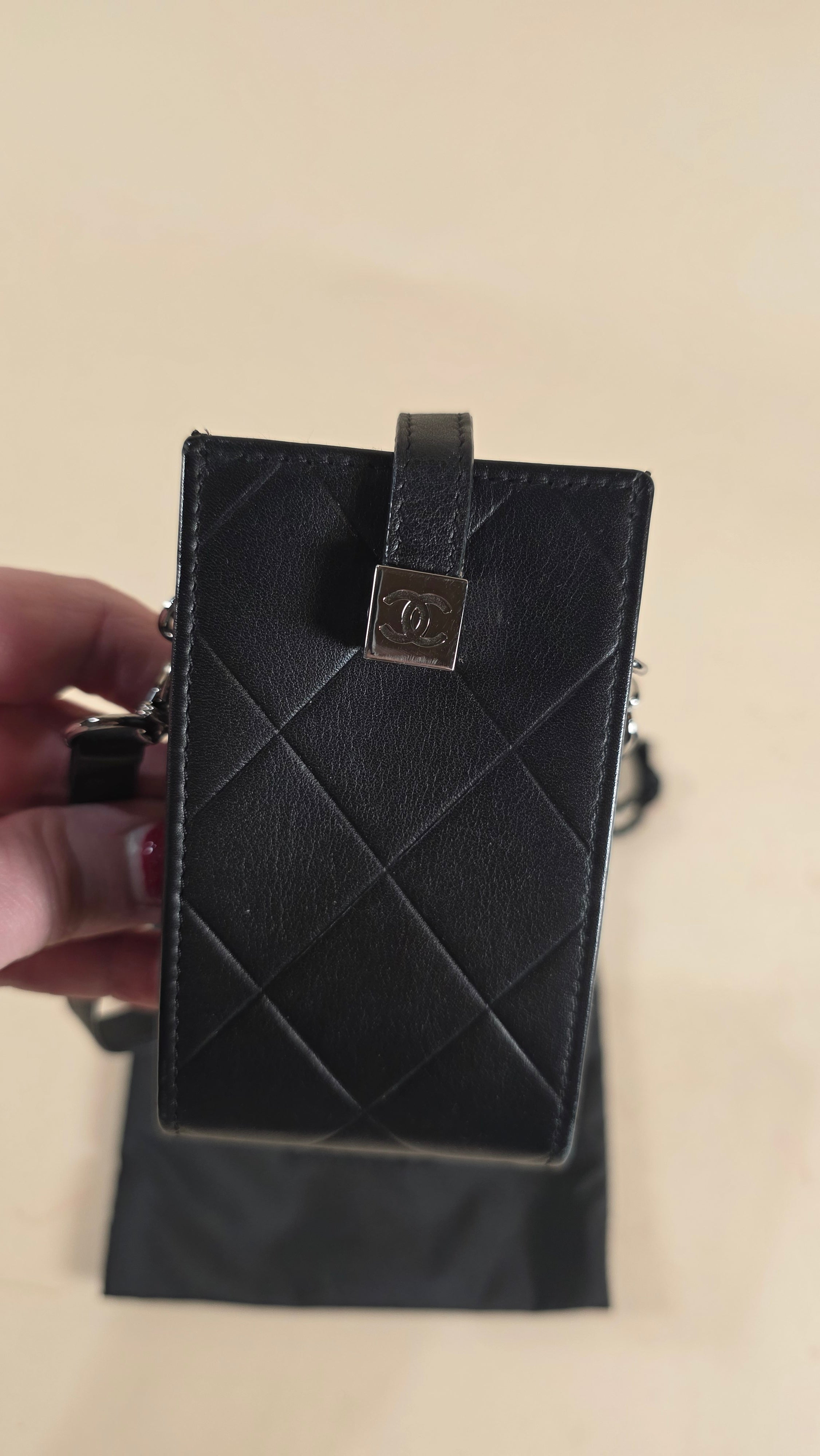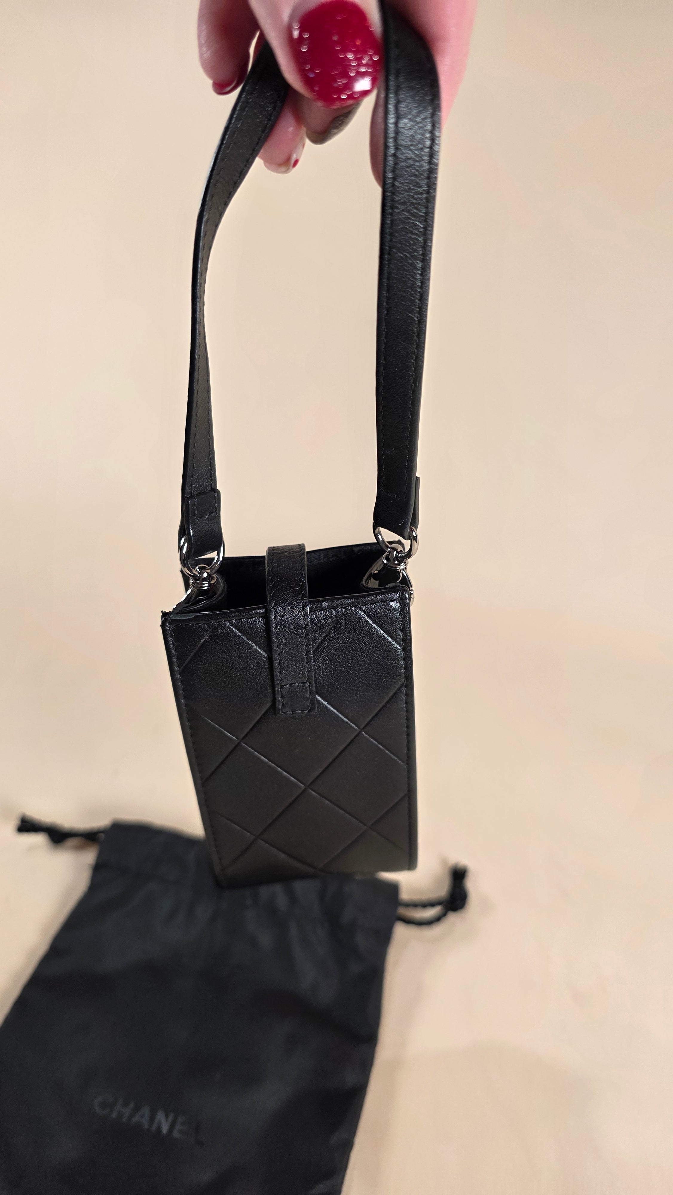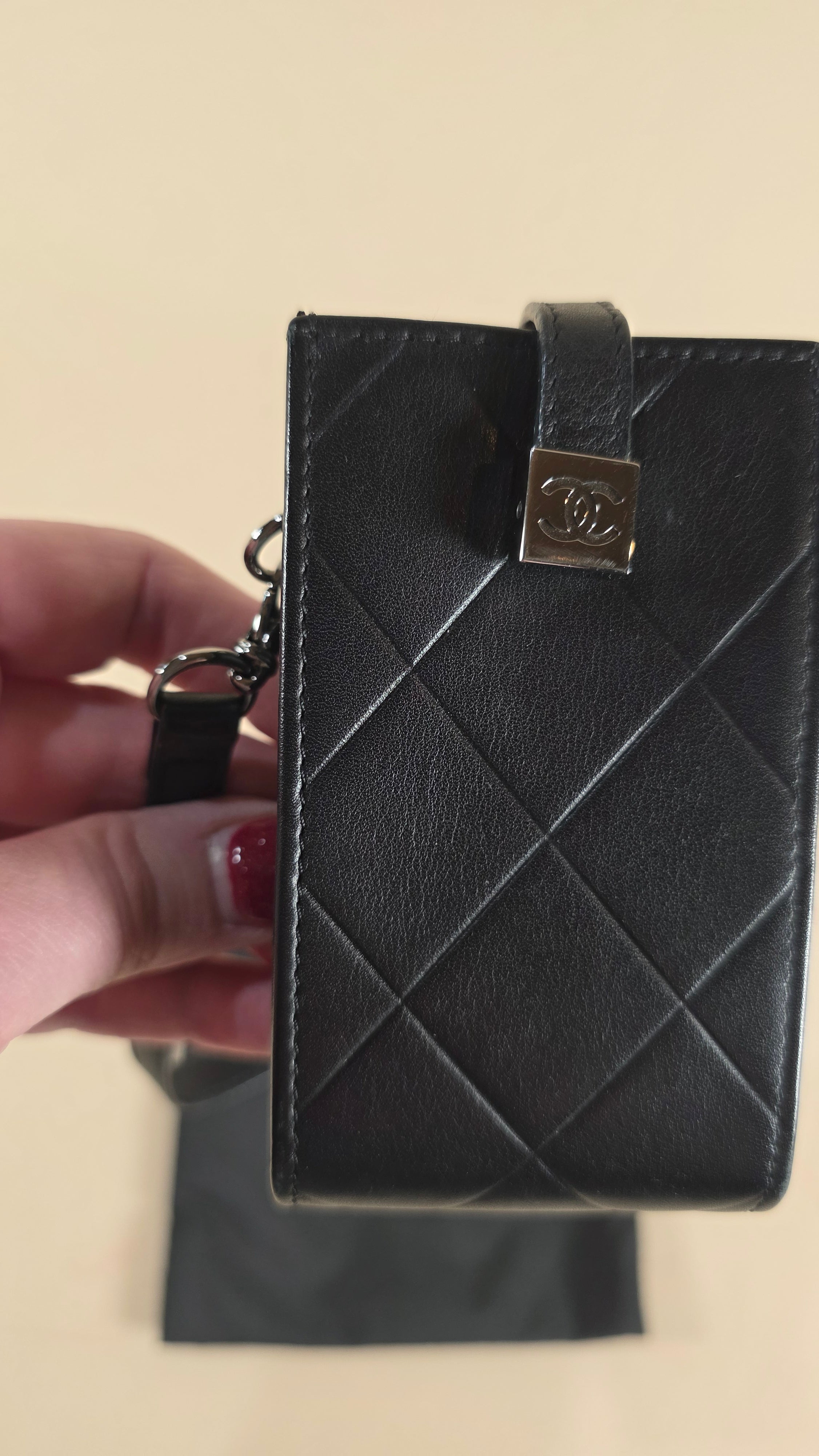 Chanel Quilted Black Leather vintage Phone Case w/ dustbag from 2006