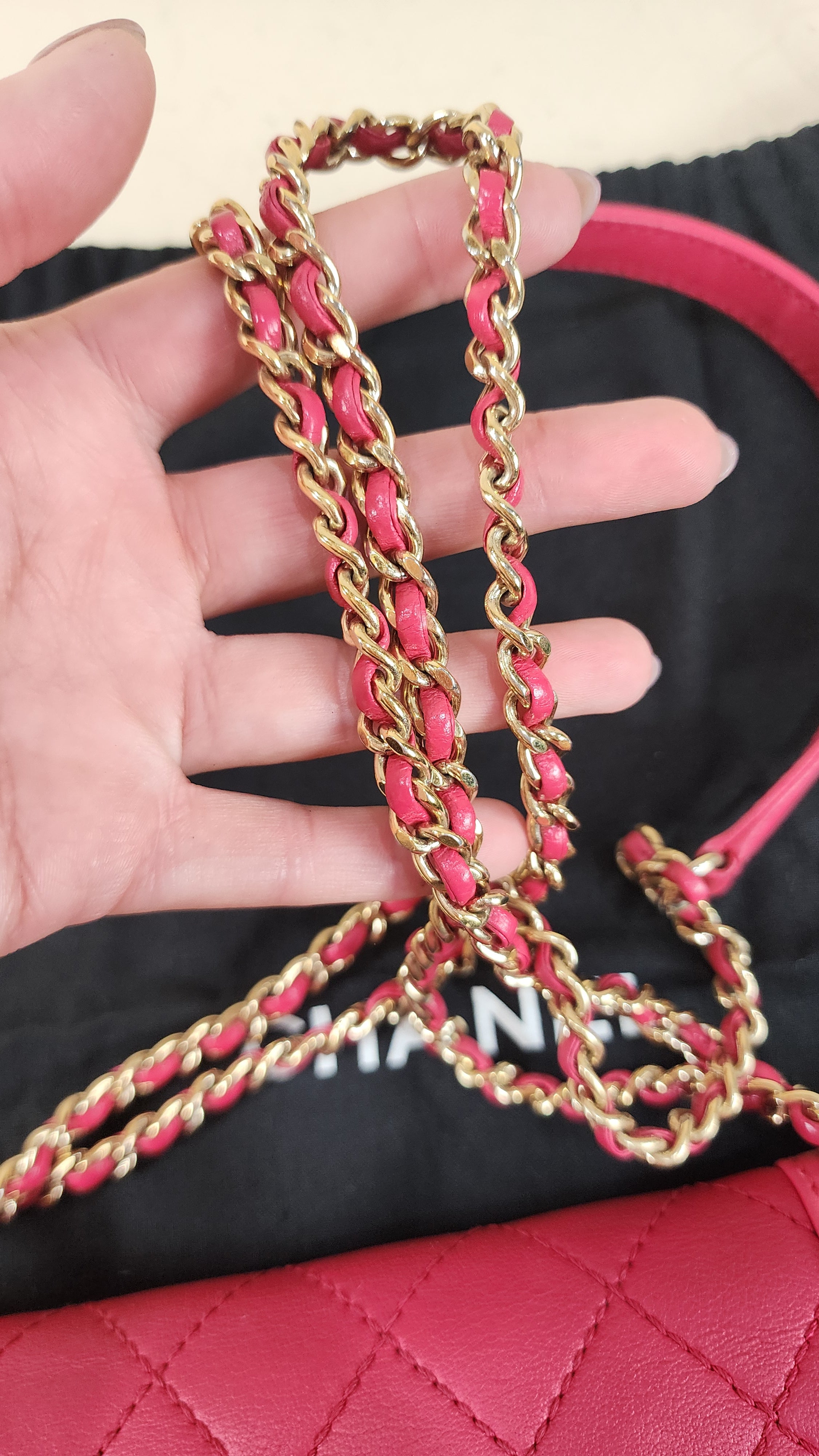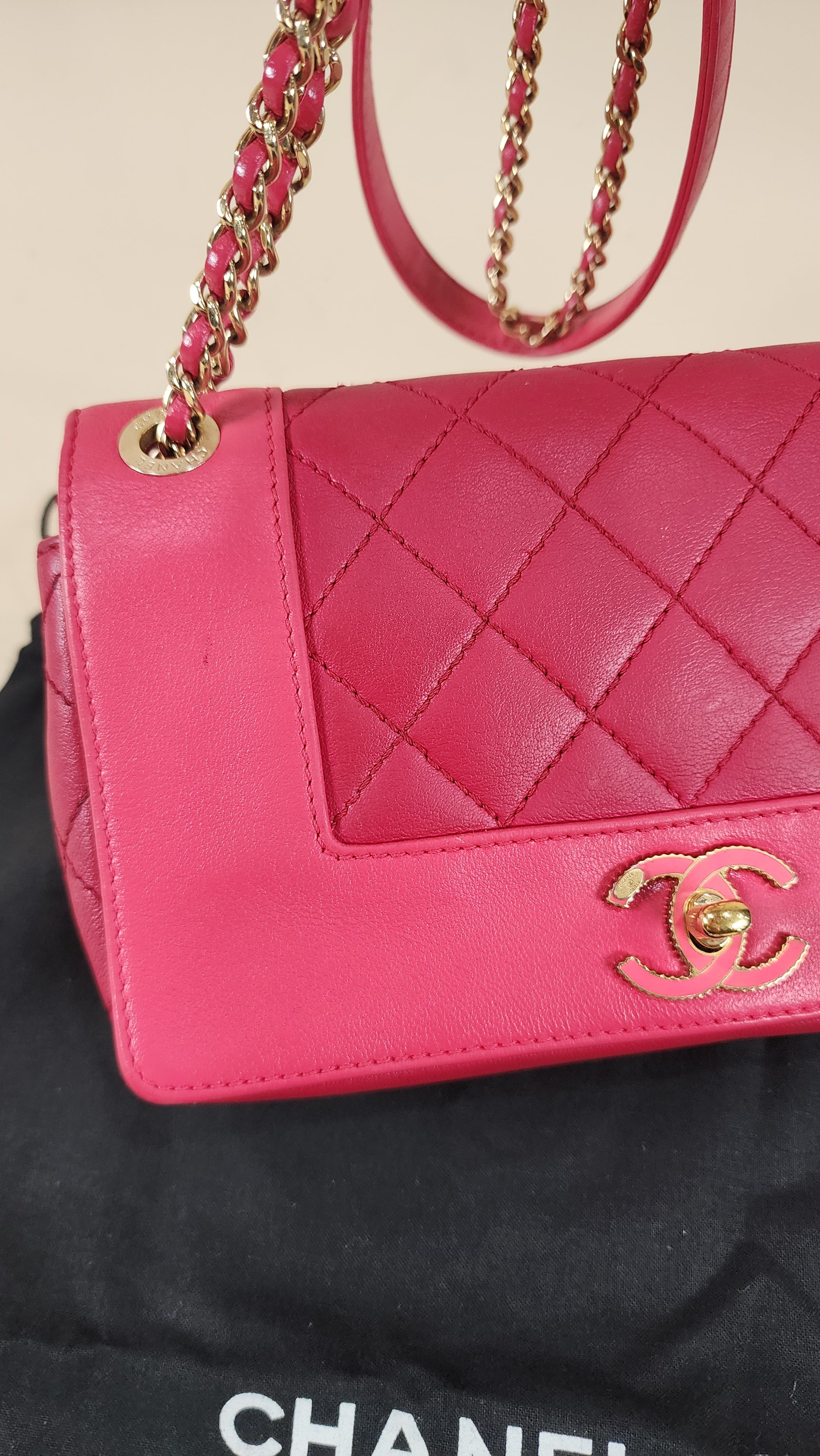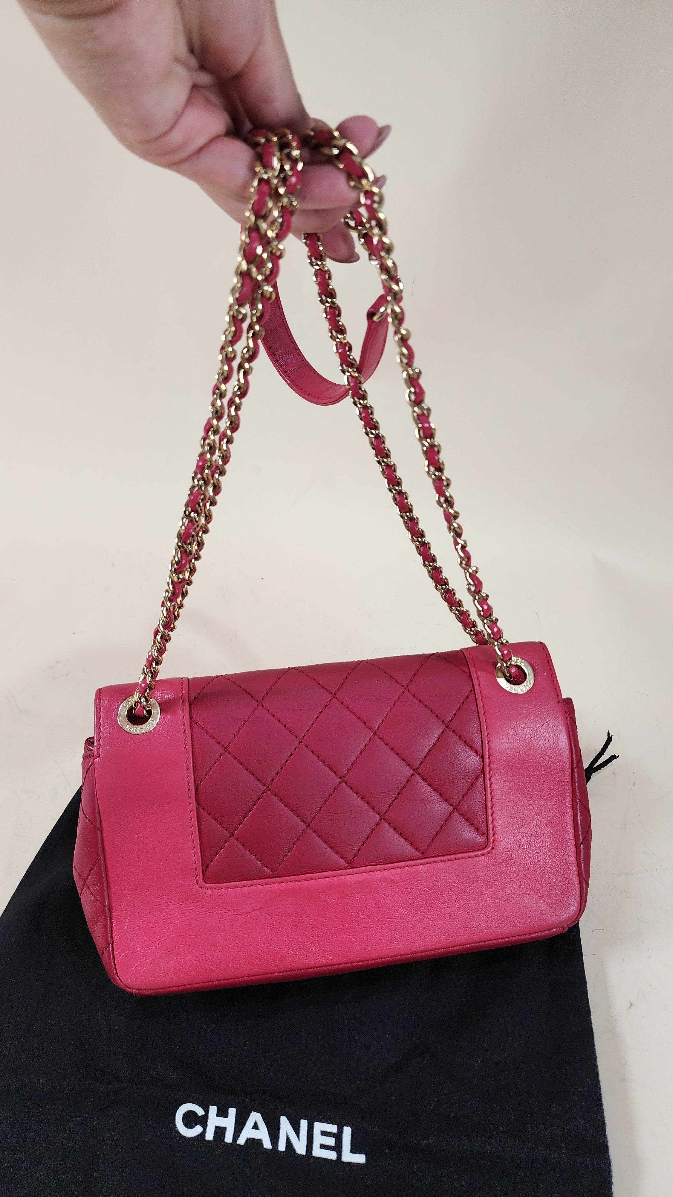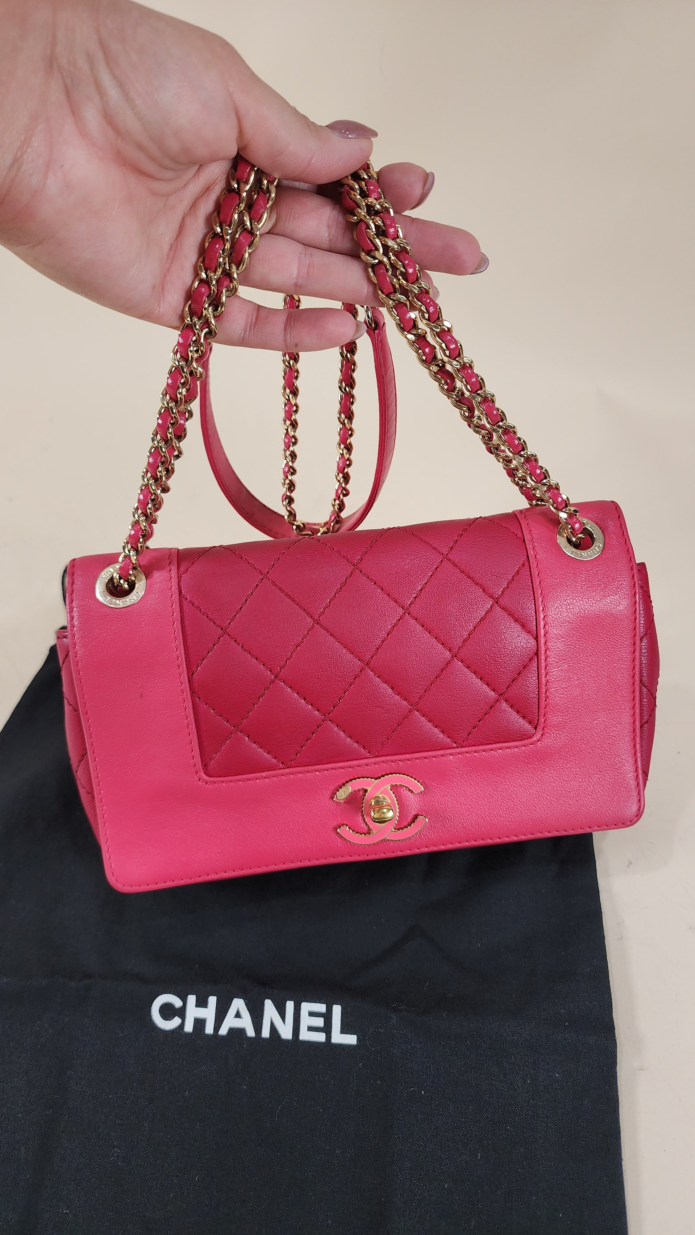 Chanel Pink Leather Chain Shoulder Bag