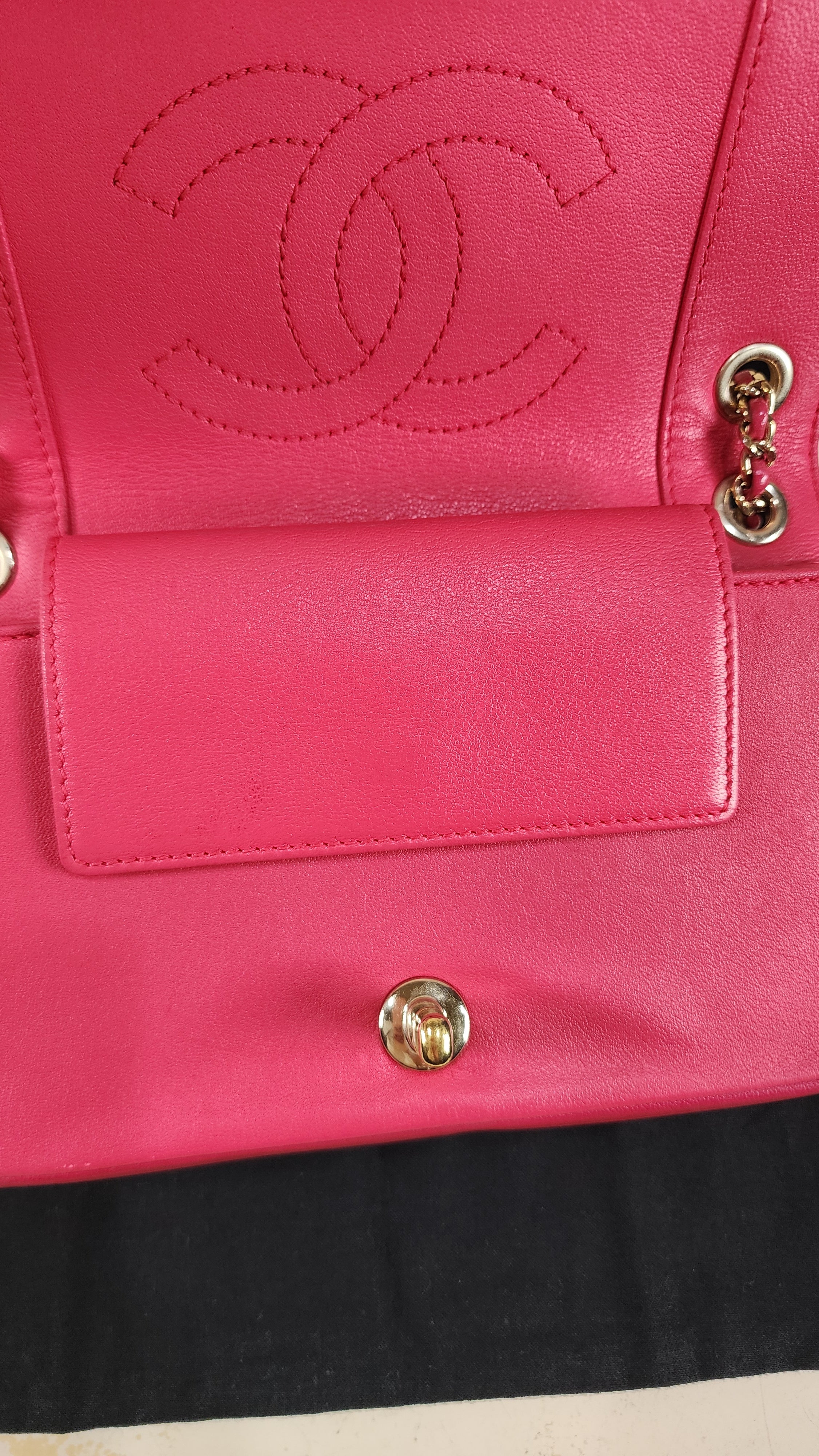 Condition details: This item is in great condition; Outside leather is in great condition, with some signs of wear and light rubbing throughout with some minor transfer. Corners and edges are in great condition with some signs of wear. Hardware is in great condition with some signs of wear and slight silvering in places, internal zipper, snap and twist lock closure all work well. Inside is clean with some signs of wear, no foul smell. The serial number is in tact and the plastic seal sticker is present. Comes with a Chanel dustbag.