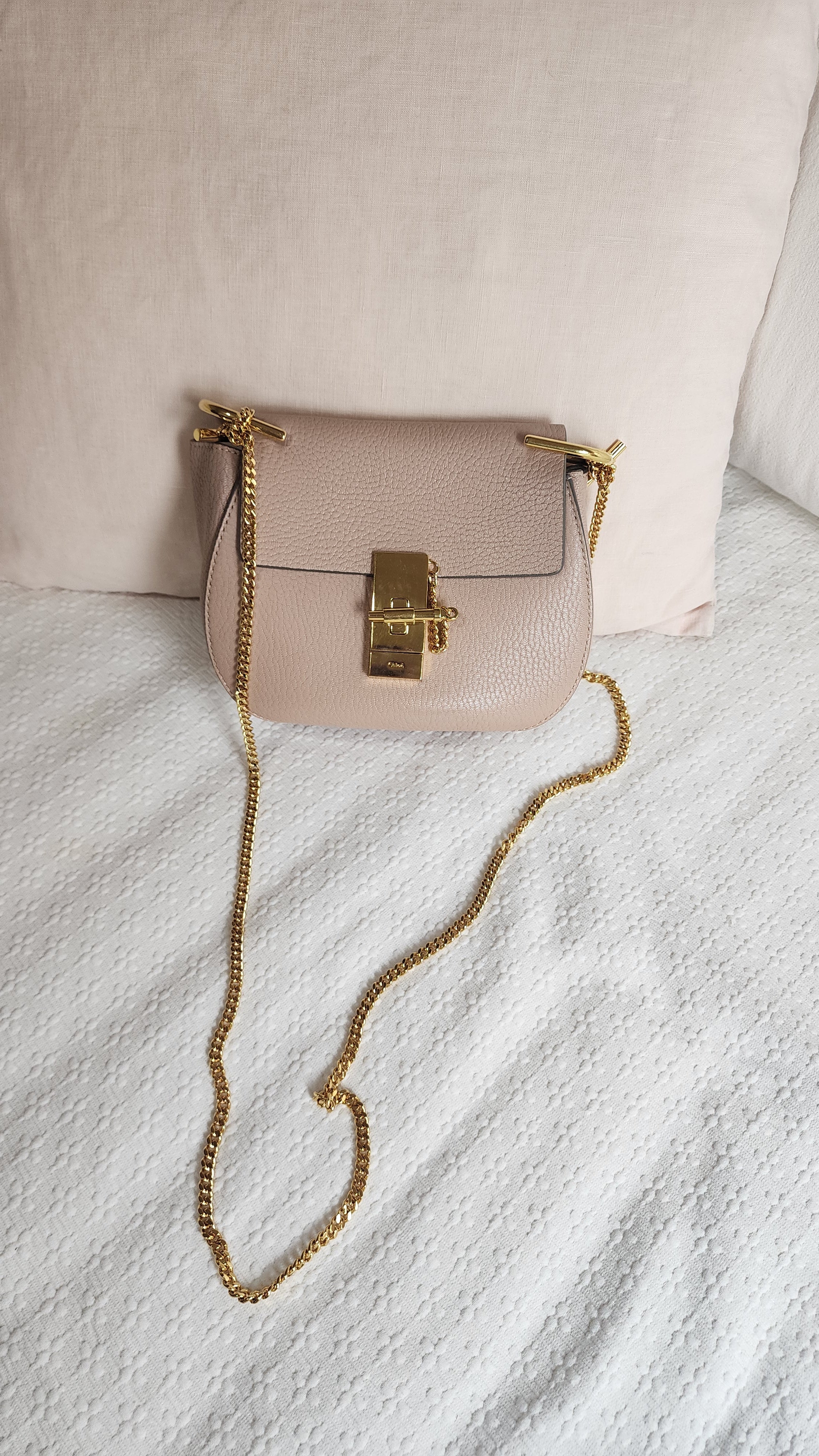 Chloe Beige Leather Drew Shoulder Bag w/ Gold tone chain
