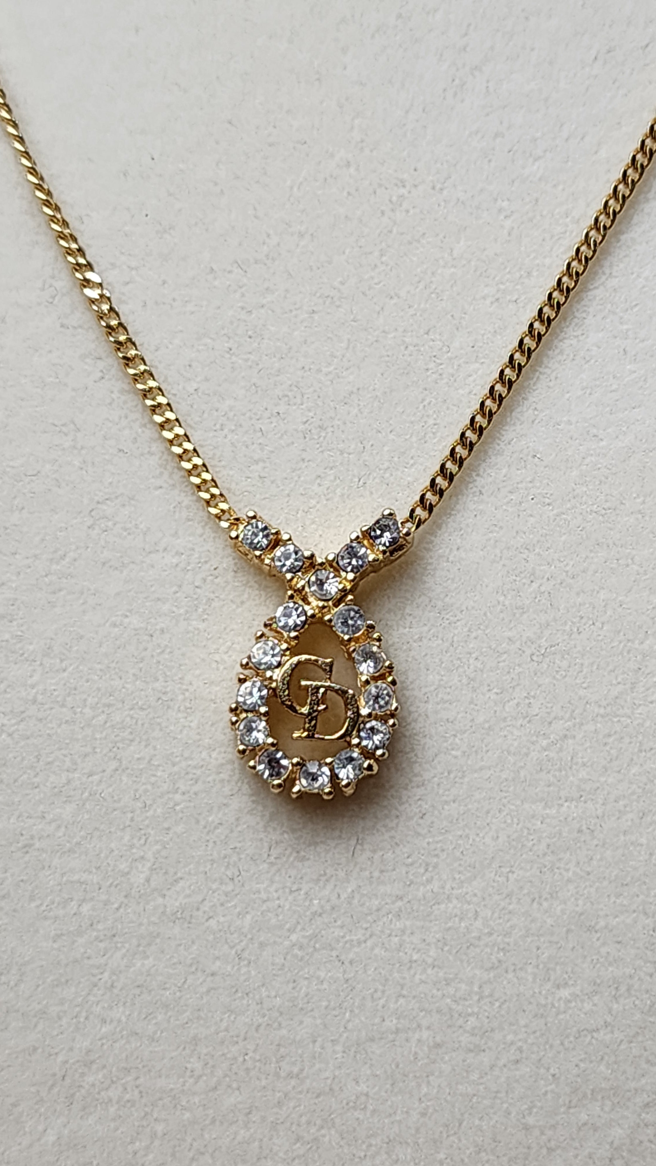 Dior Gold Colored Necklace with rhinestone leaf-like shape.