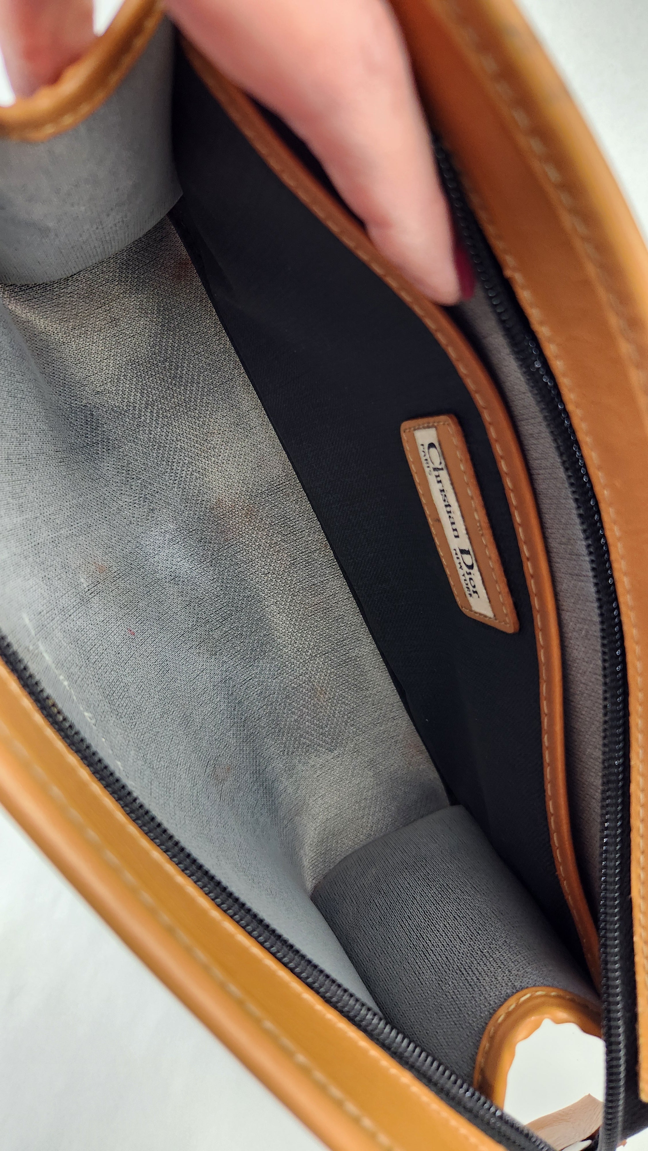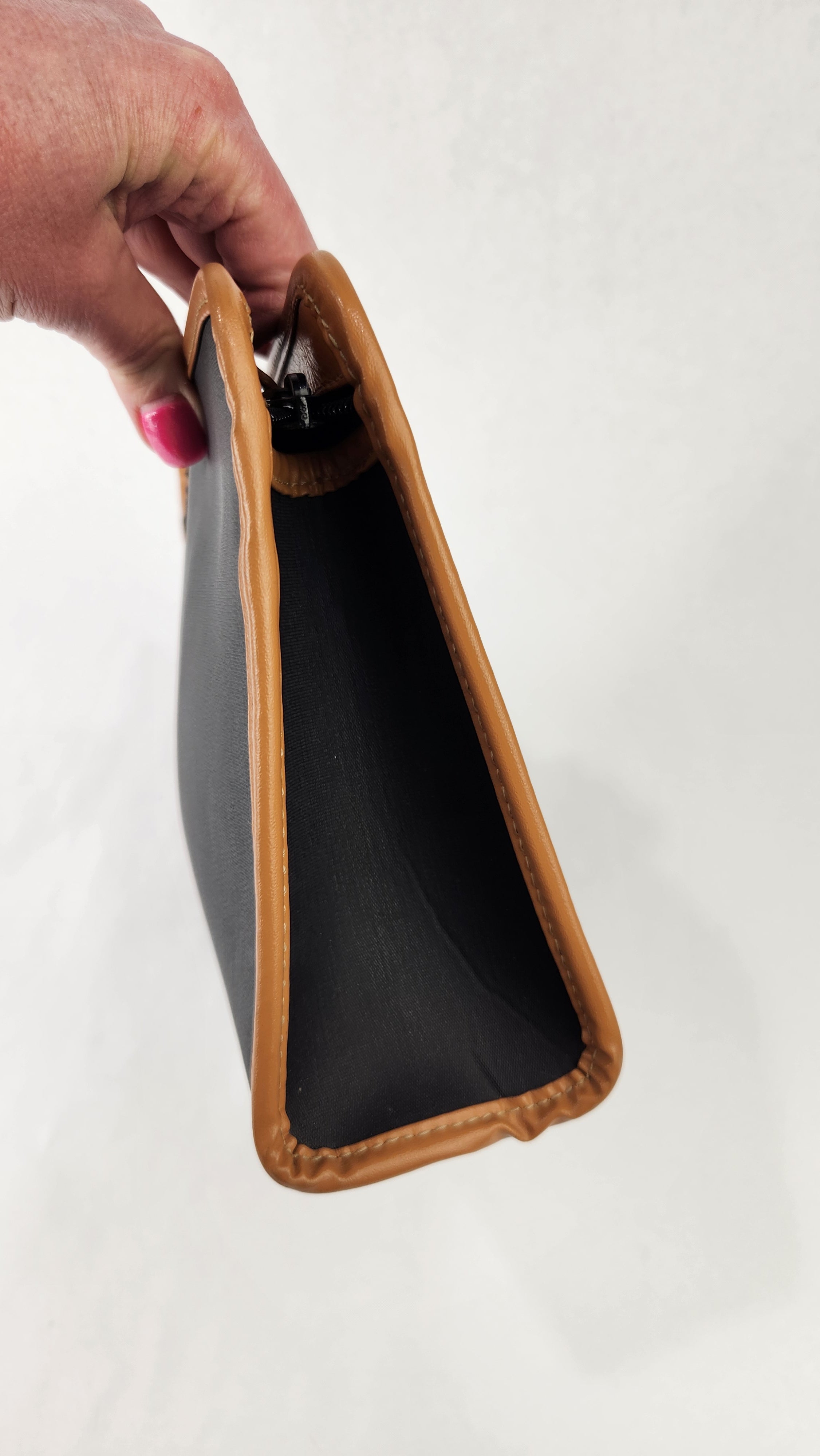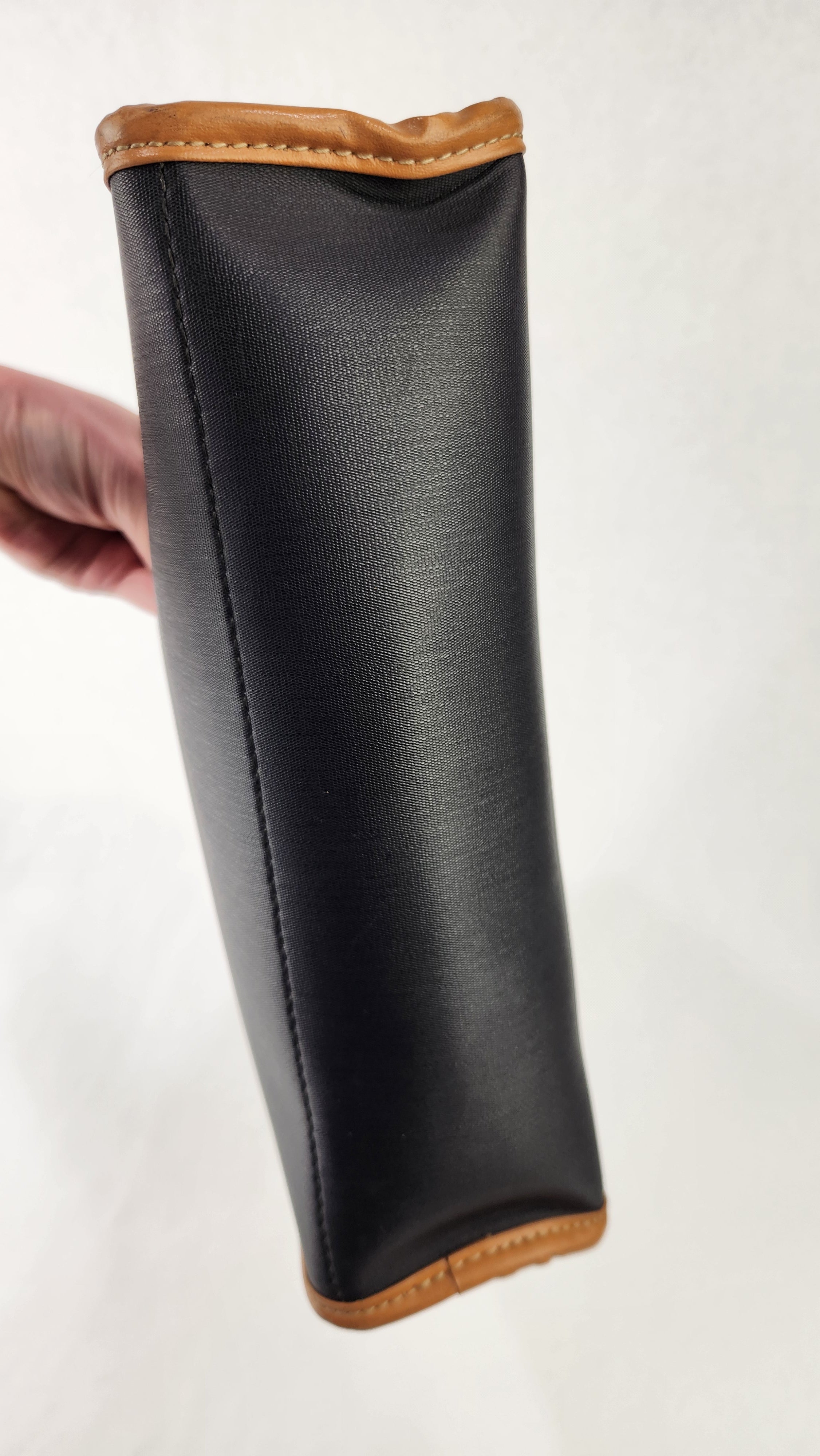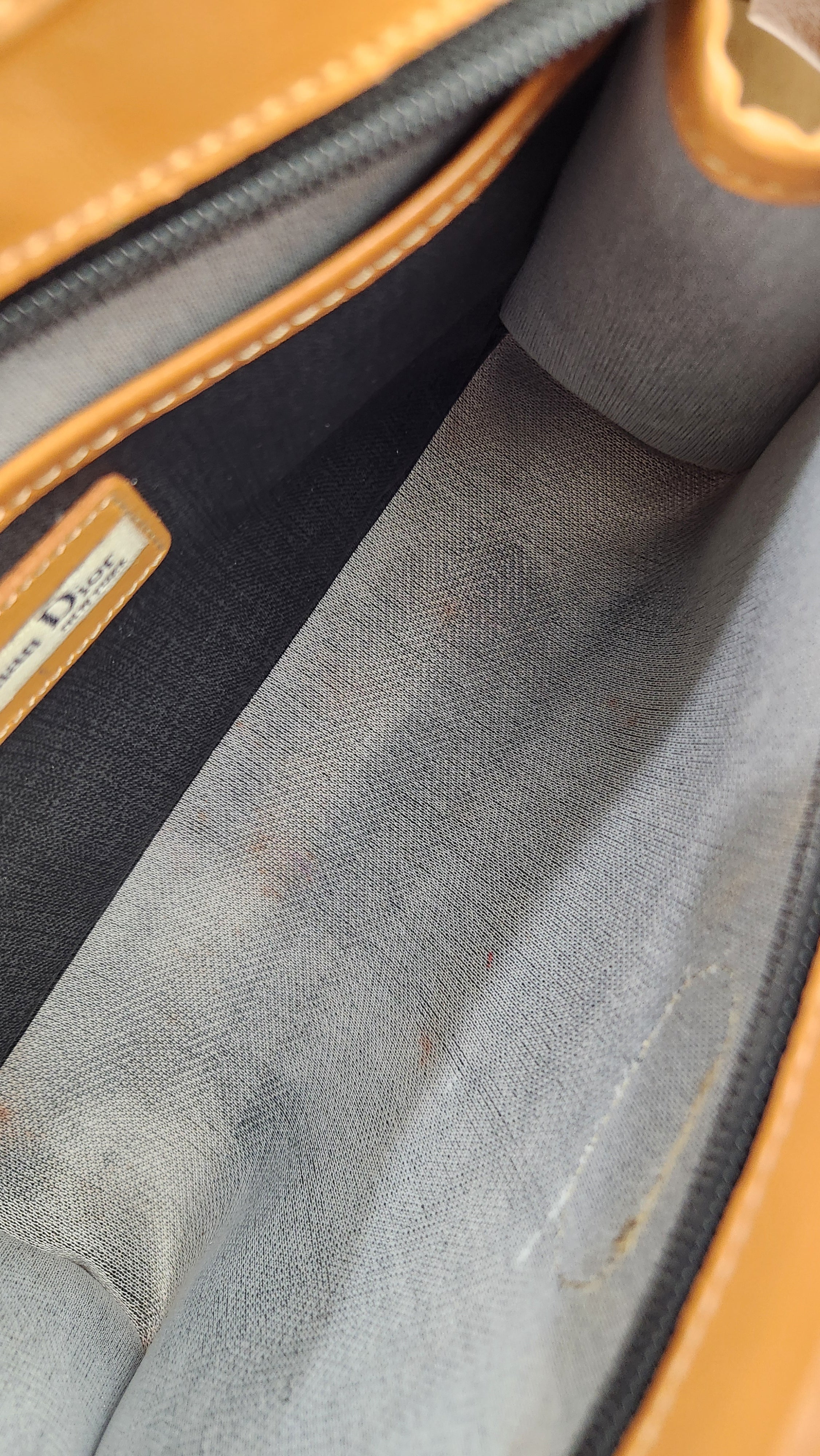 Condition details: In great condition, outside black nylon is in great condition with some signs of wear. Brown Leather trim and tabs are in great condition with some signs of wear. Corners and edges are in great condition with some rubbing and creasing; there is some peeling on the leather tab by the zipper. Hardware is in great condition with some signs of wear, zipper works well. Inside is clean with some wear, no foul smell.