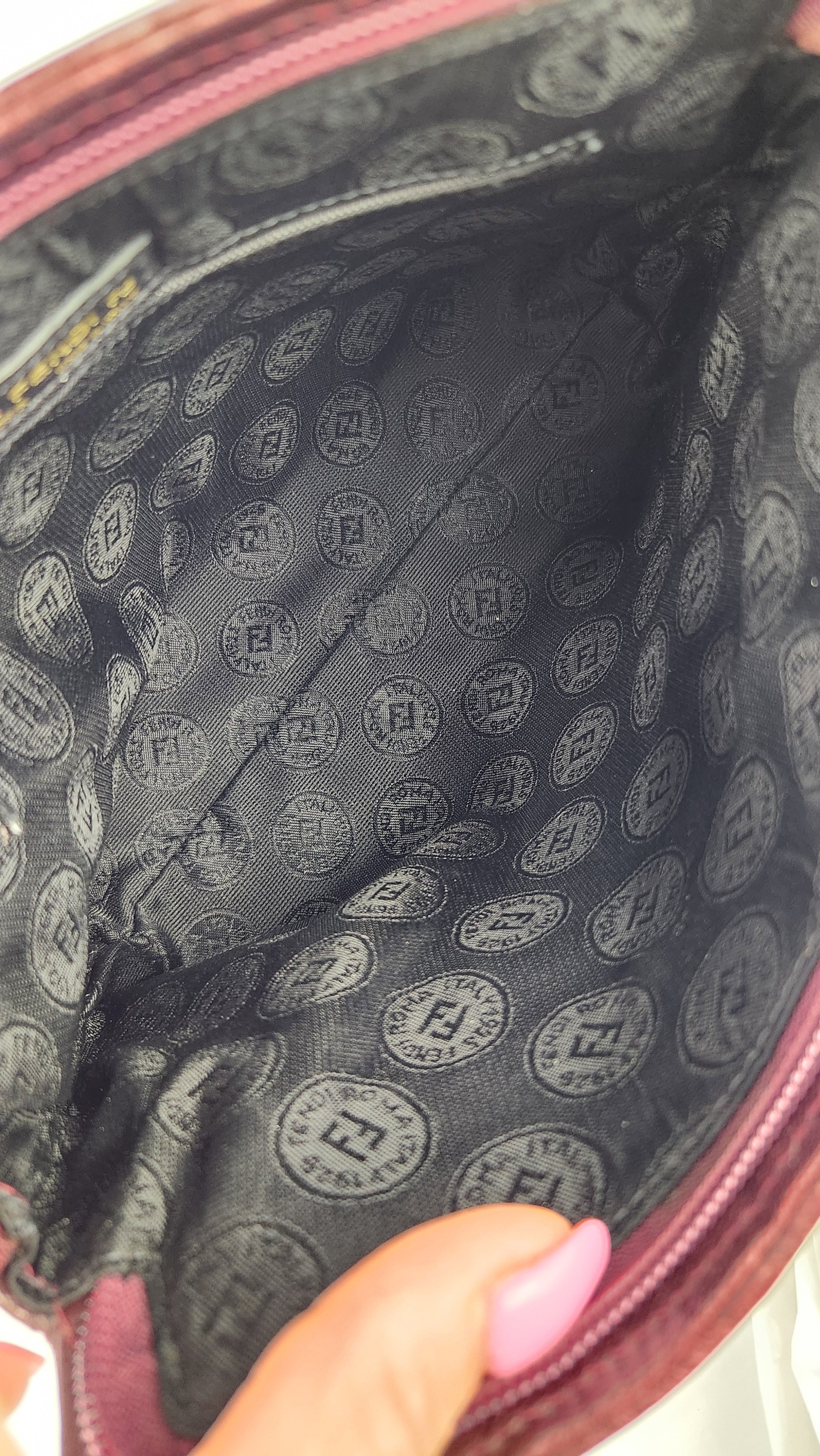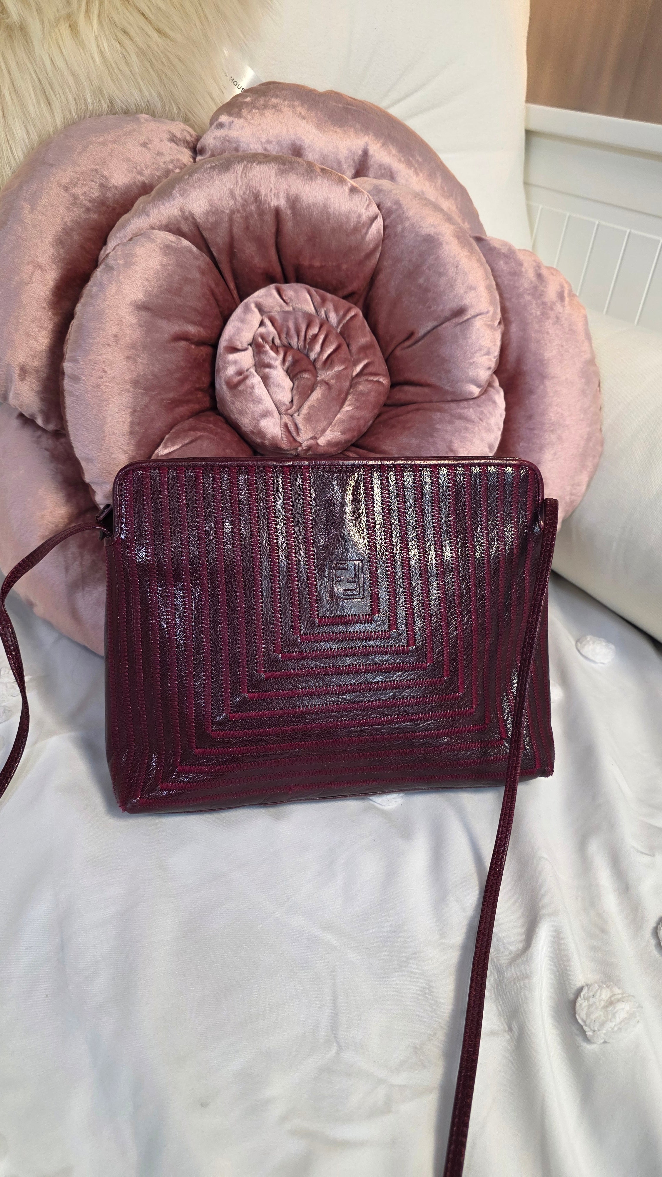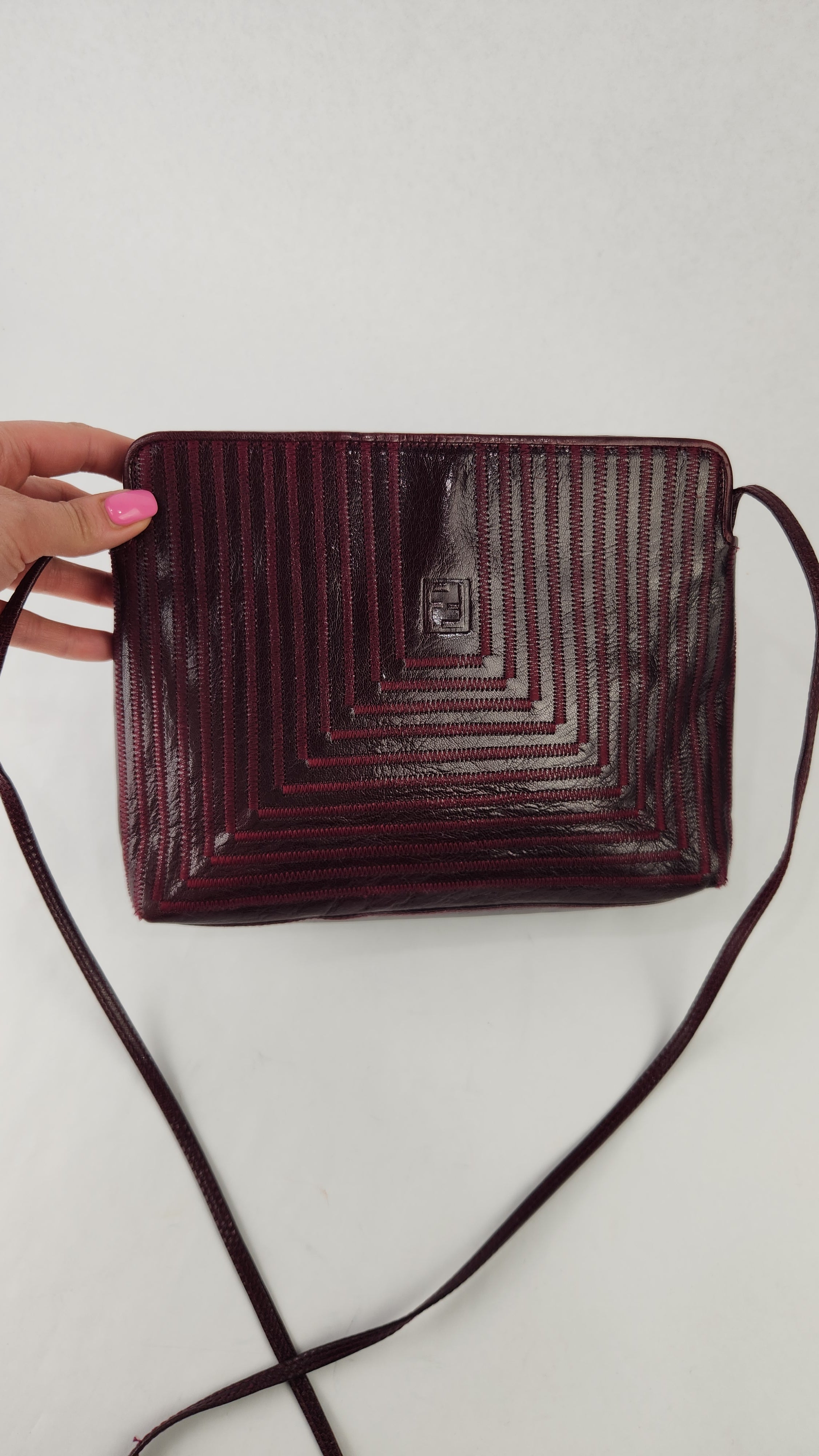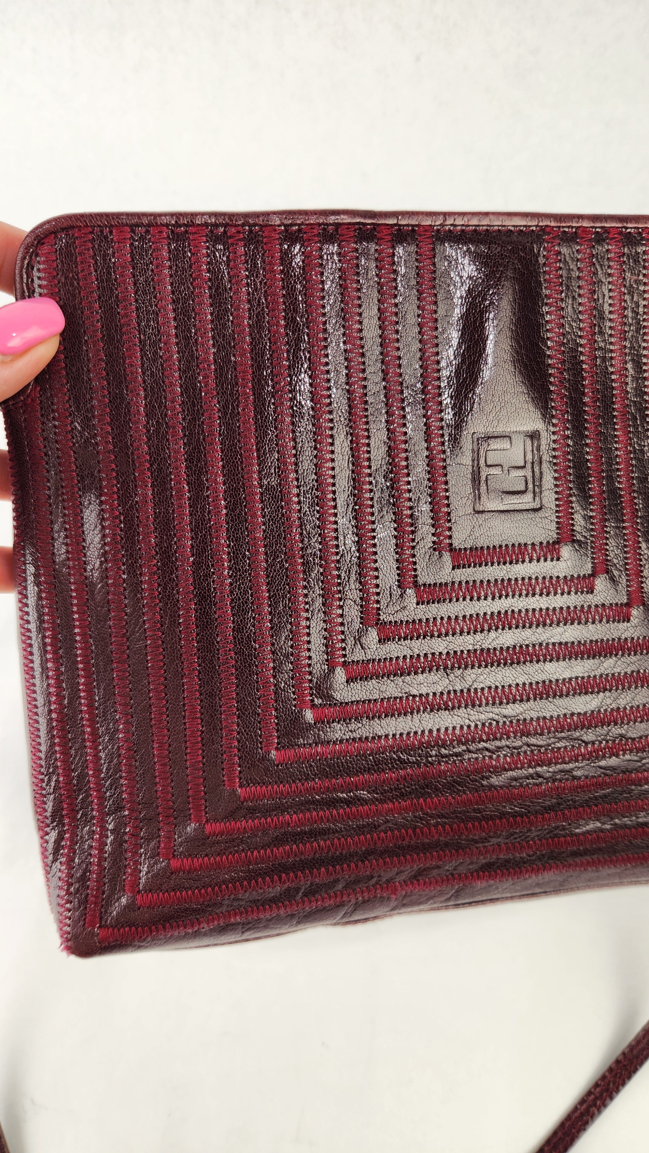 Fendi Burgandy Patent Leather Stitched Shoulder Bag