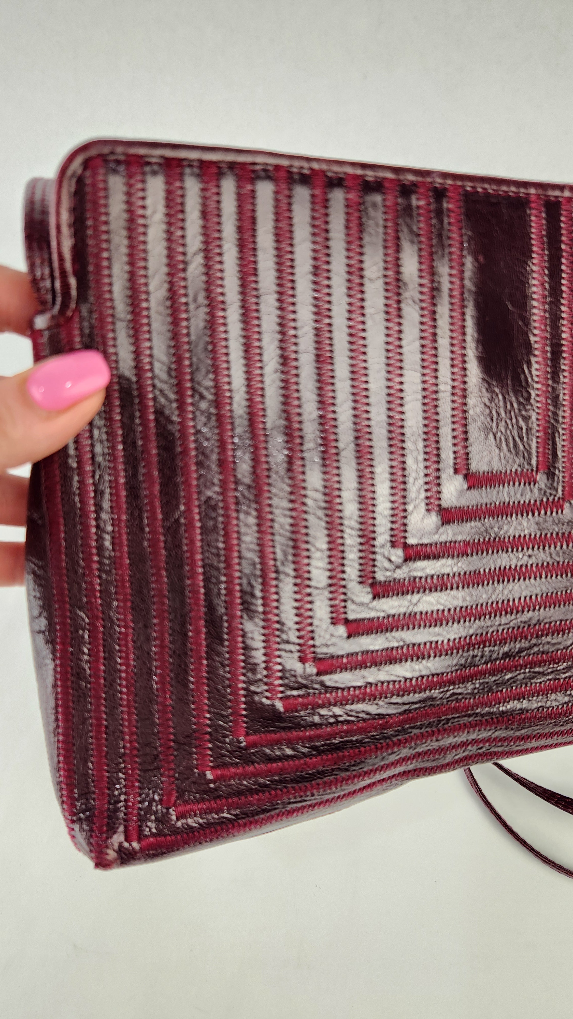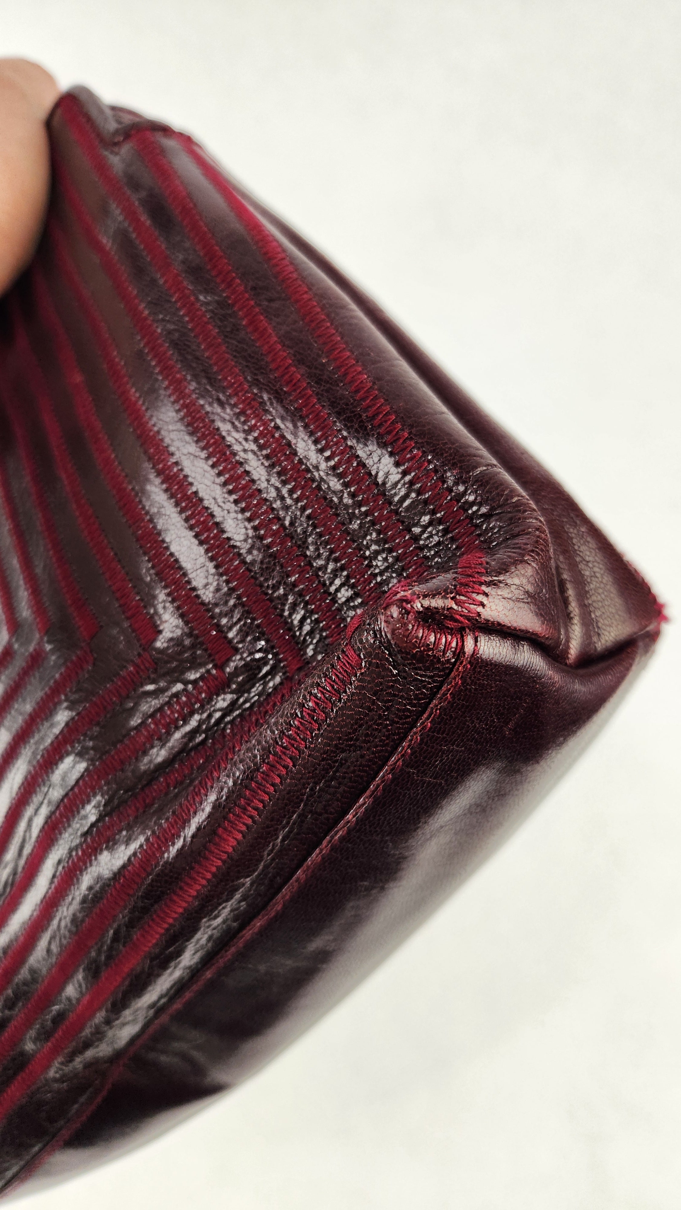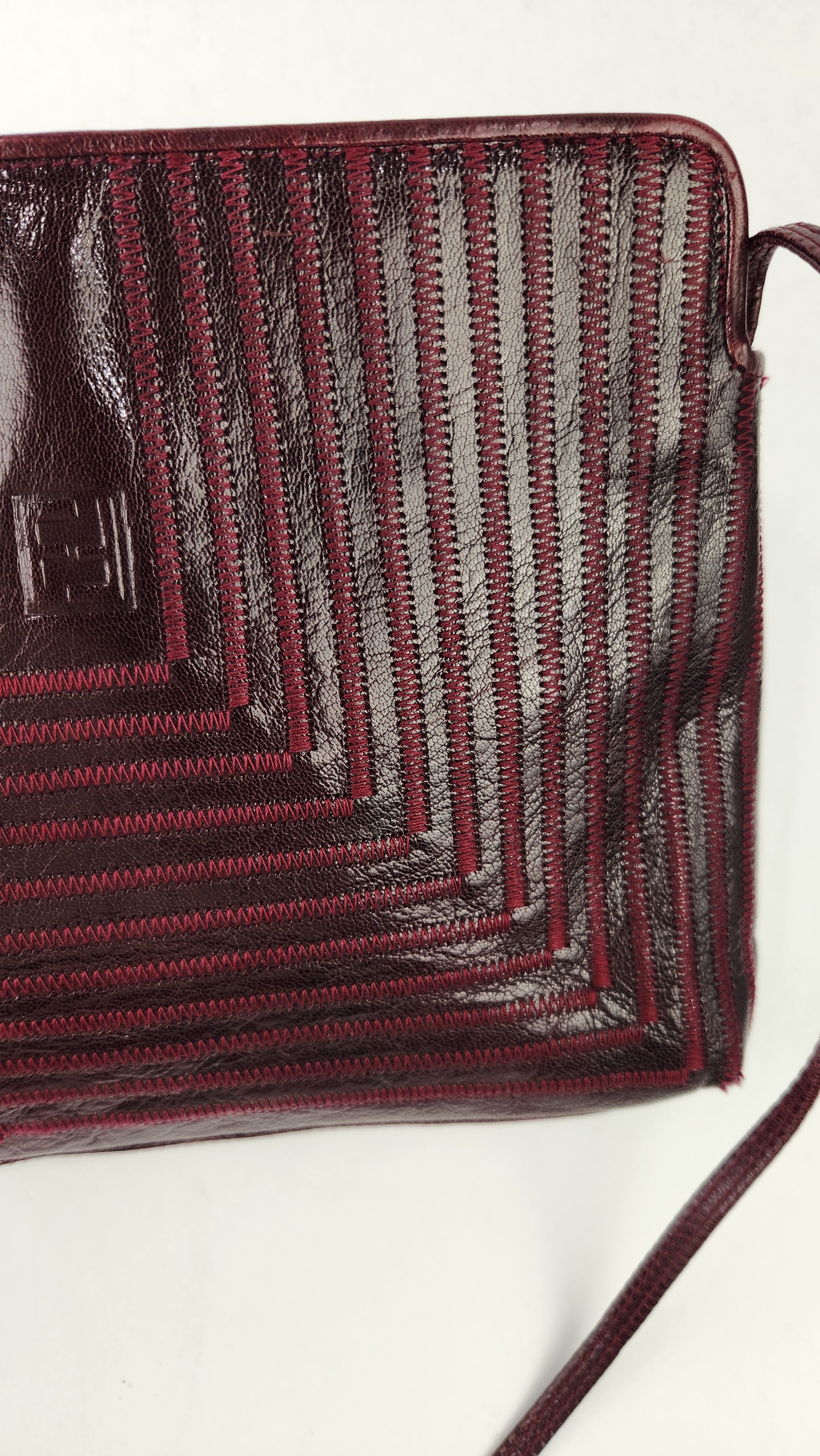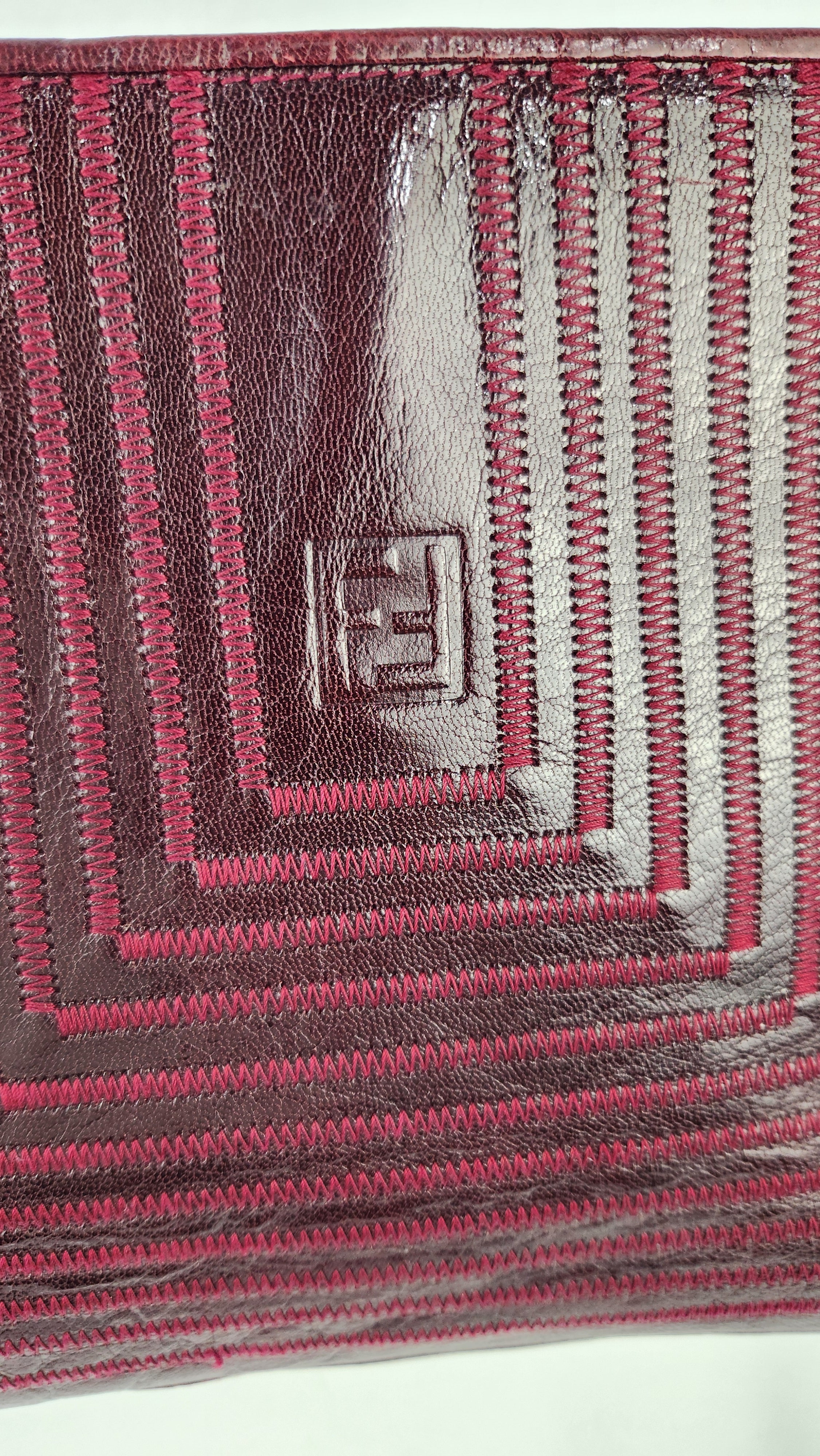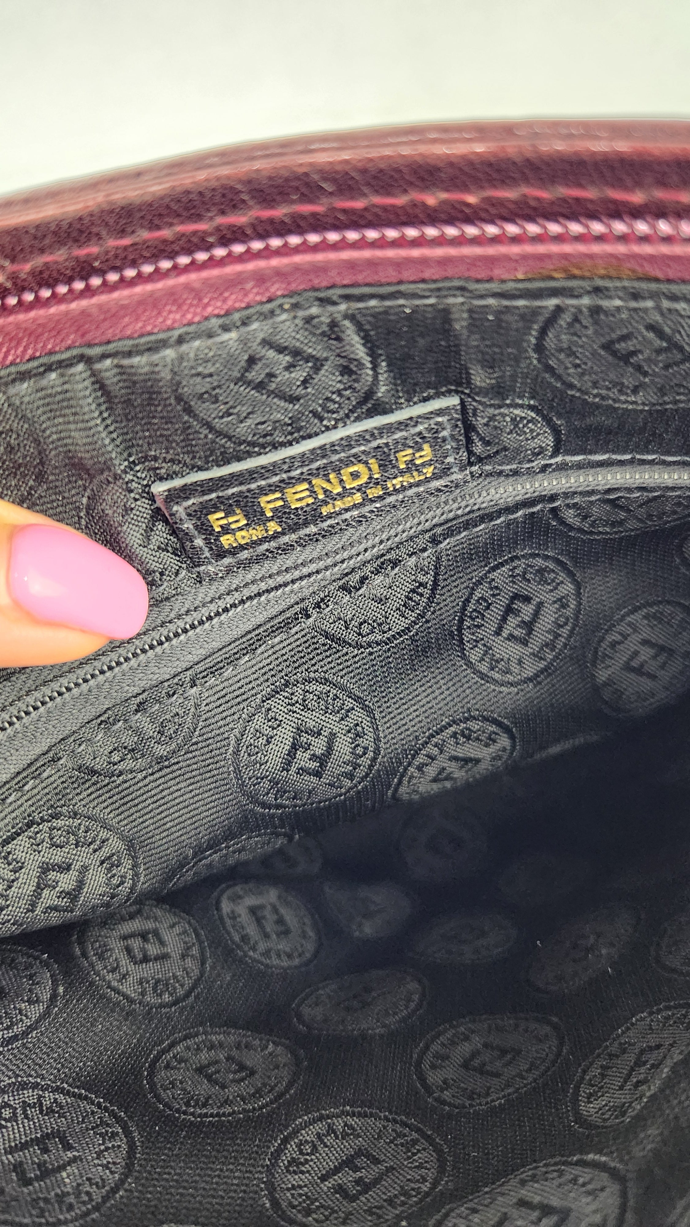 Fendi Burgandy Patent Leather Stitched Shoulder Bag