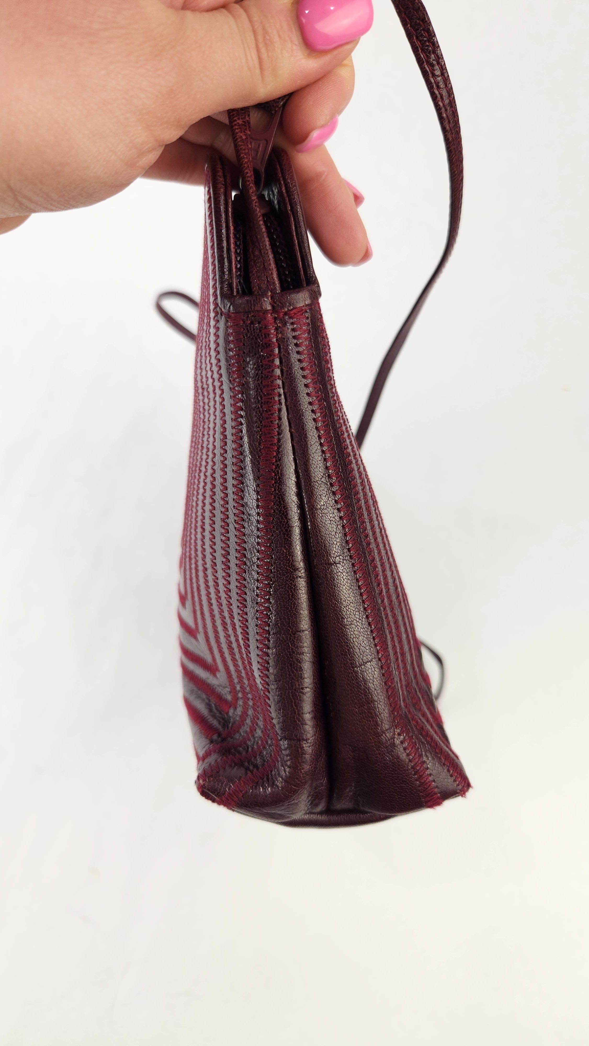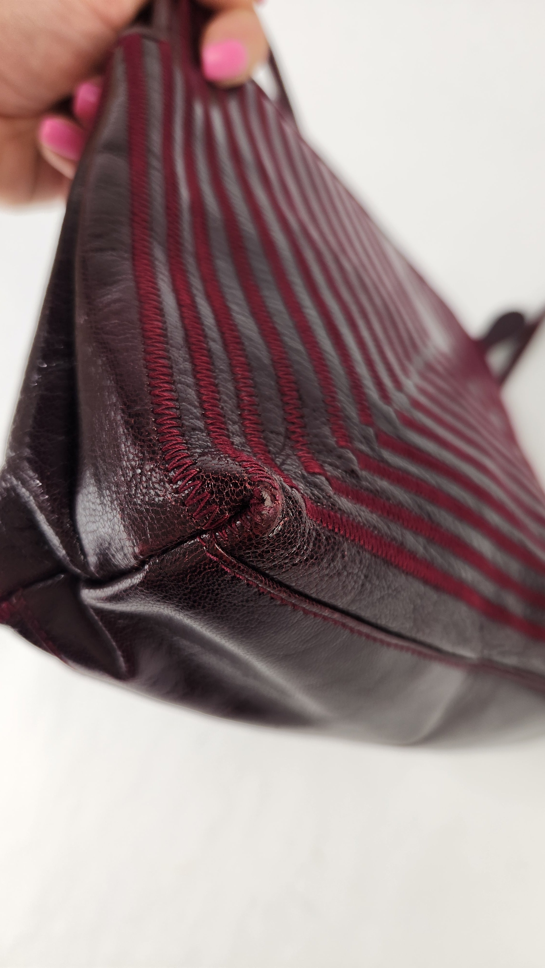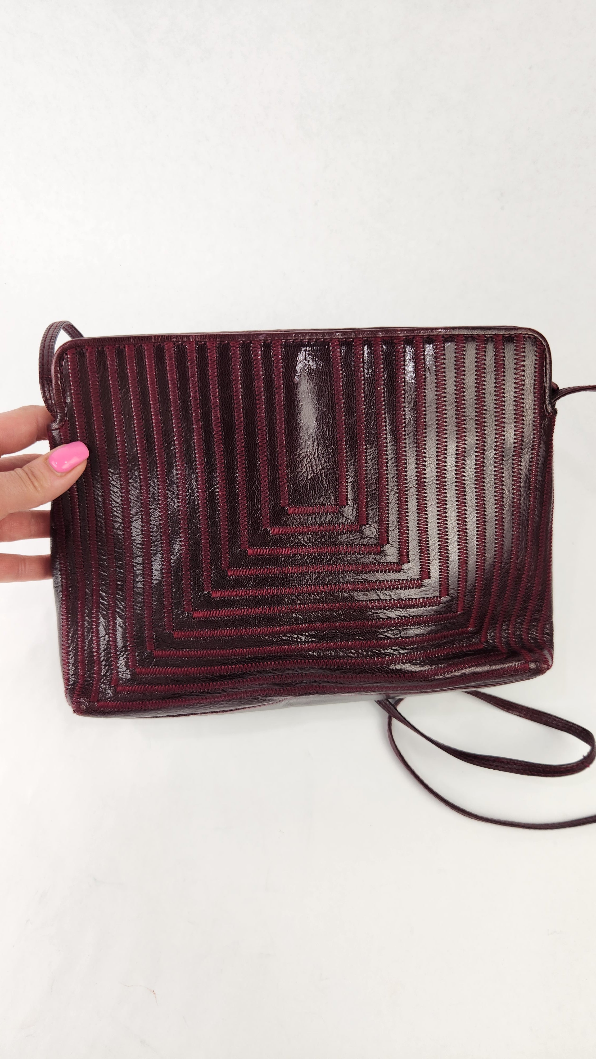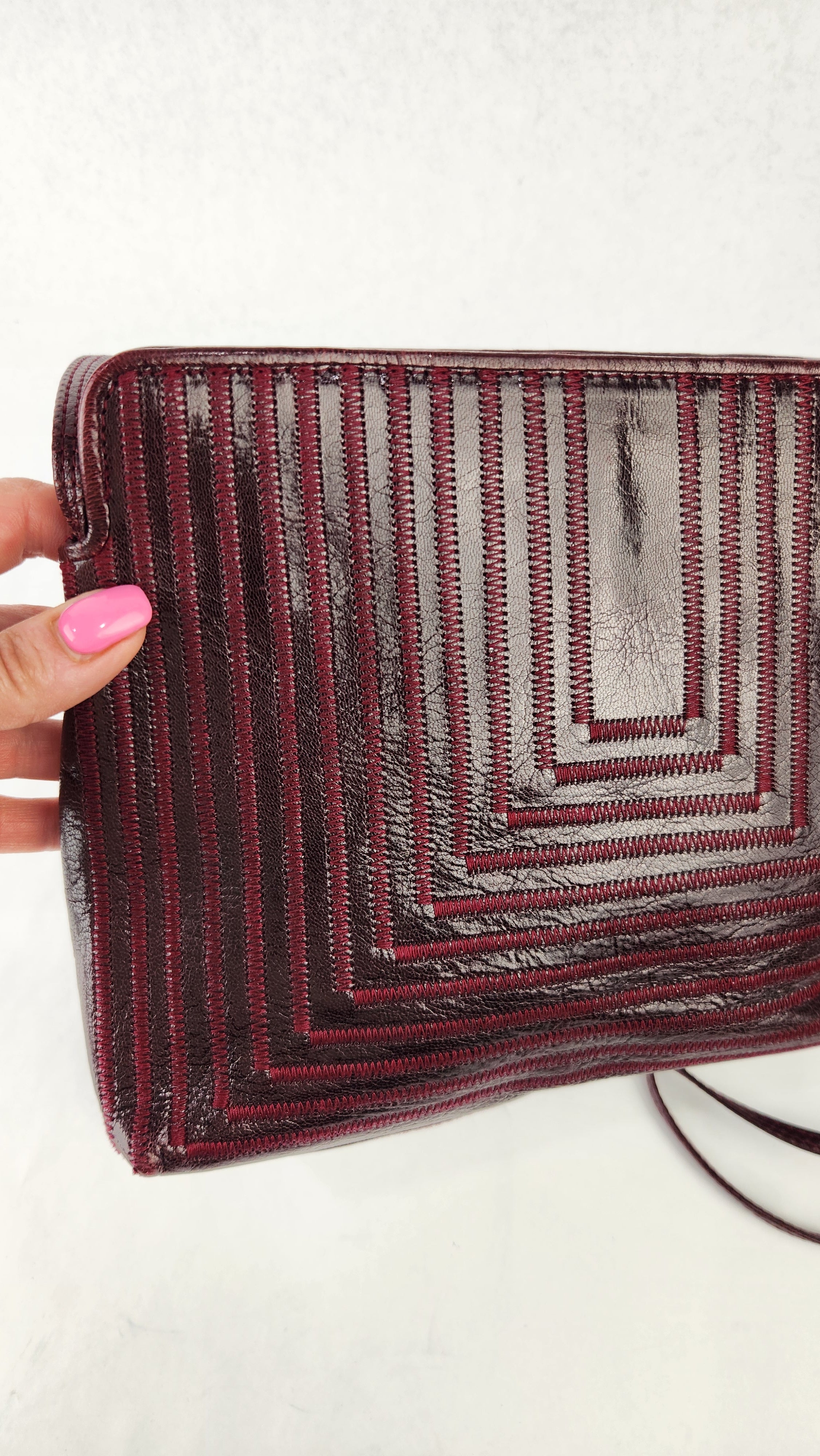 Fendi Burgandy Patent Leather Stitched Shoulder Bag