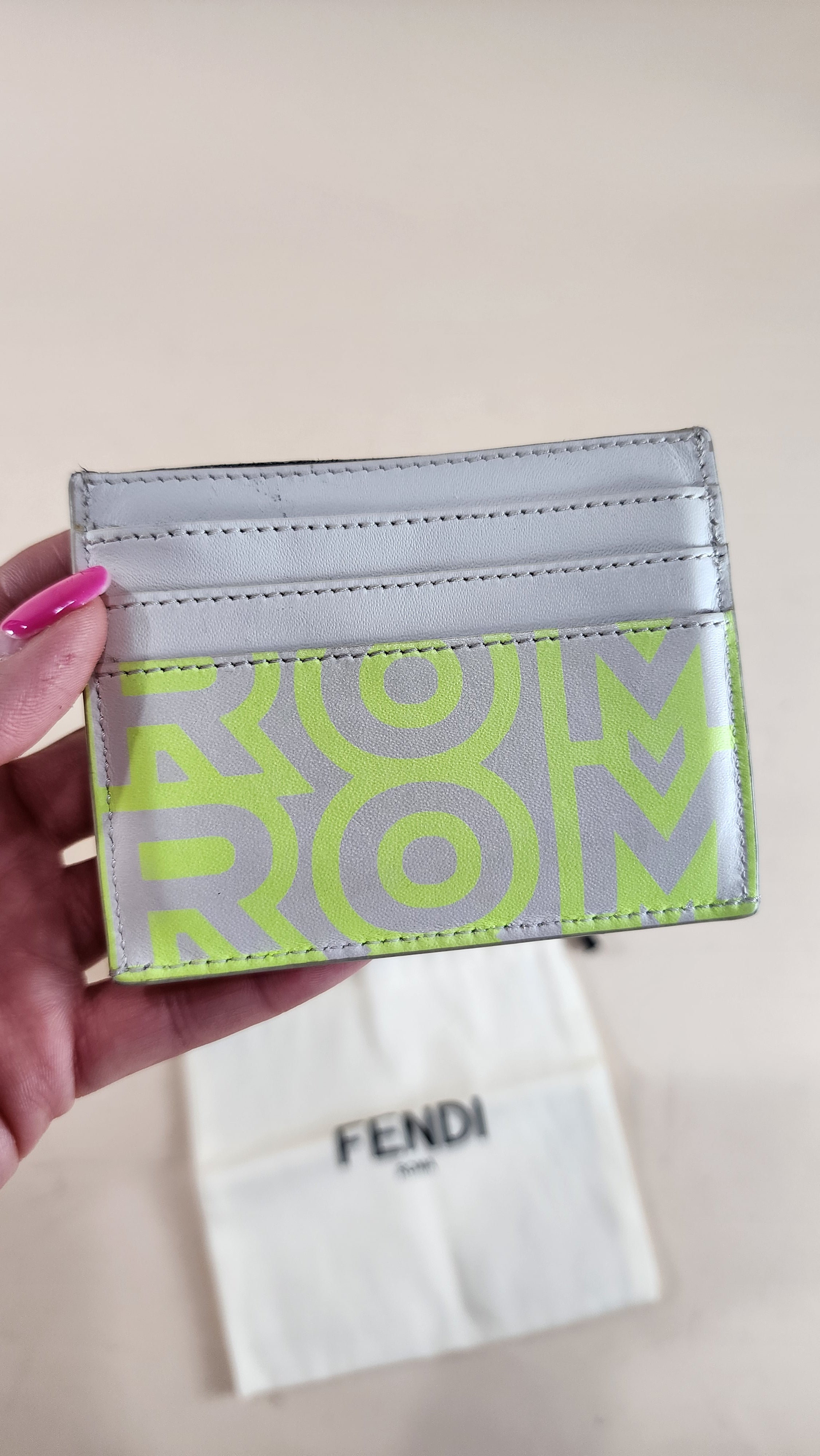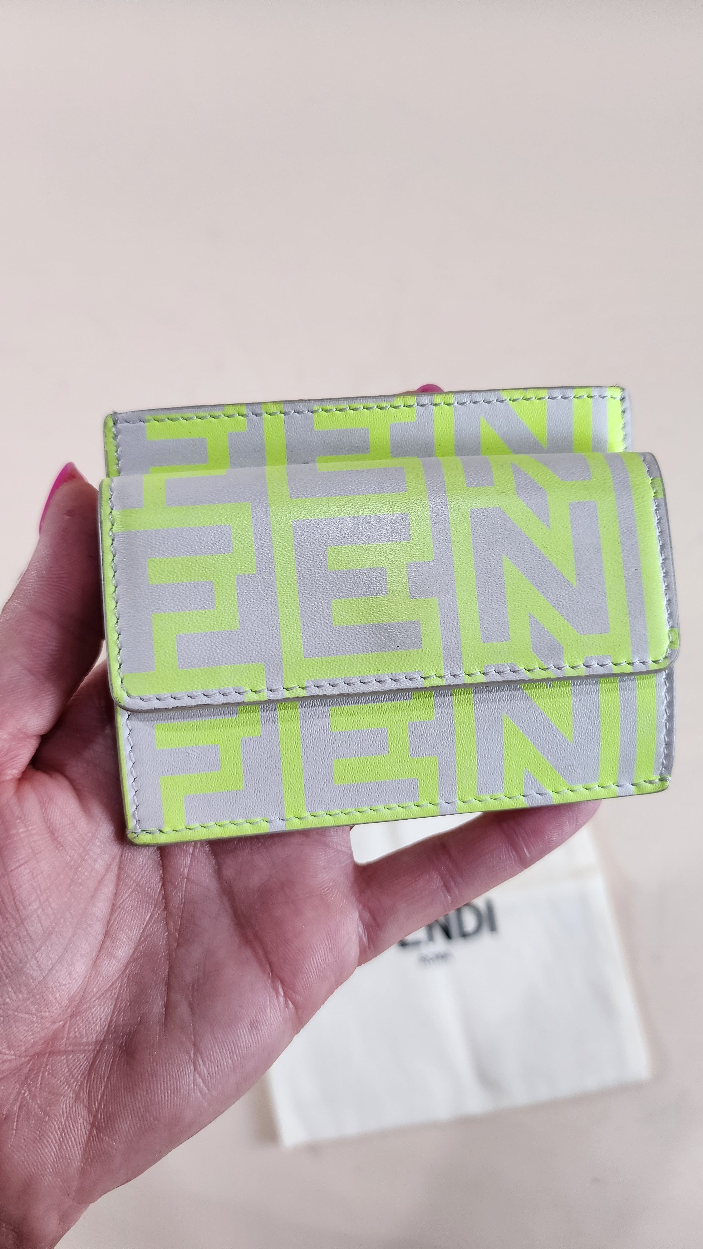 Fendi Cream and Neon Yellow Card Case/Coin Purse