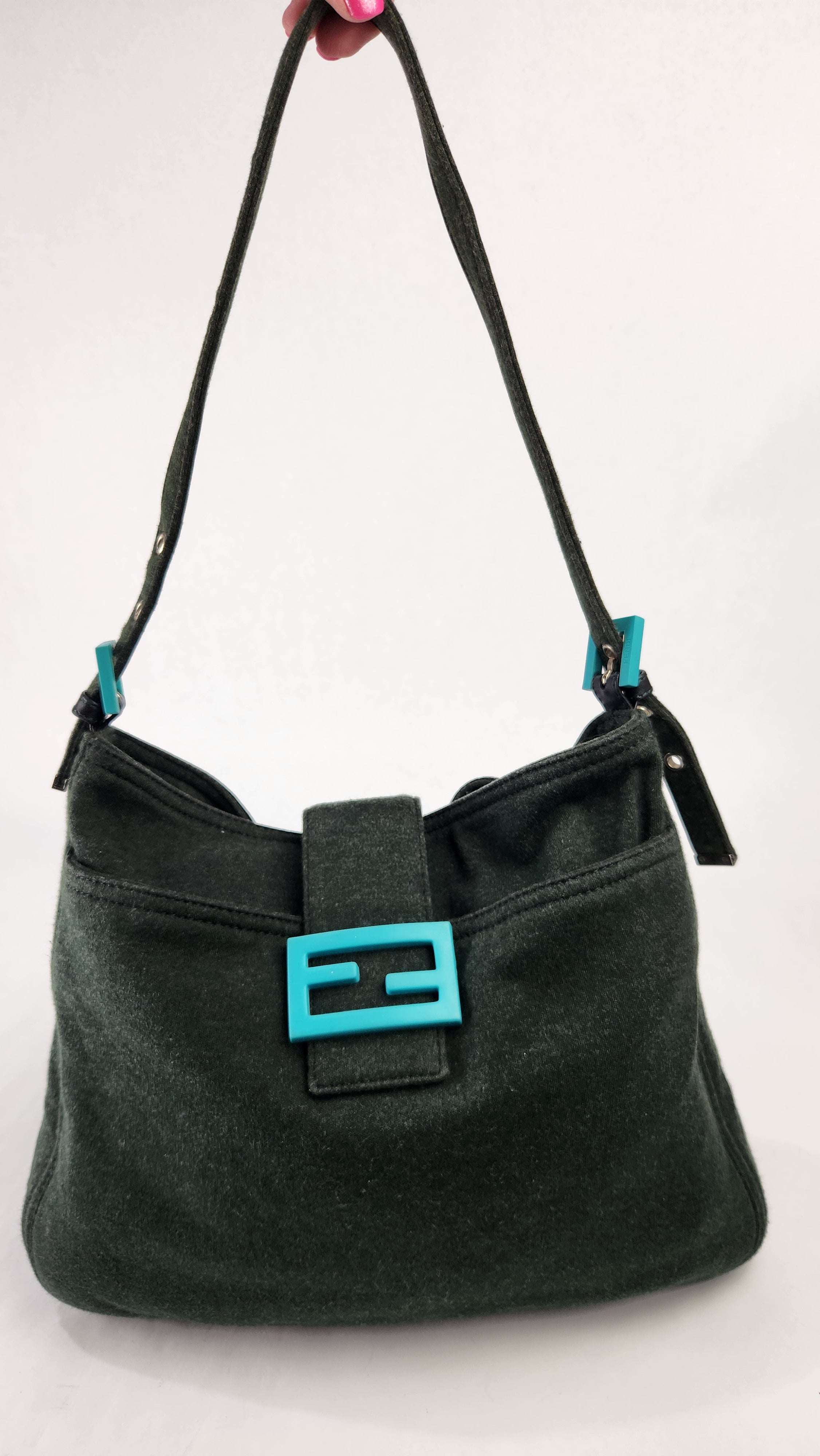 Fendi Khaki Cotton Jersey FF Shoulder Bag