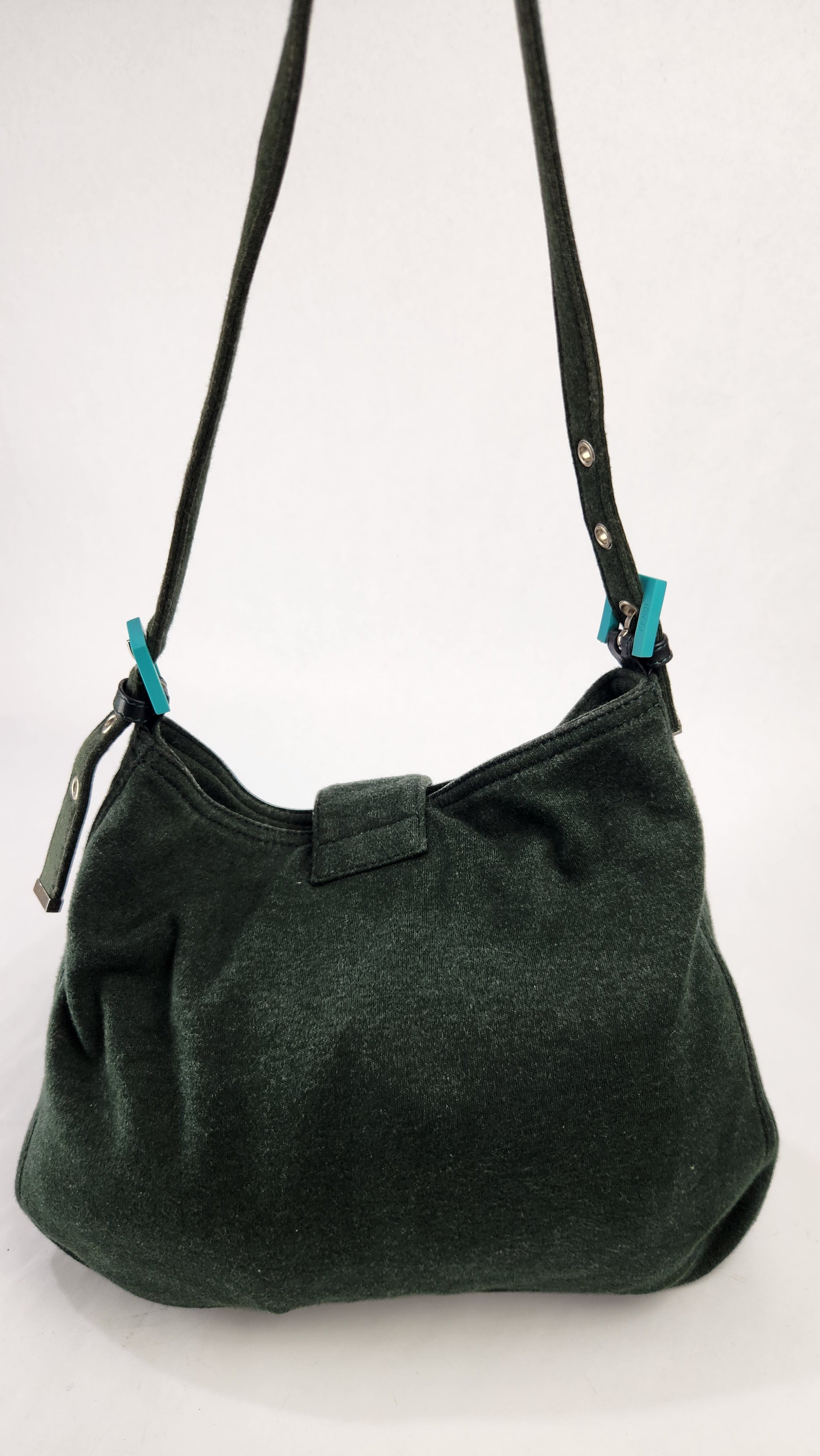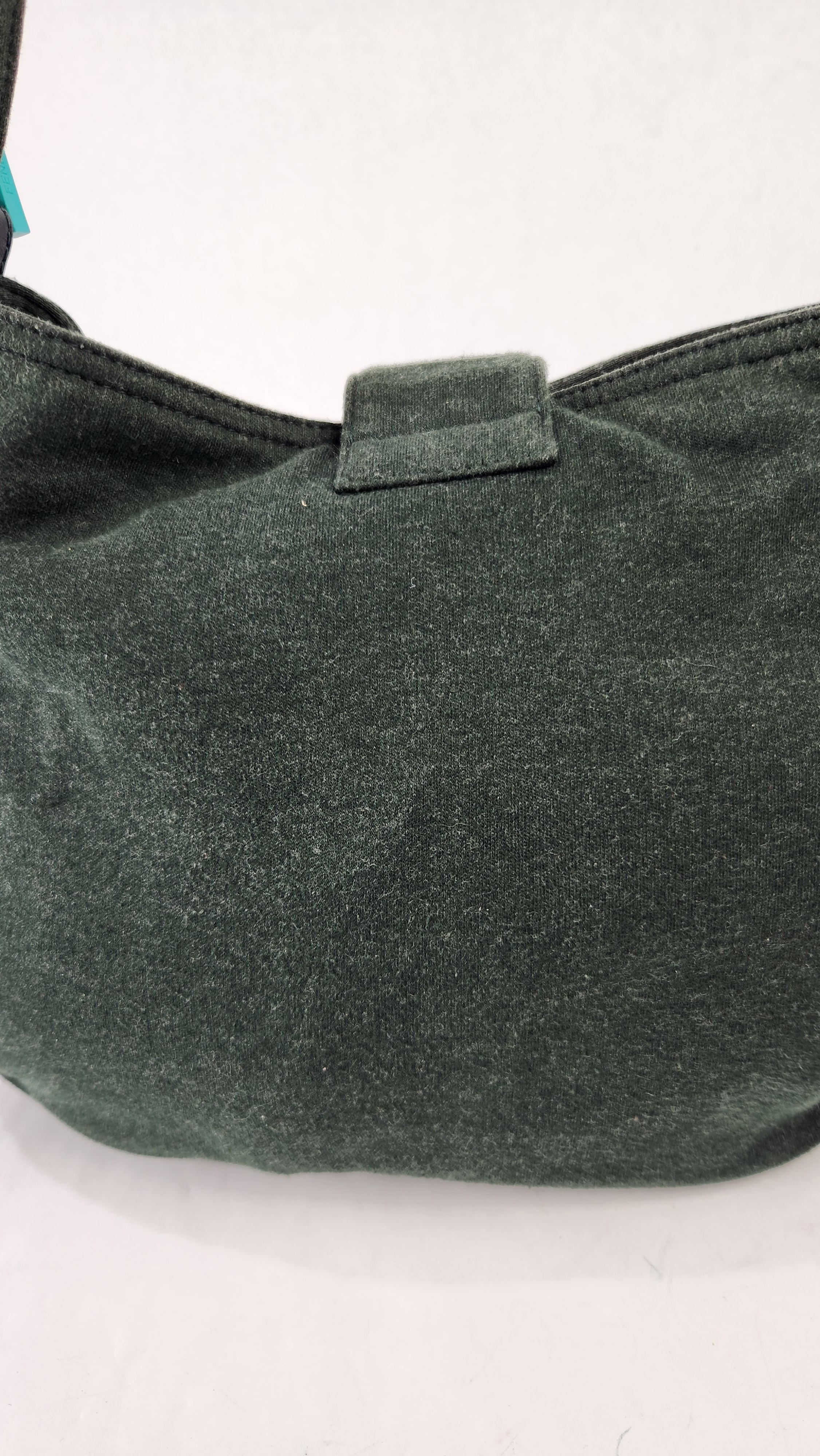 Condition details: In great condition; outside cotton jersey material is in great condition with some minor signs of wear. Edges and corners are in great condition with some signs of wear and rubbing. Adjustable shoulder strap is in great condition with some signs of wear and rubbing throughout. Silver toned hardware is in great condition with some signs of wear and rubbing, magnetic closure and internal zipper work well. Turquoise colored buckles are in great condition with some signs of wear. Inside is clean with some signs of wear, no foul smell.