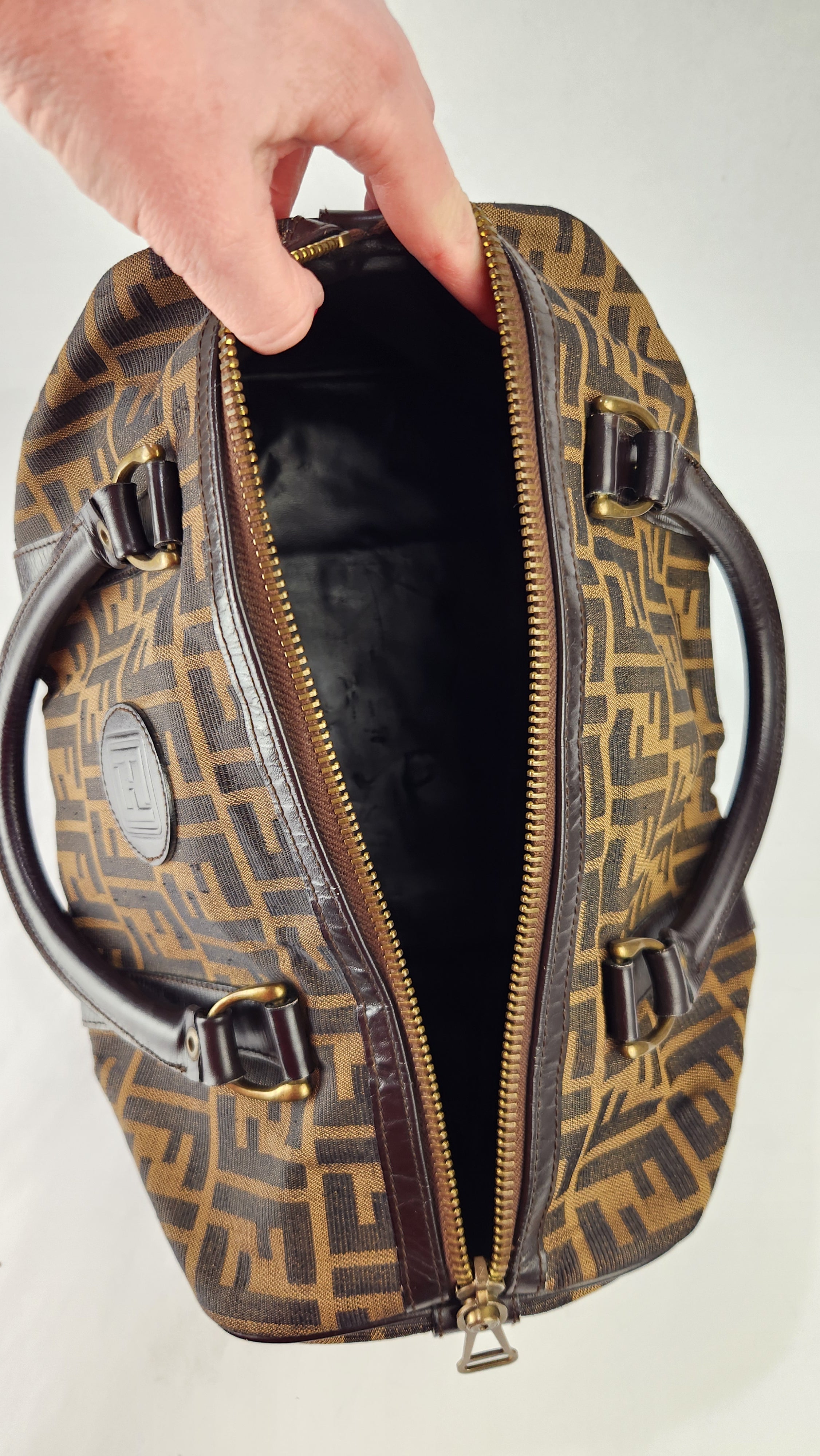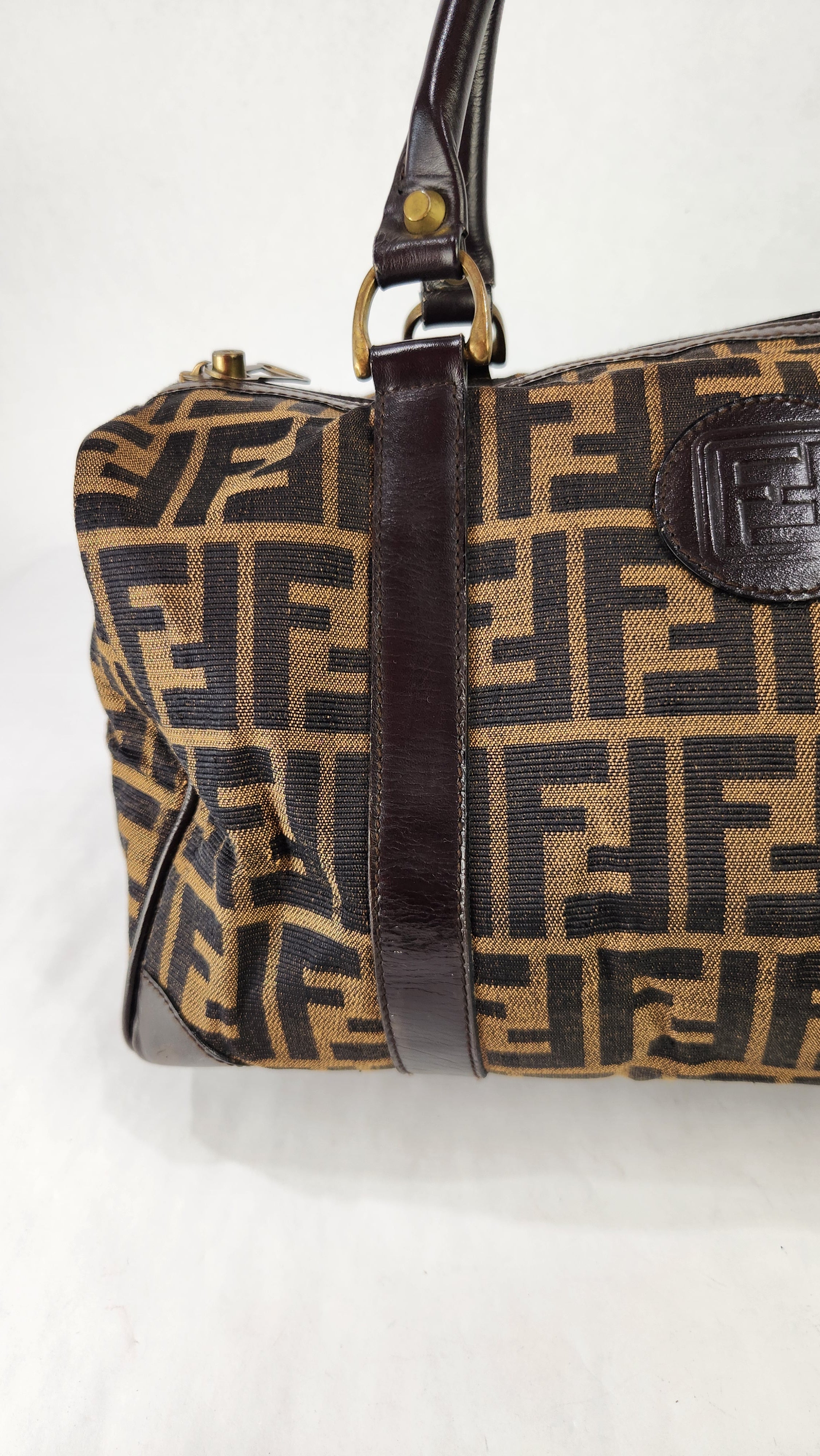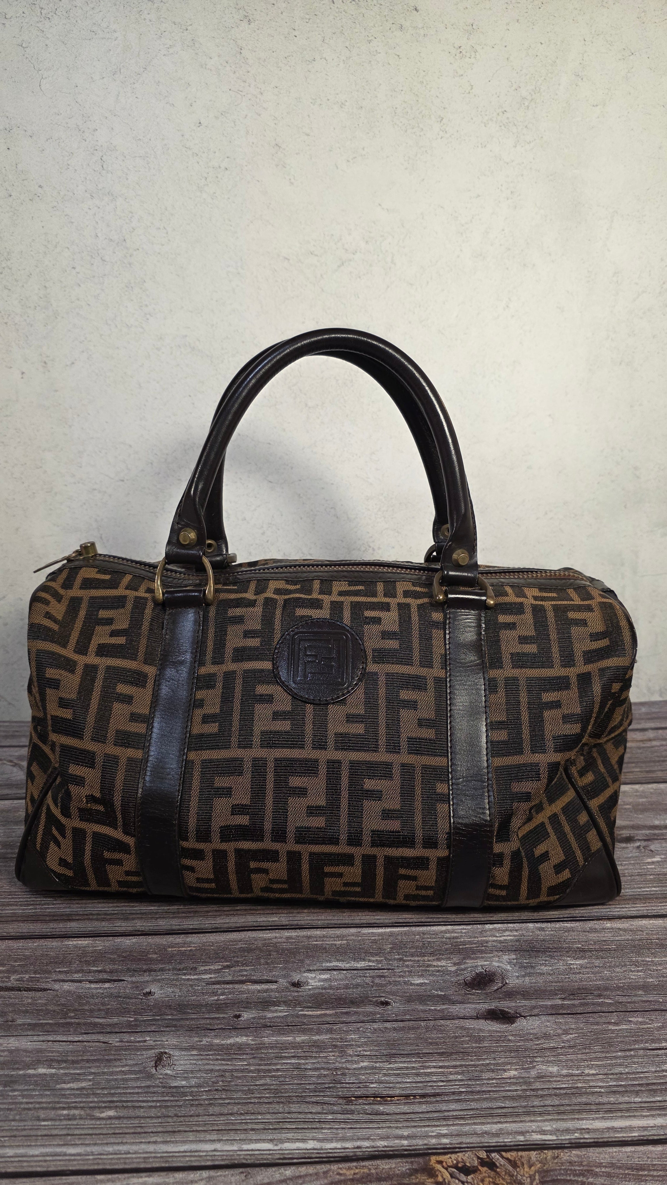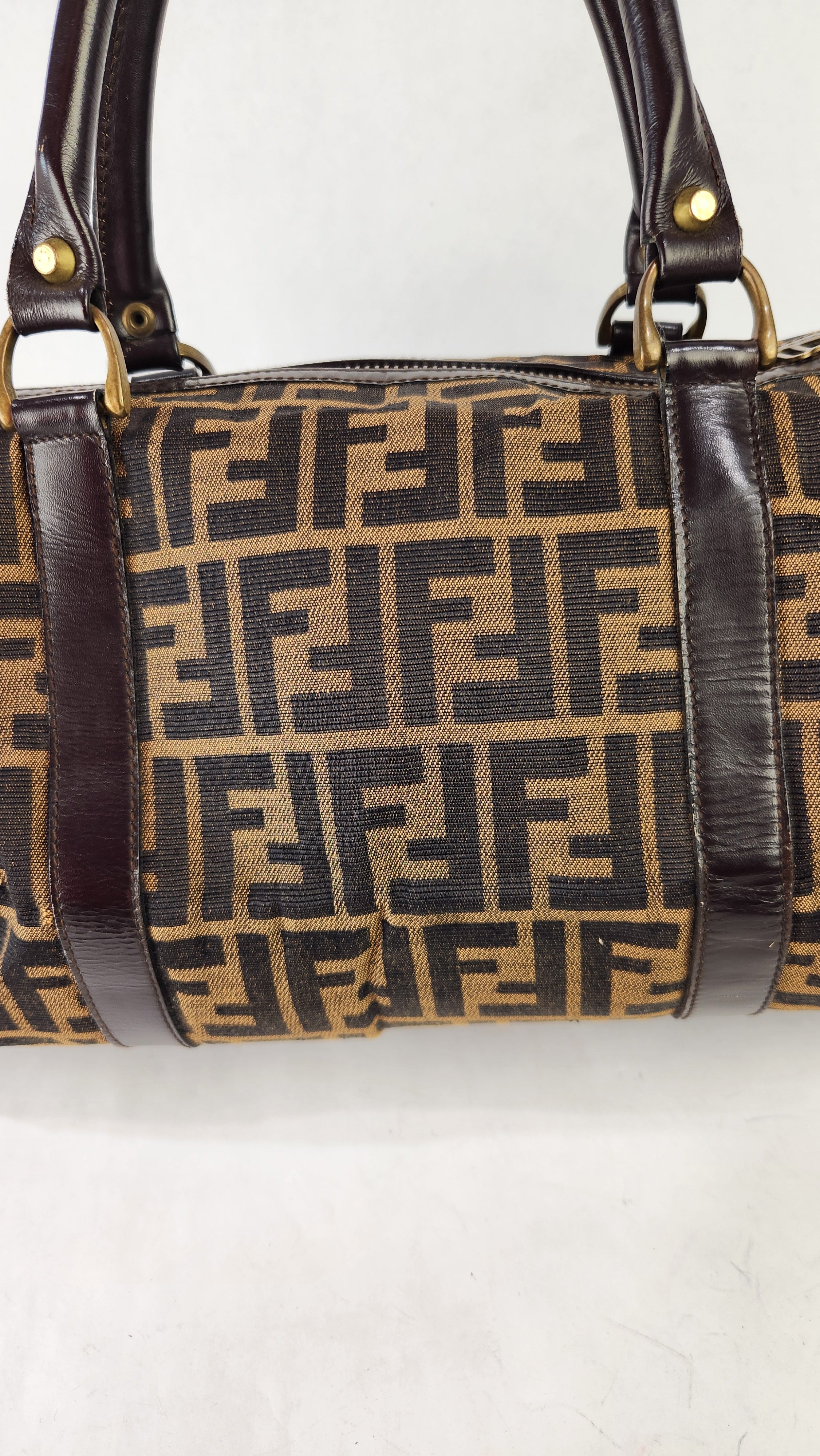 Condition details: In great condition; outside zucca canvas is in great condition with some sign of wear throughout and some rubs. Corners and edges are in great condition with some signs of wear and rubbing. Leather parts are in great condition with some wear and rubbing and creasing in areas. Leather handles are in great condition with some signs of wear. Gold tone hardware is in great condition with some signs of wear, zipper works well. Inside is clean with some signs of wear, no foul smell.