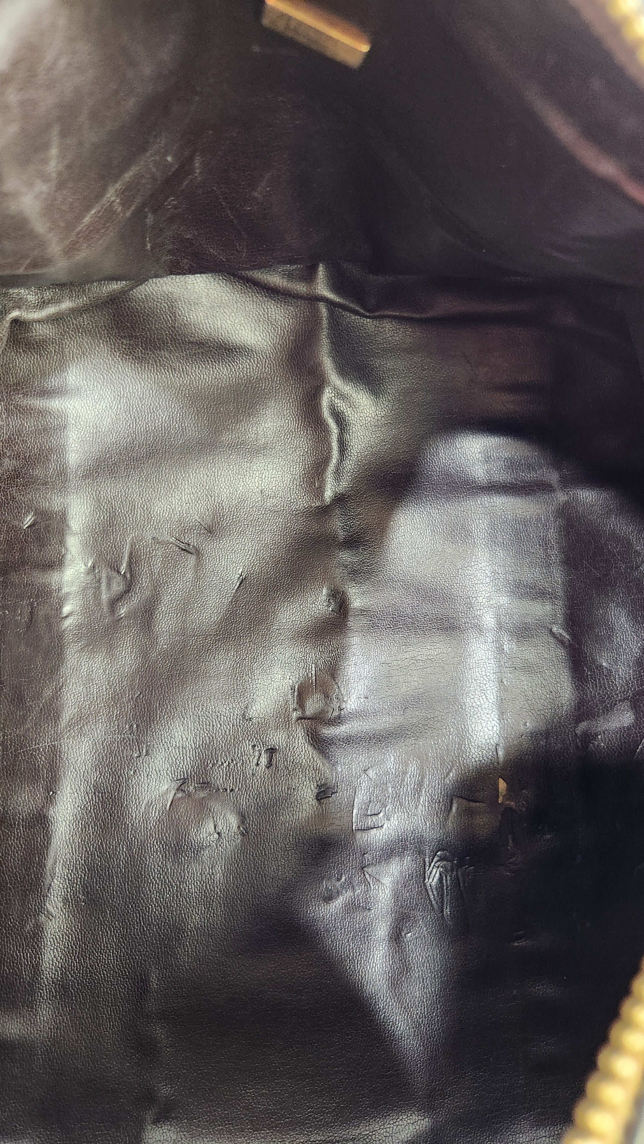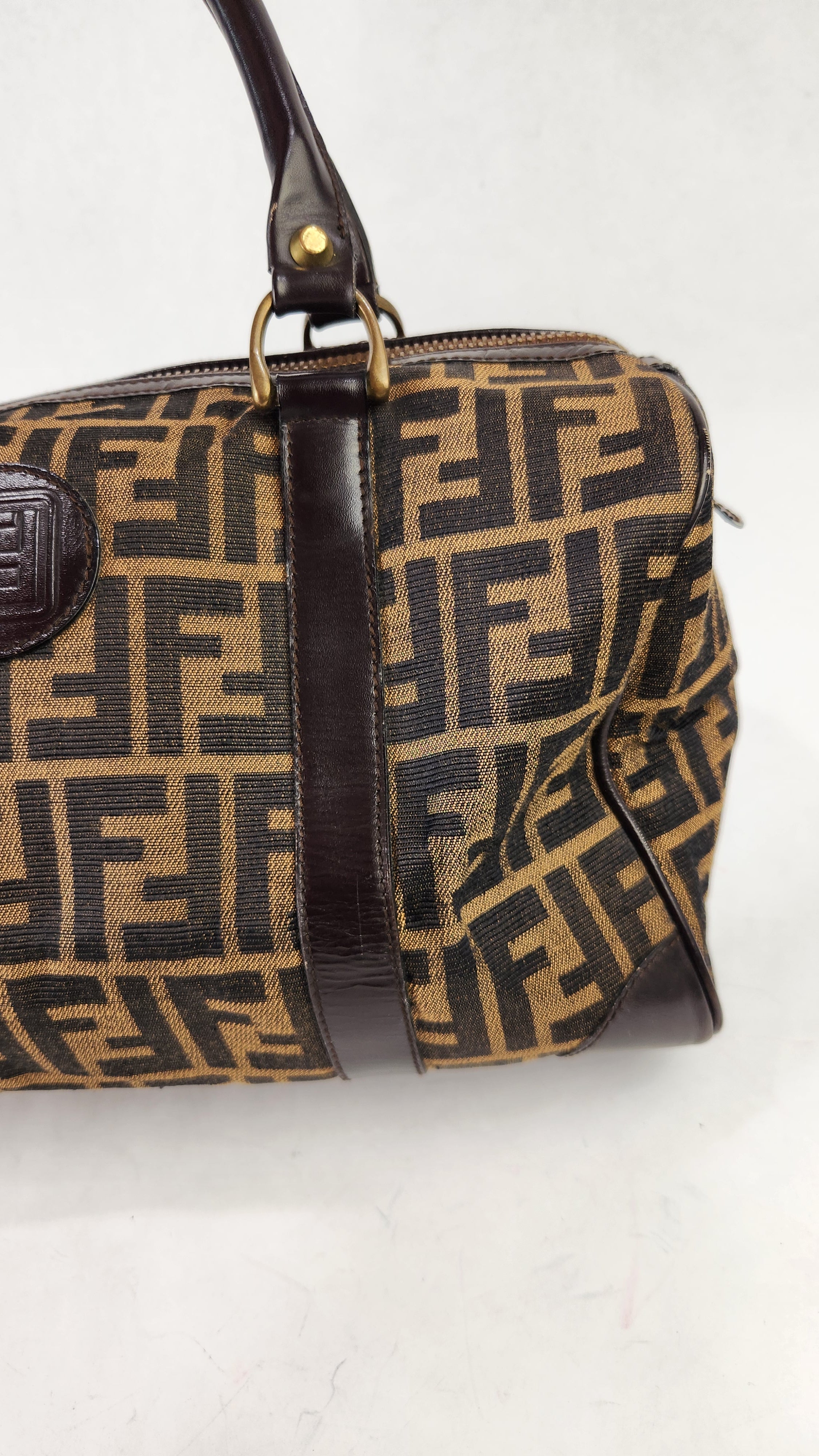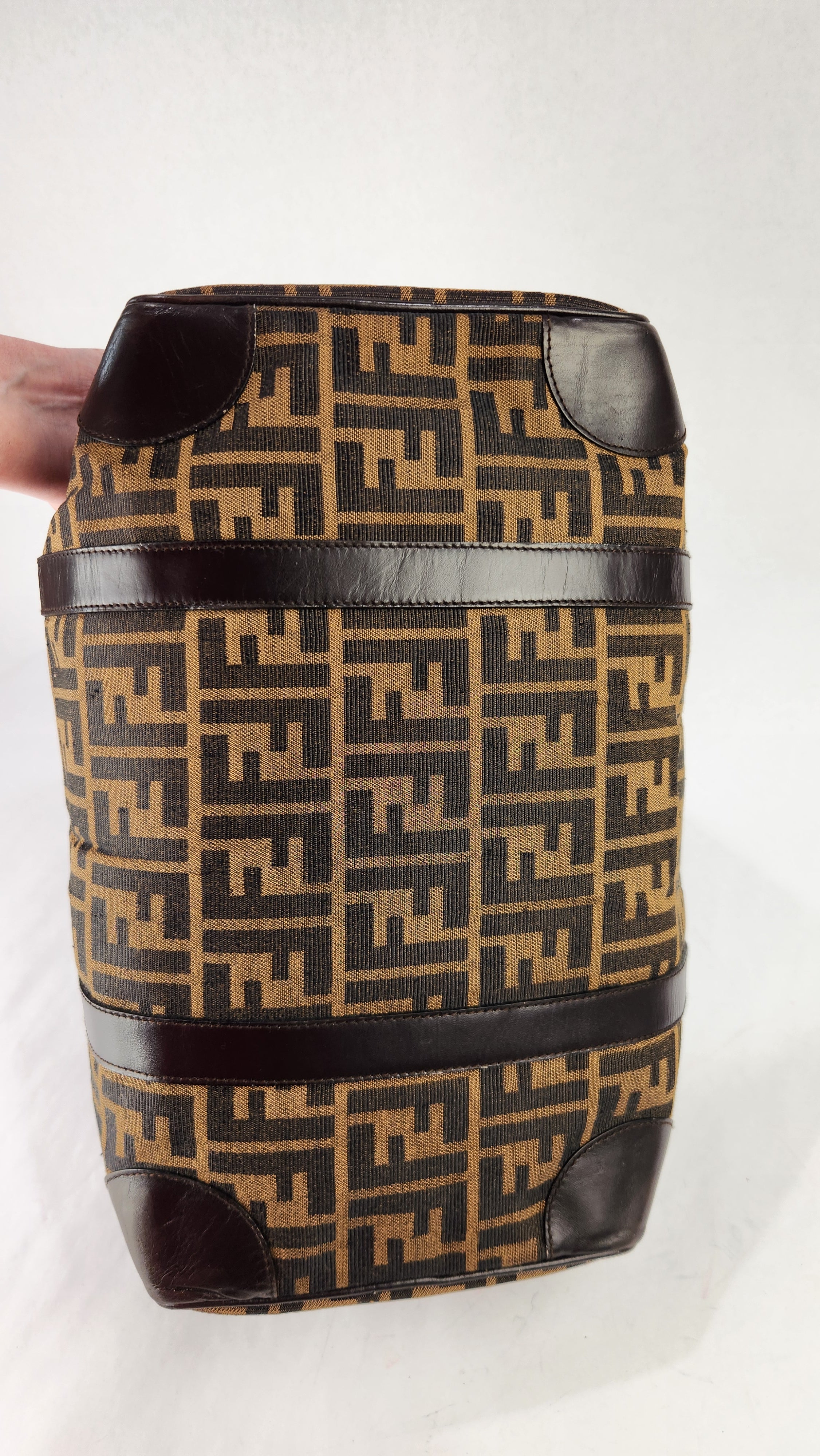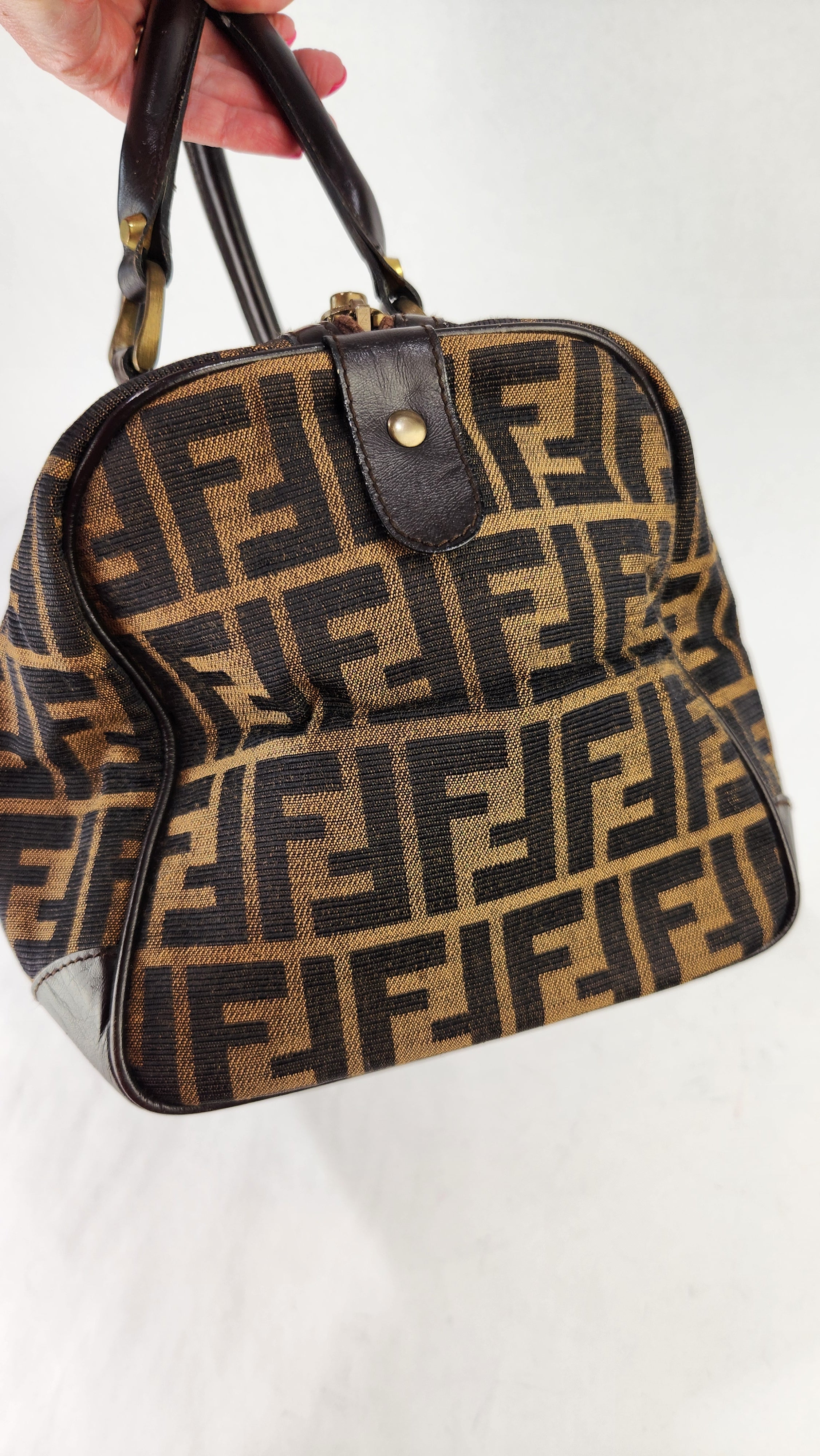 Condition details: In great condition; outside zucca canvas is in great condition with some sign of wear throughout and some rubs. Corners and edges are in great condition with some signs of wear and rubbing. Leather parts are in great condition with some wear and rubbing and creasing in areas. Leather handles are in great condition with some signs of wear. Gold tone hardware is in great condition with some signs of wear, zipper works well. Inside is clean with some signs of wear, no foul smell.