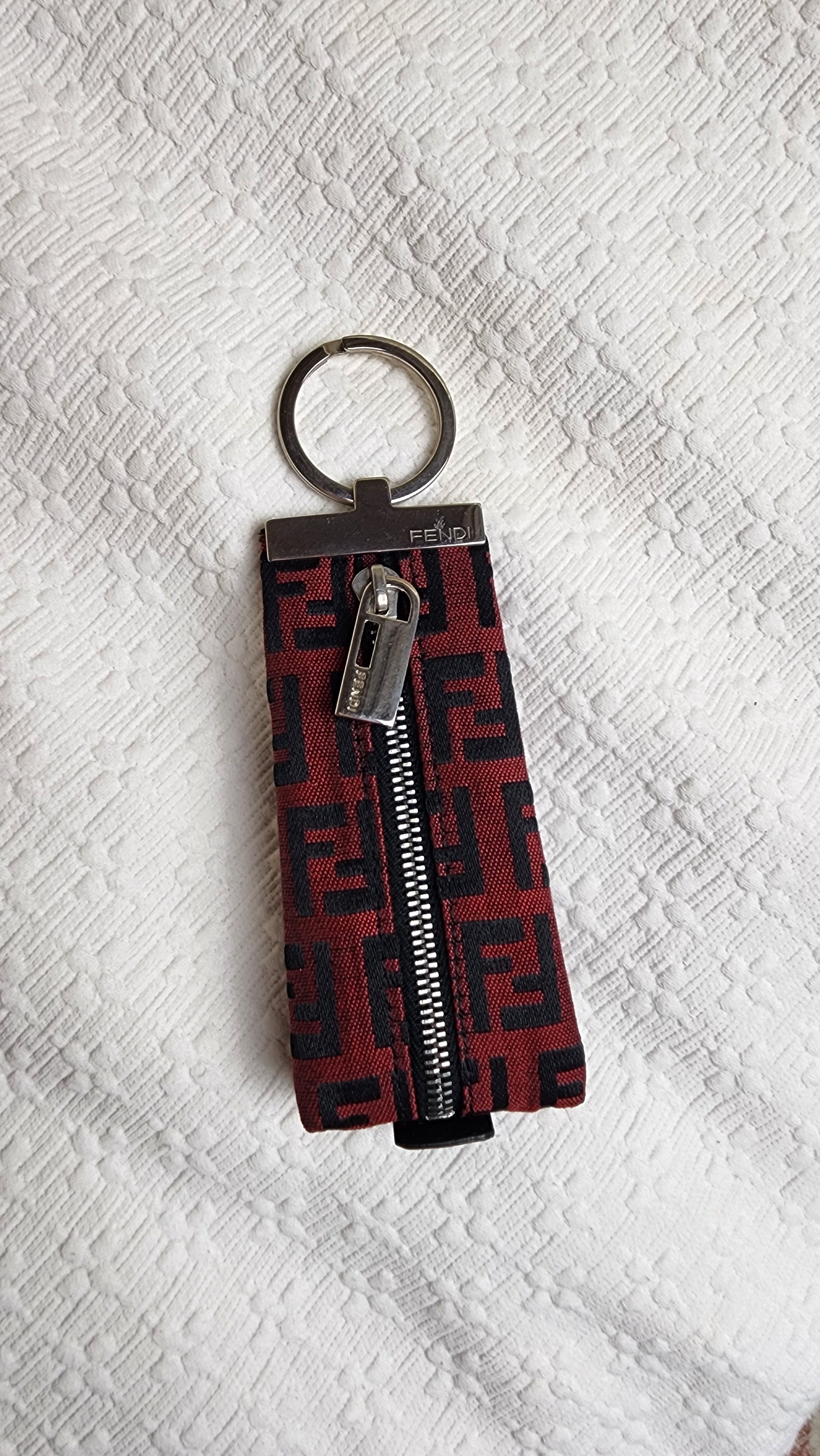 Fendi Zucchino Red/Black Canvas Key Case with silver hardware
