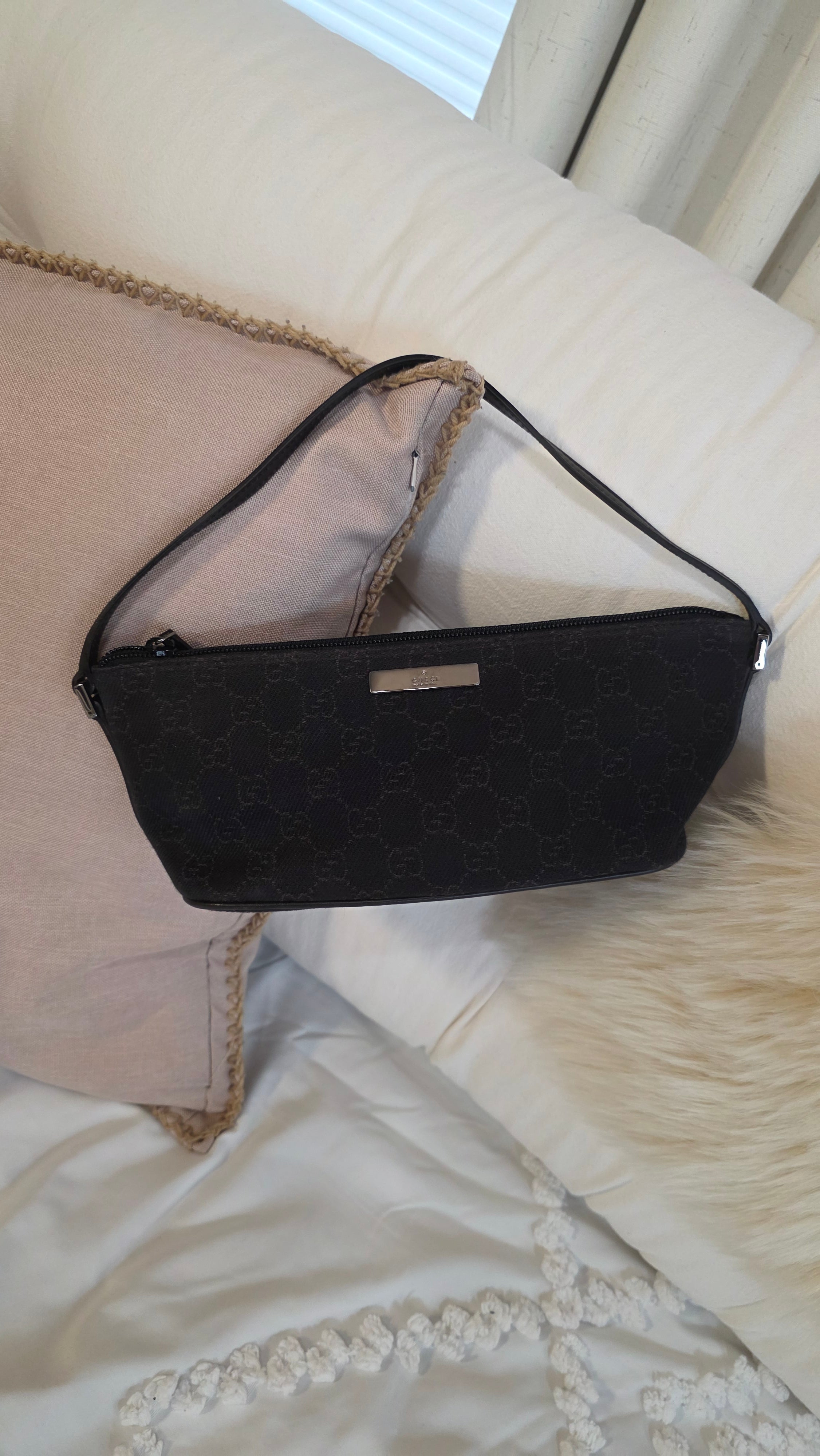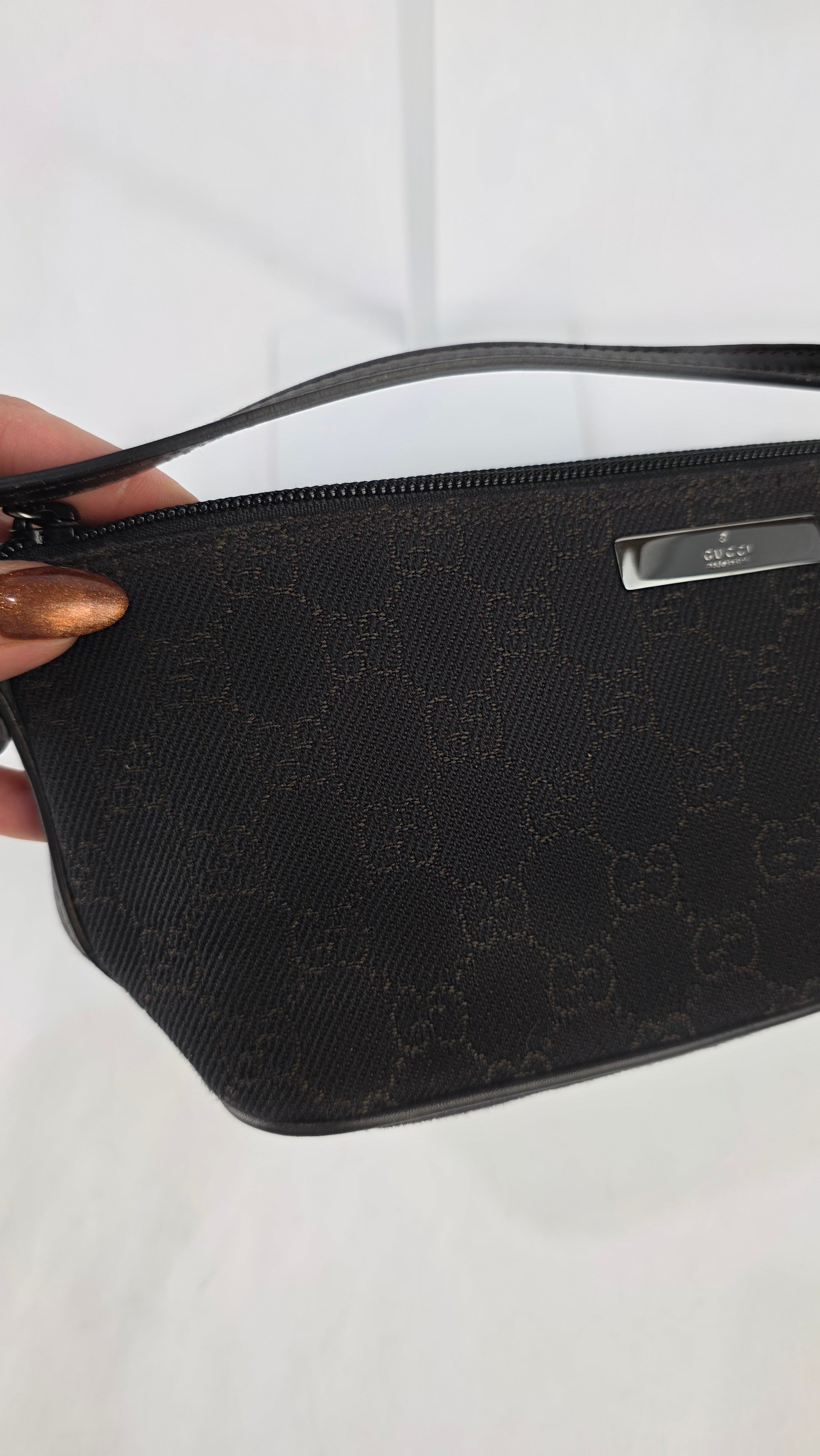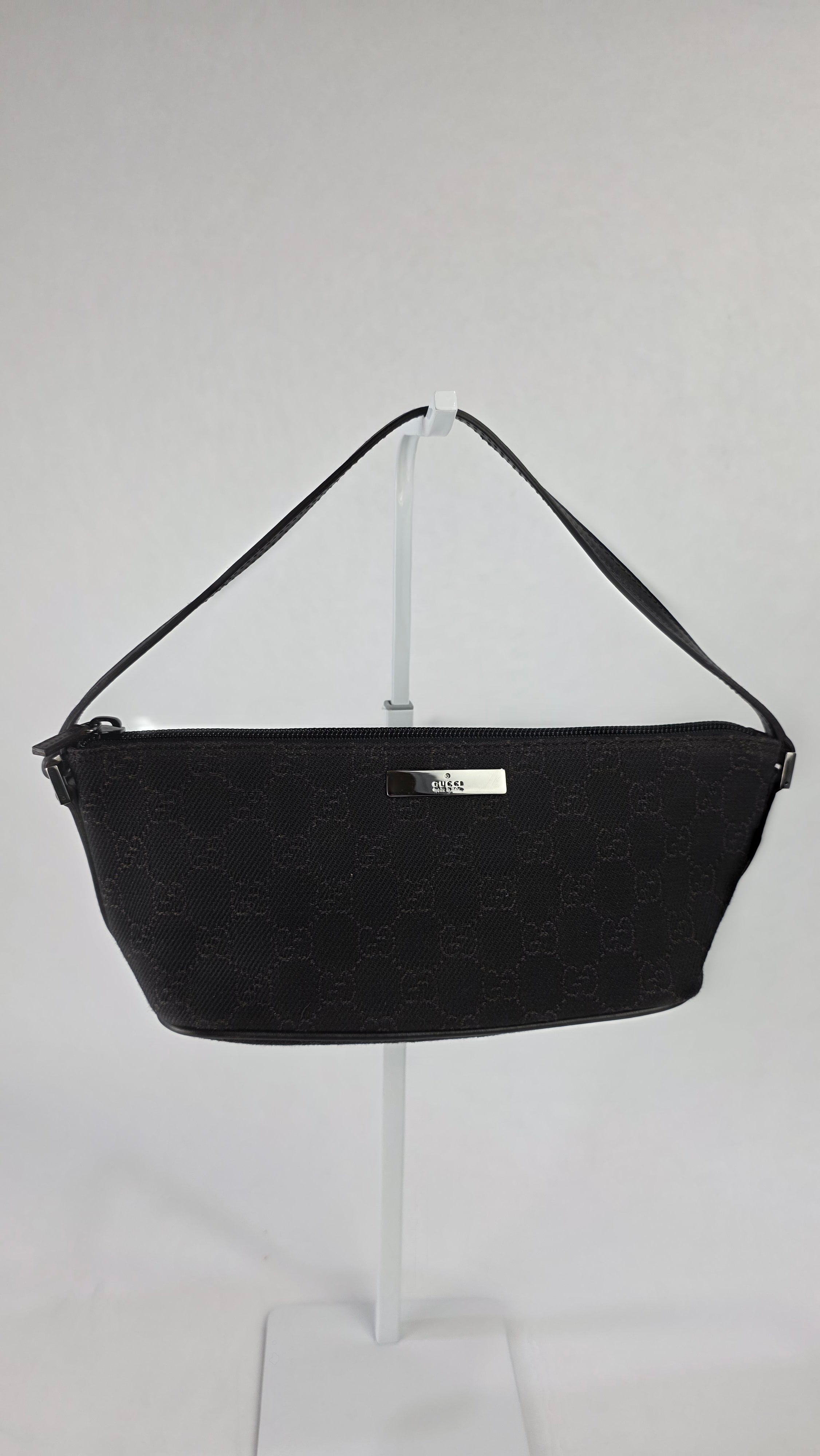 Gucci GG Brown/Black Canvas Boat Shoulder Bag