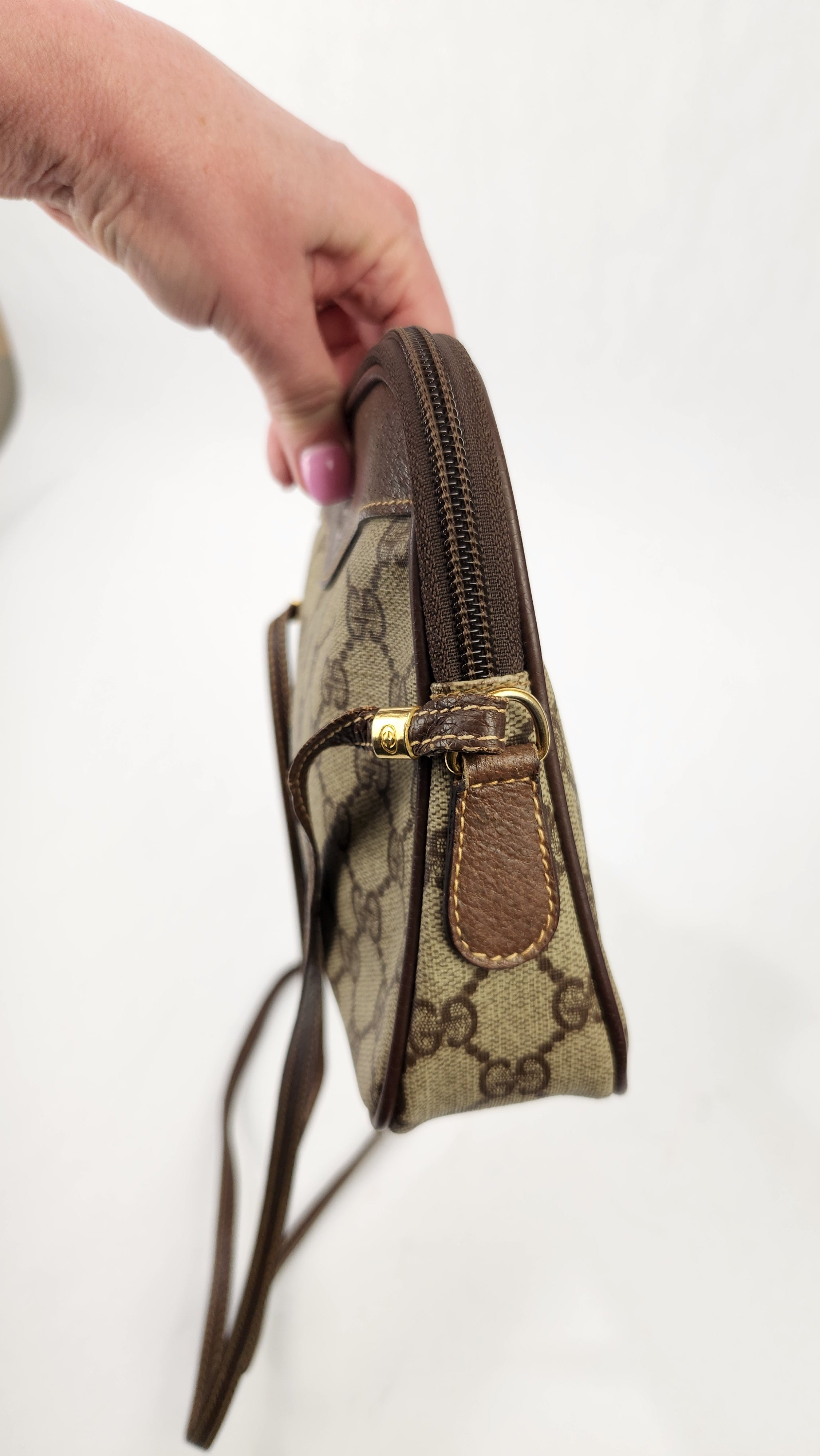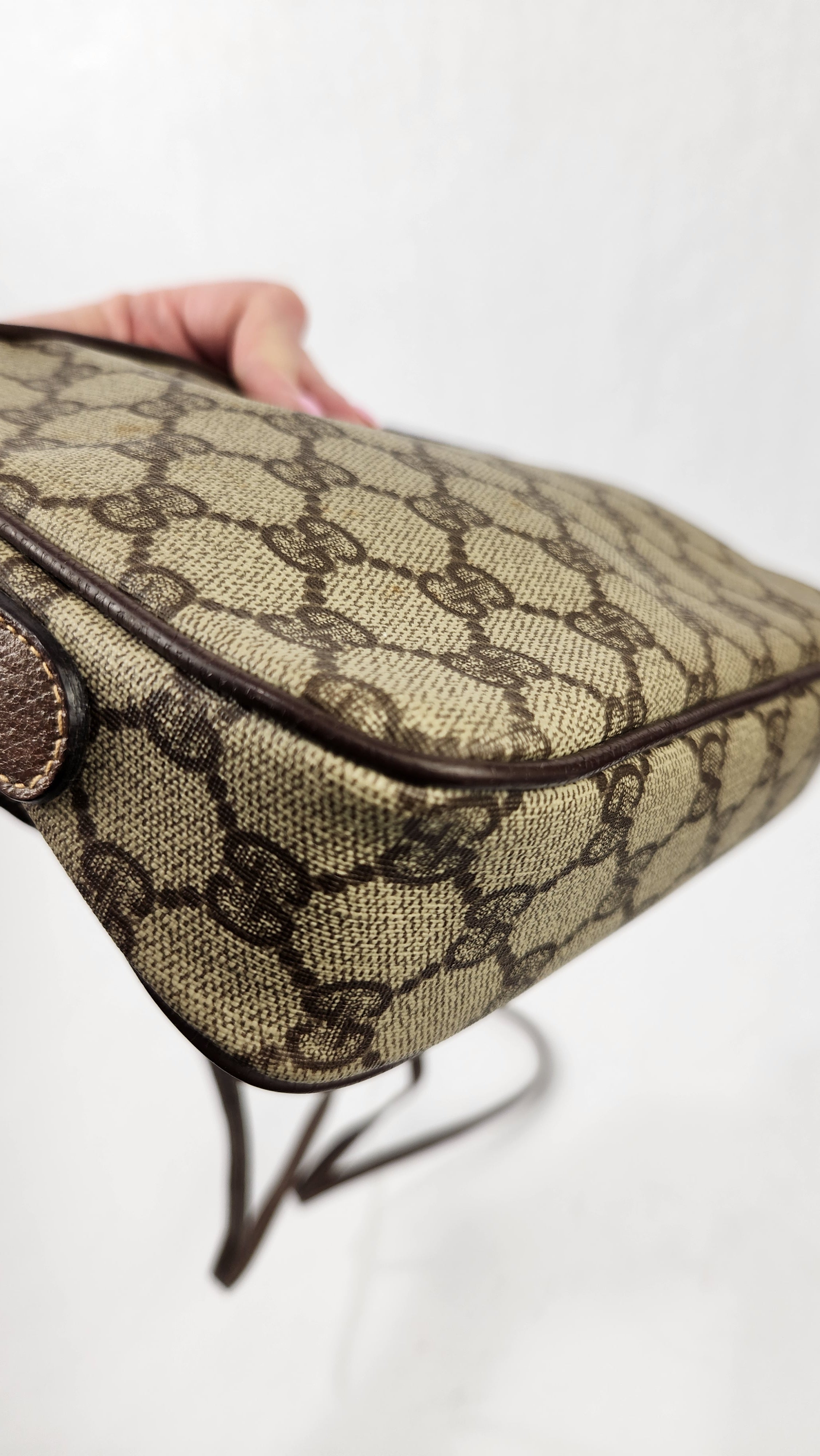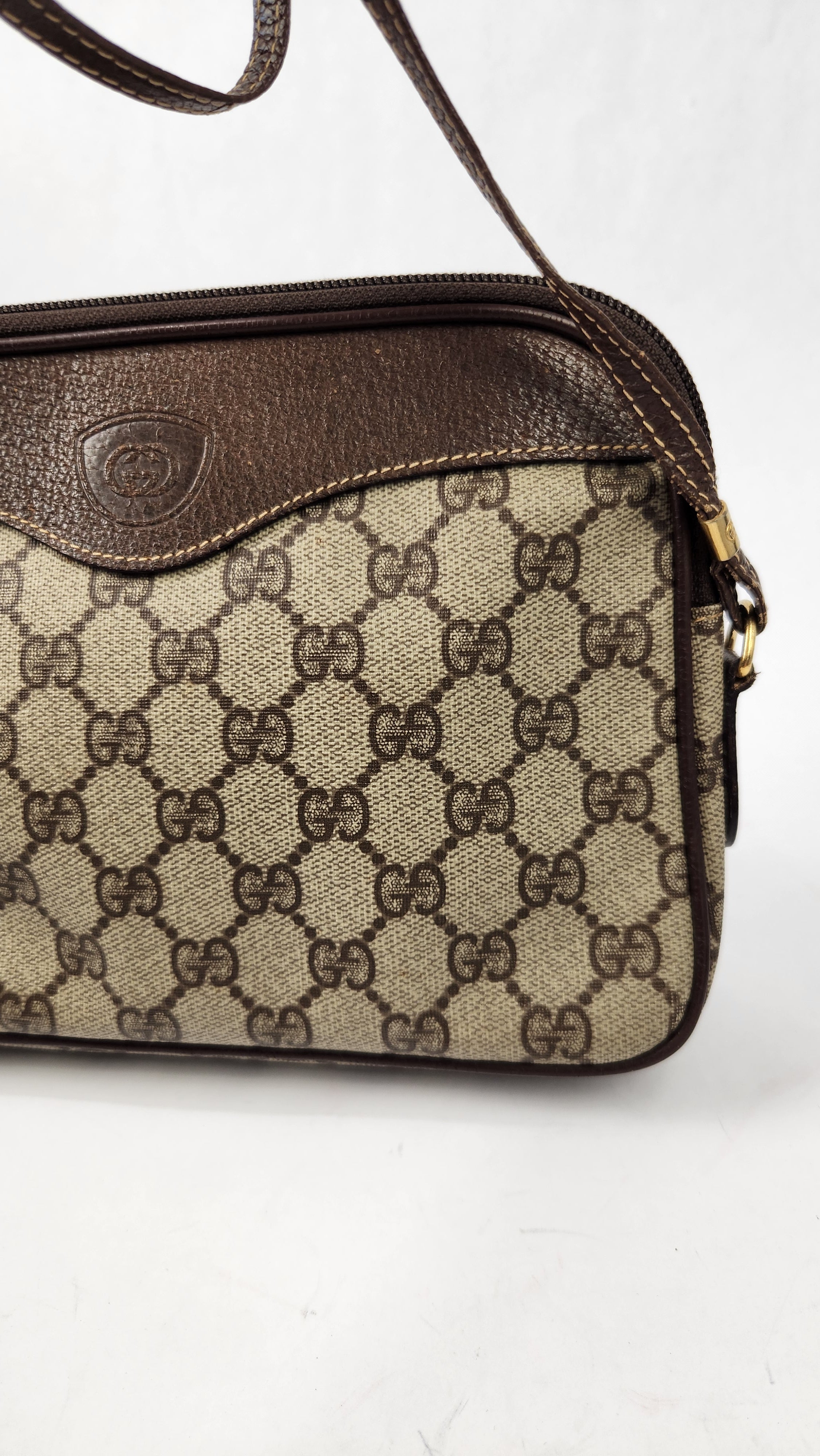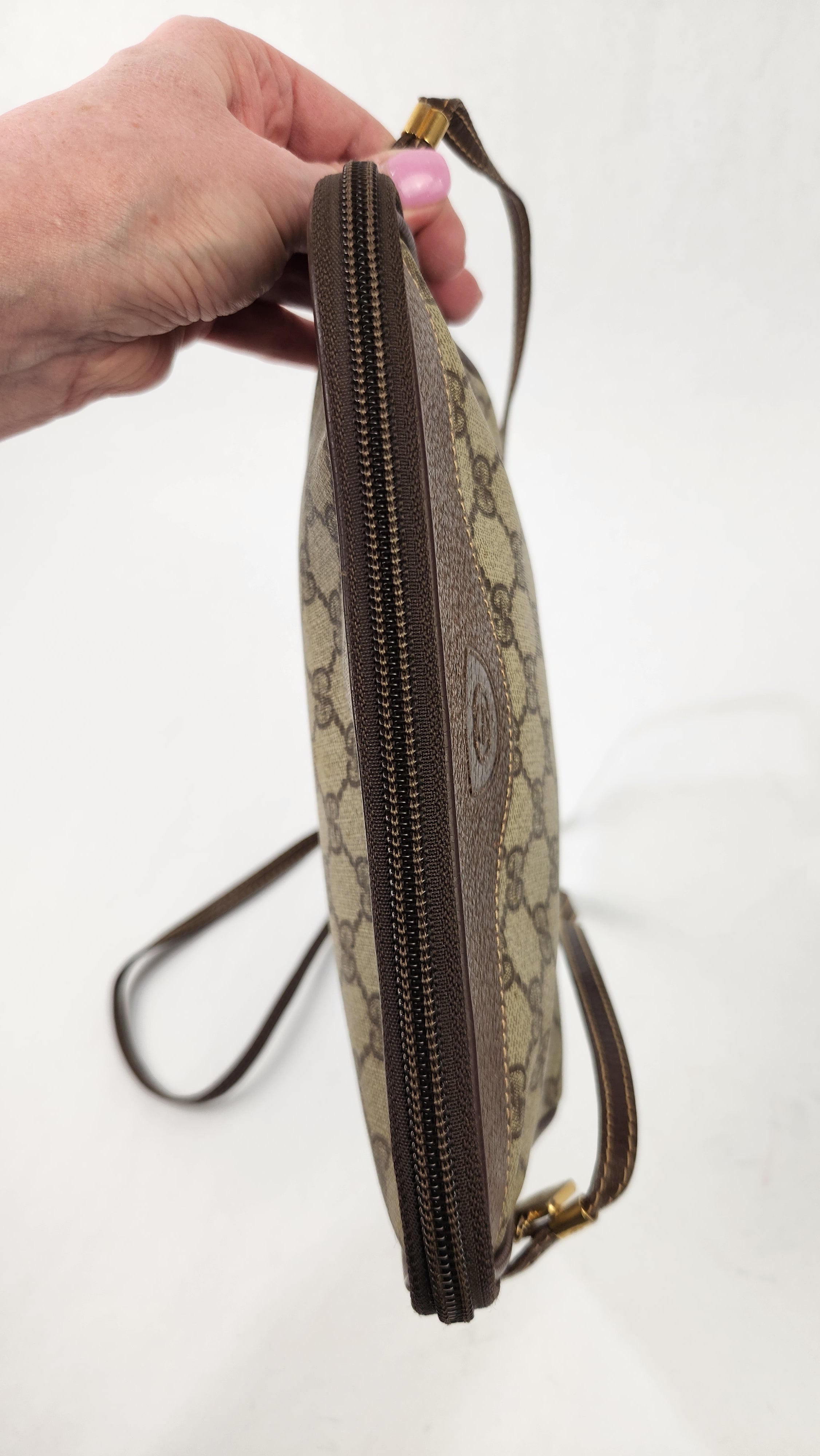 Condition details: In great condition; outside pvc coated canvas is in great condition with some signs of wear. Leather strap is in great condition with some signs of wear. Leather parts, edges and corners are in great condition with some signs of wear. Gold tone hardware is in great condition with some signs of wear and slight silvering on zipper pull, zipper works well. Inside is clean with some signs of wear, and rubbing to top layer of lining due to the rubbing of the zip when it closes and opens. no foul smell.