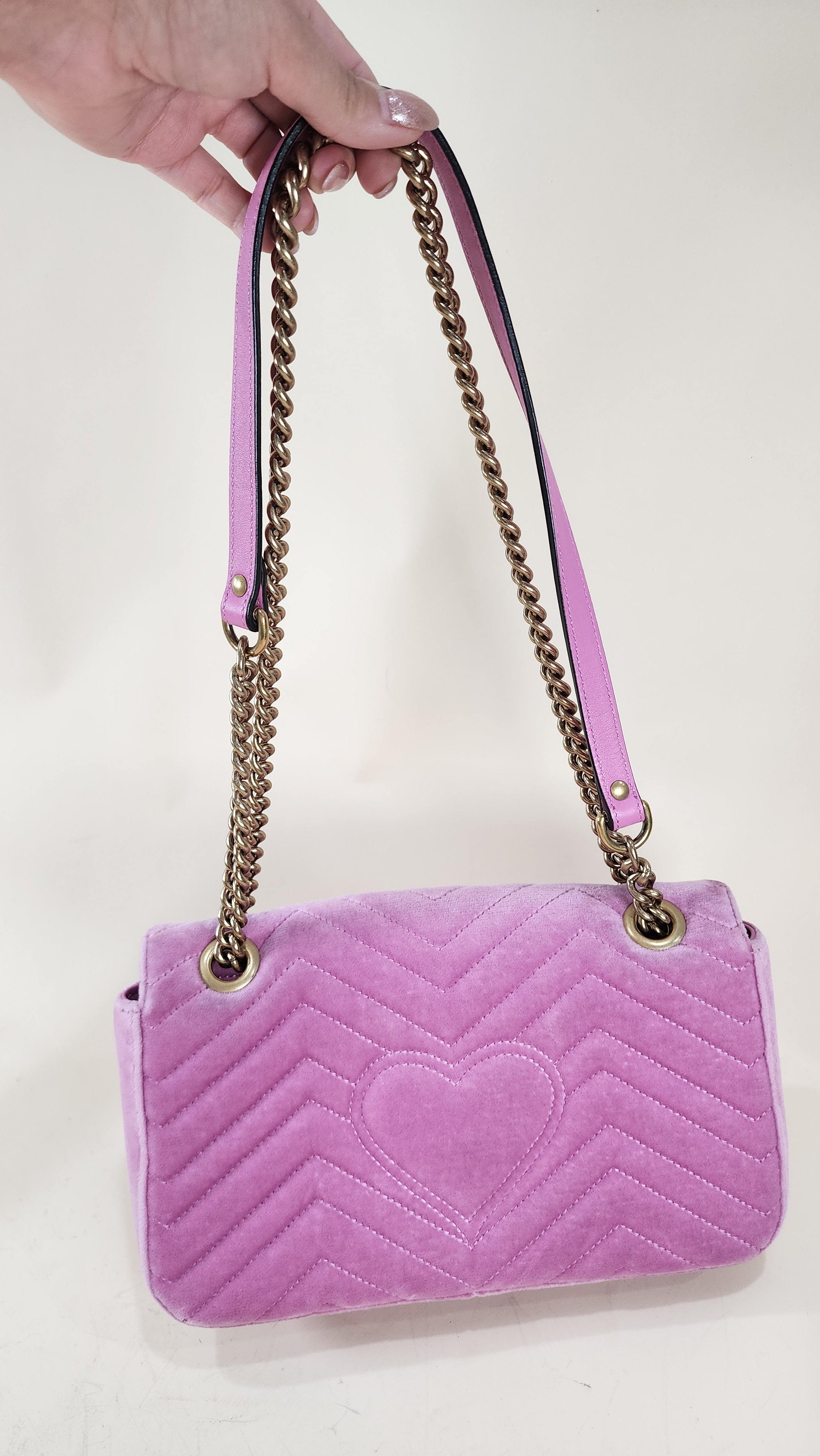 Gucci Marmont Pink Velor w/ Gold Tone Chain Shoulder Bag