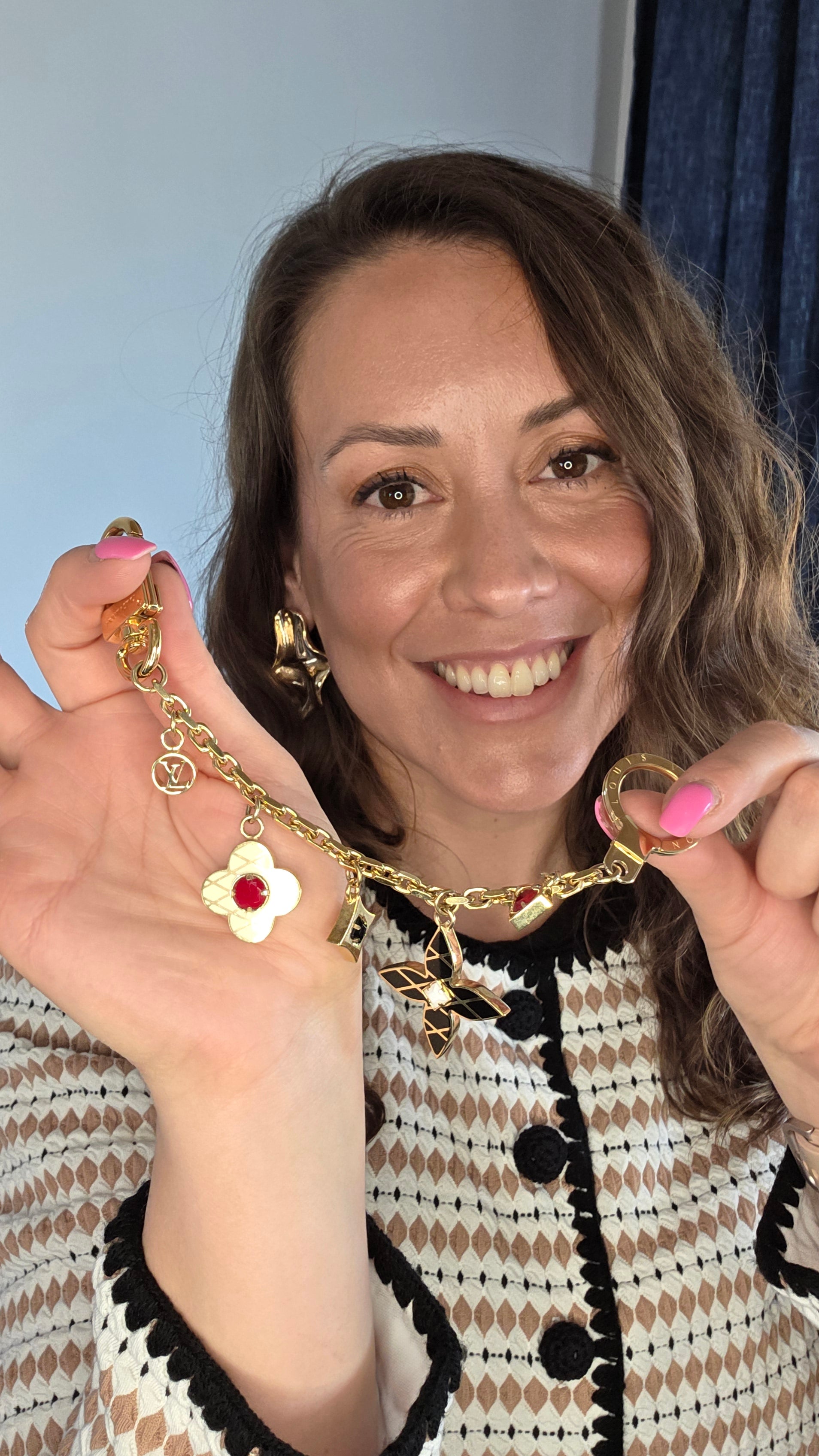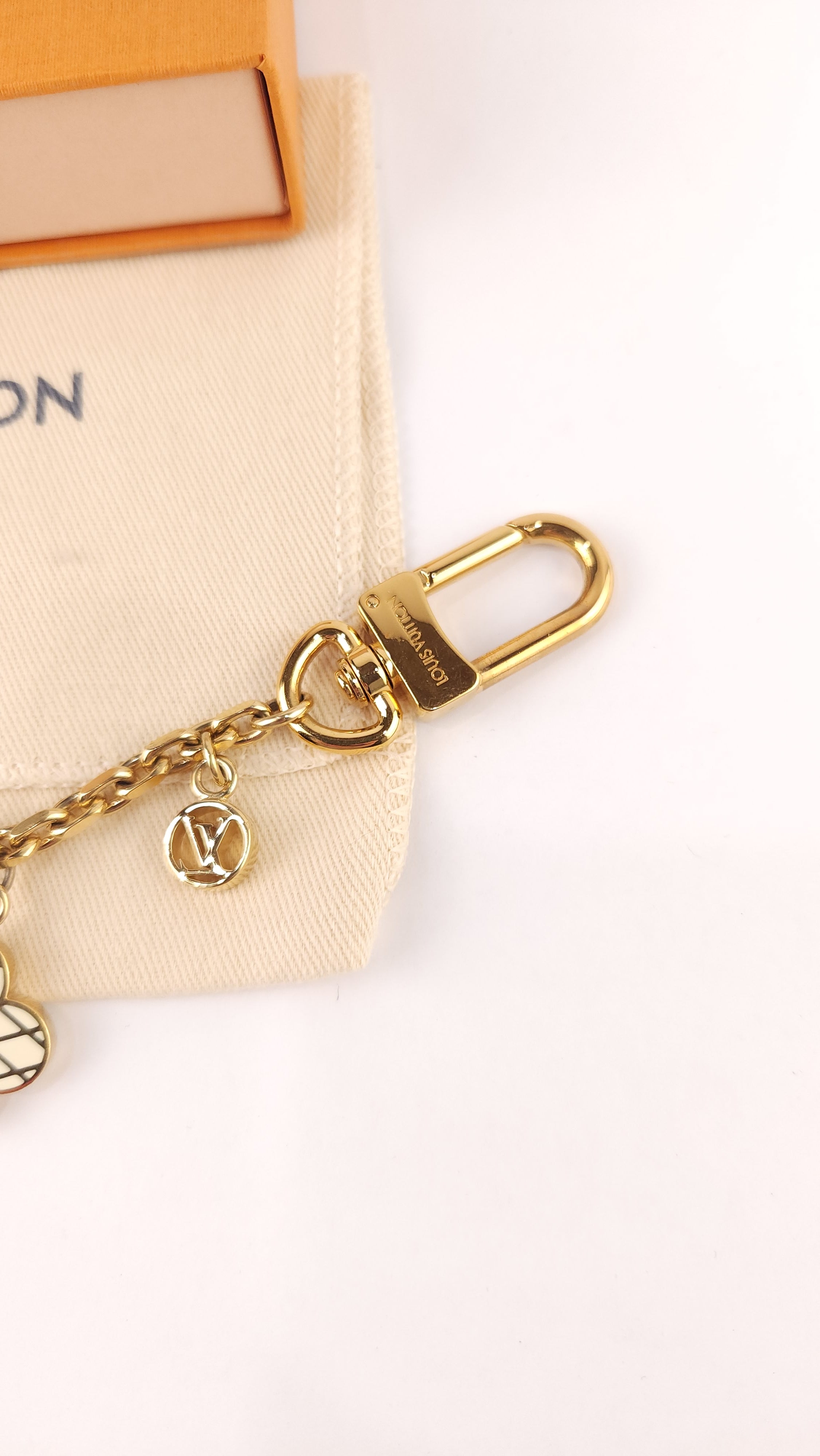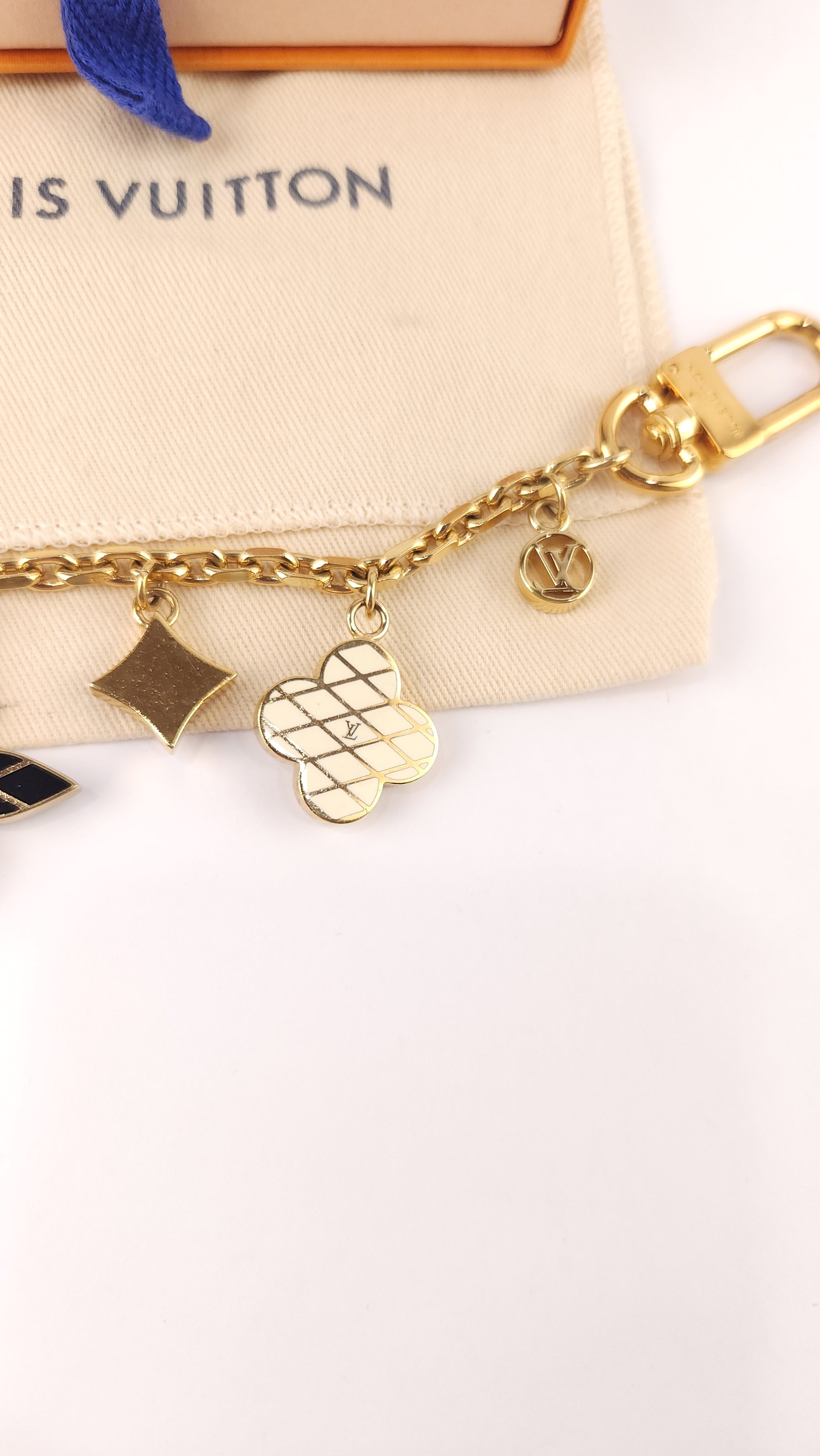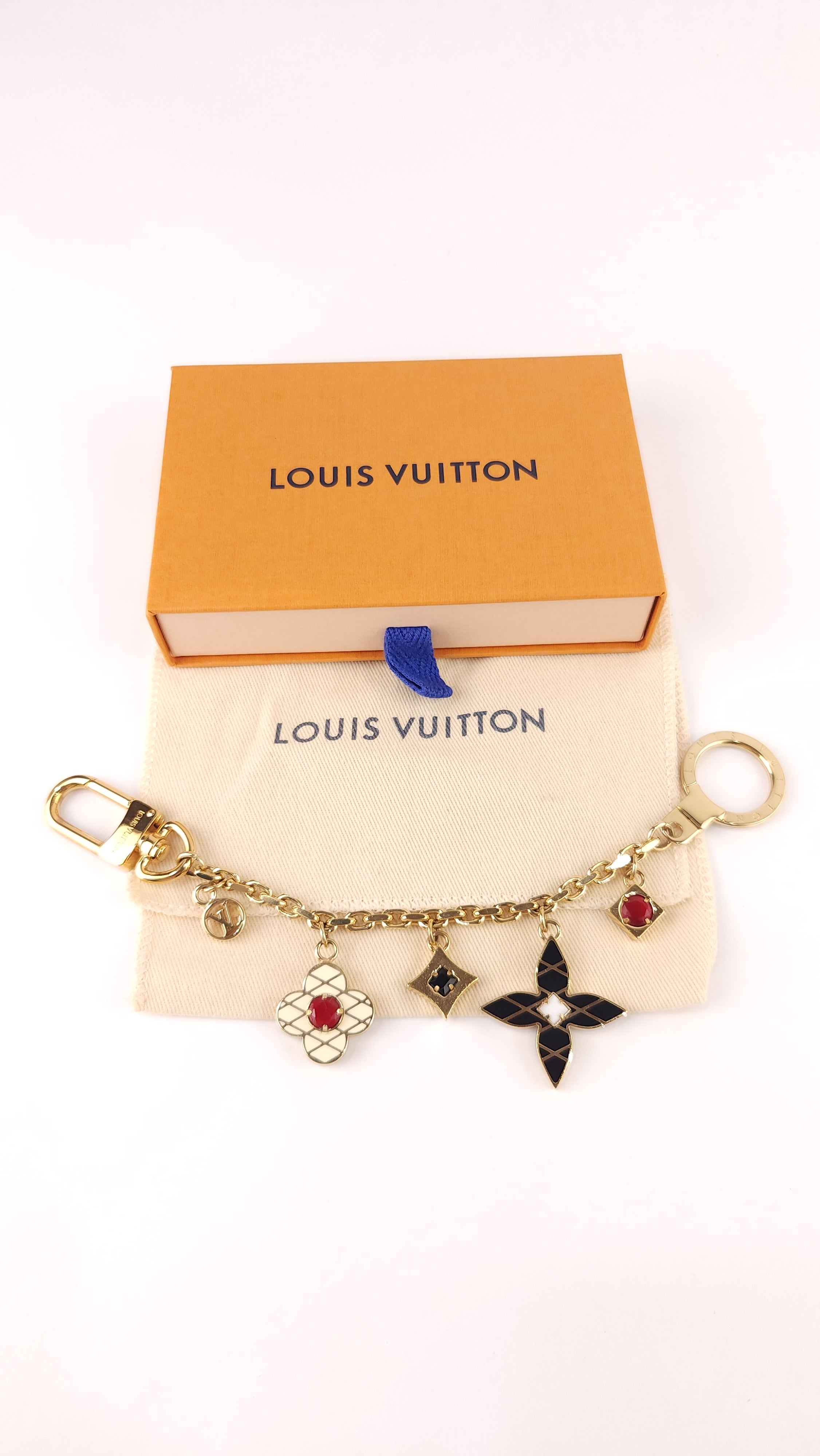 Condition details: In great condition; gold colored chain with cream, red & black charms are in great condition with some signs of wear and rubbing. Comes with LV dust bag and box.
