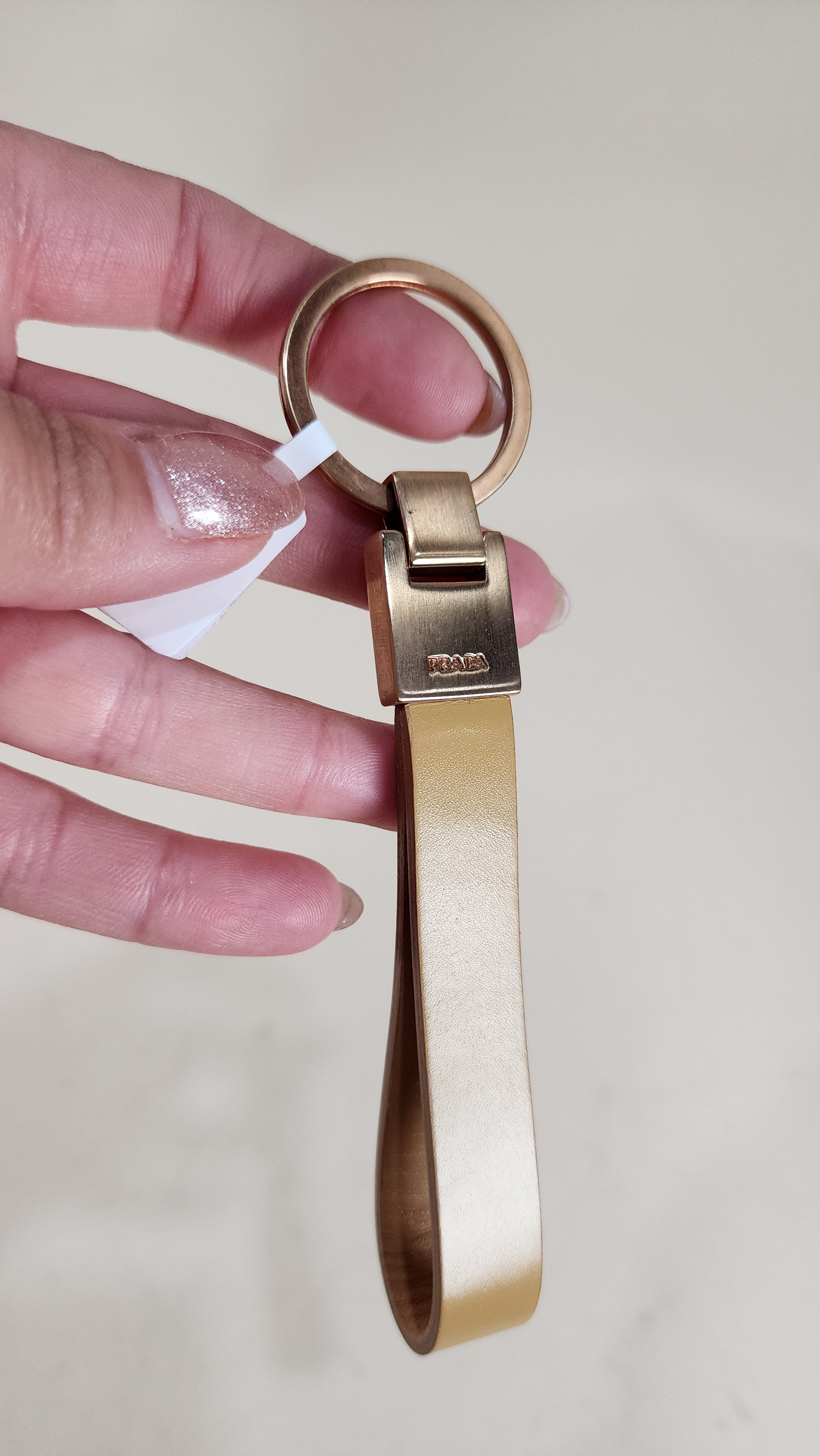Prada Beige Leather Key Ring w/ Brass colored hardware