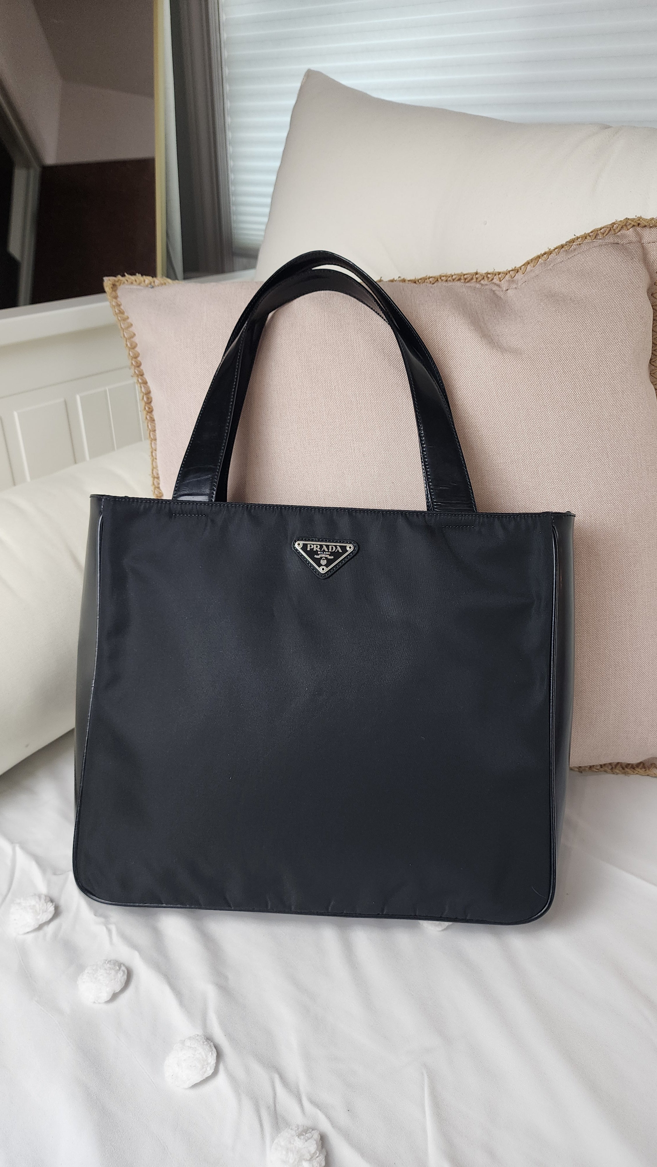 Prada Black Nylon Tote Bag w/ Leather Handles