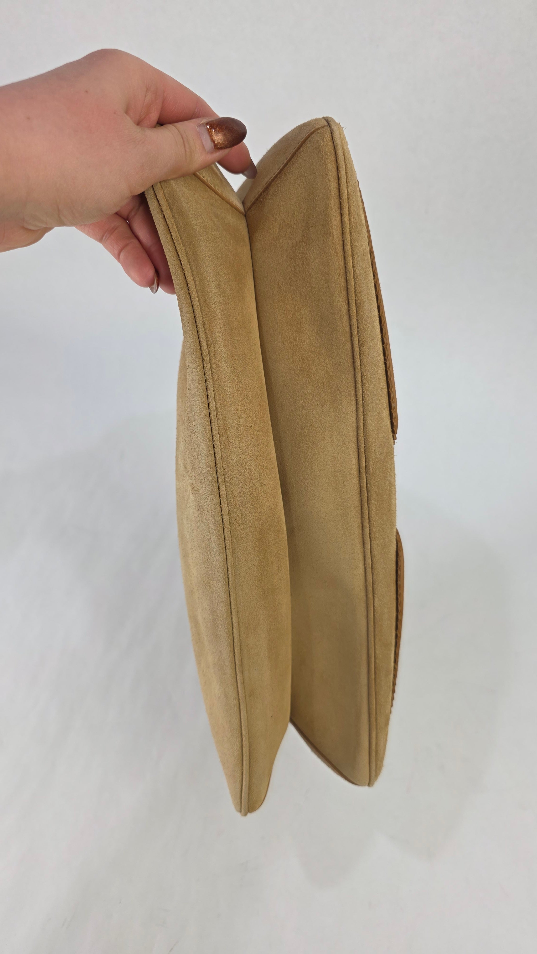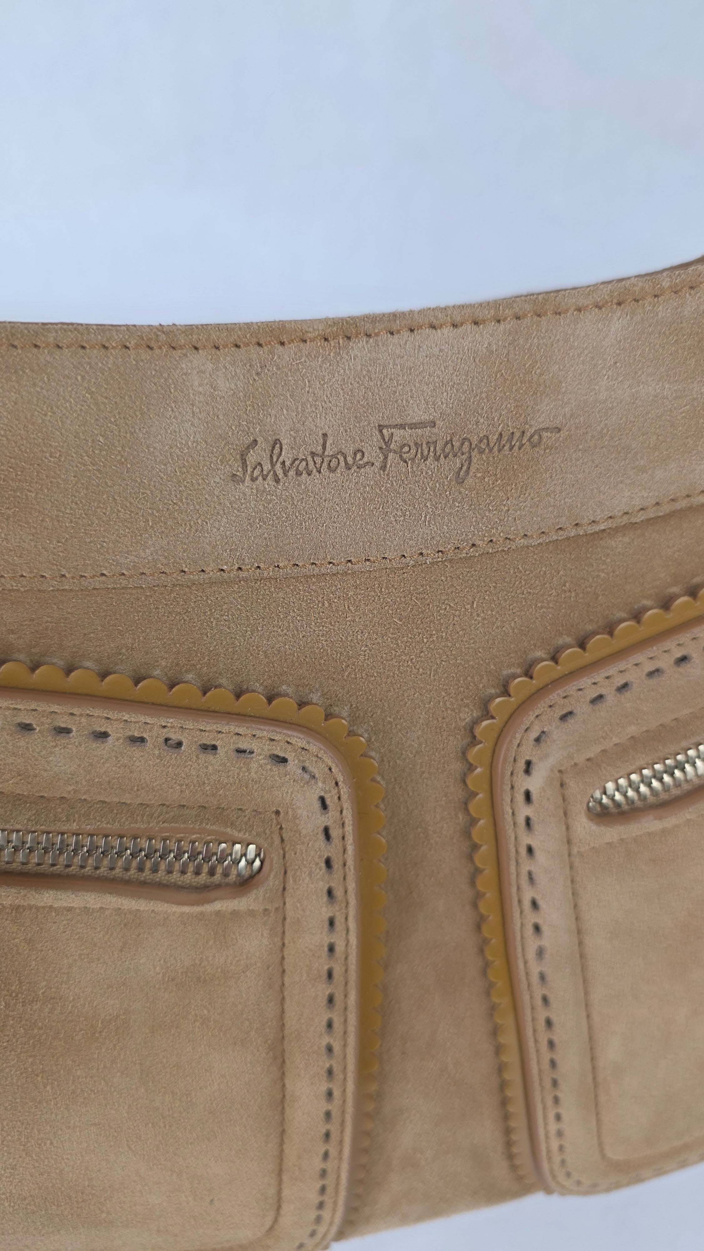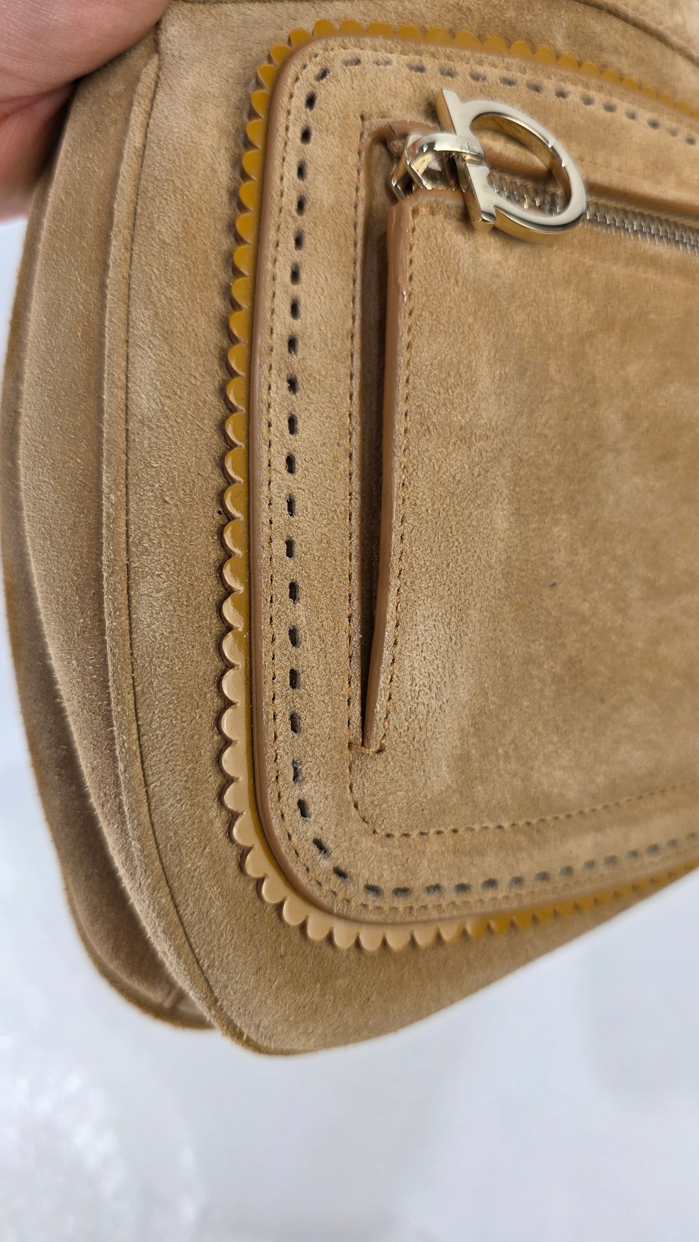 Salvatore Ferragamo Gancini Tan Suede Shoulder Bag